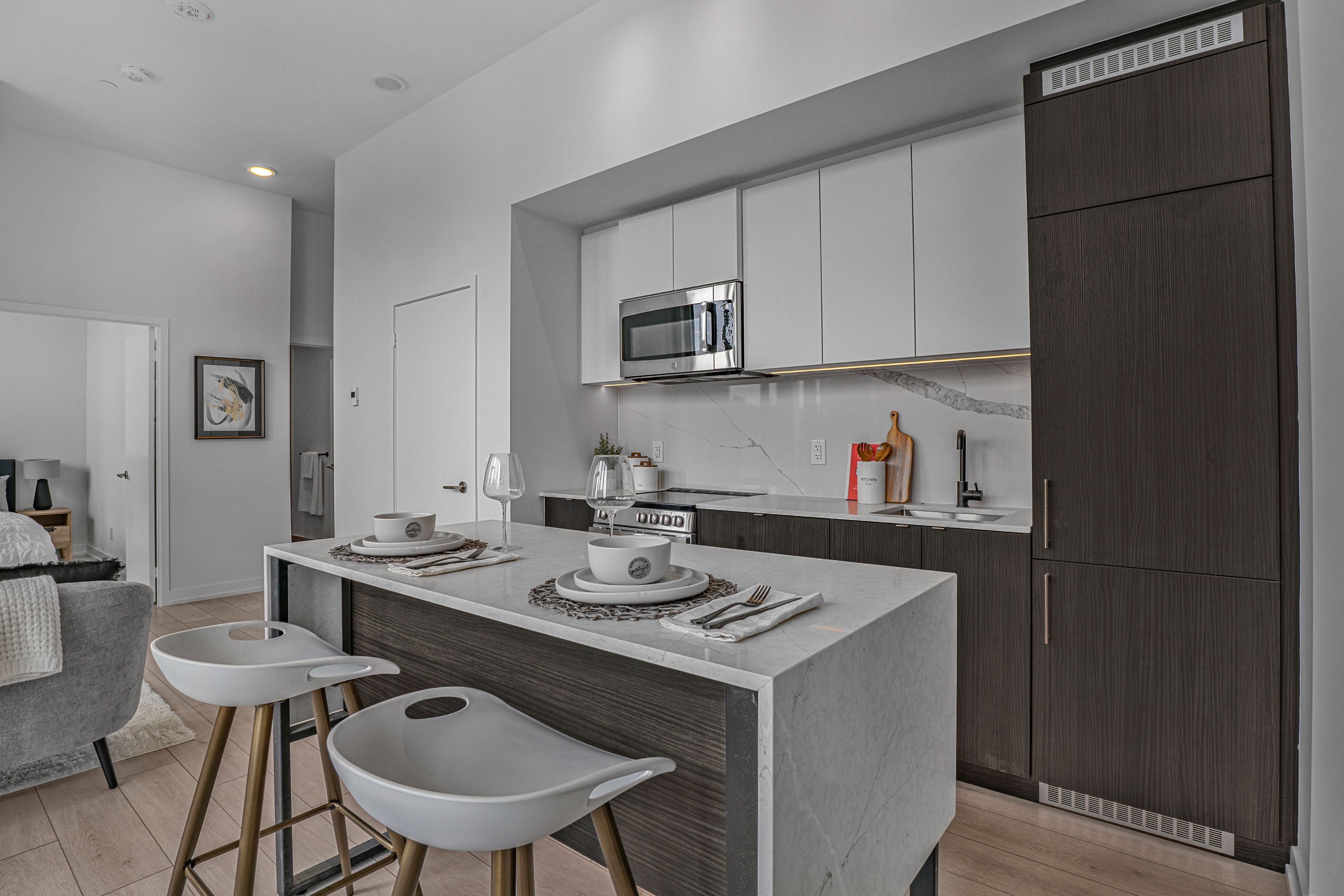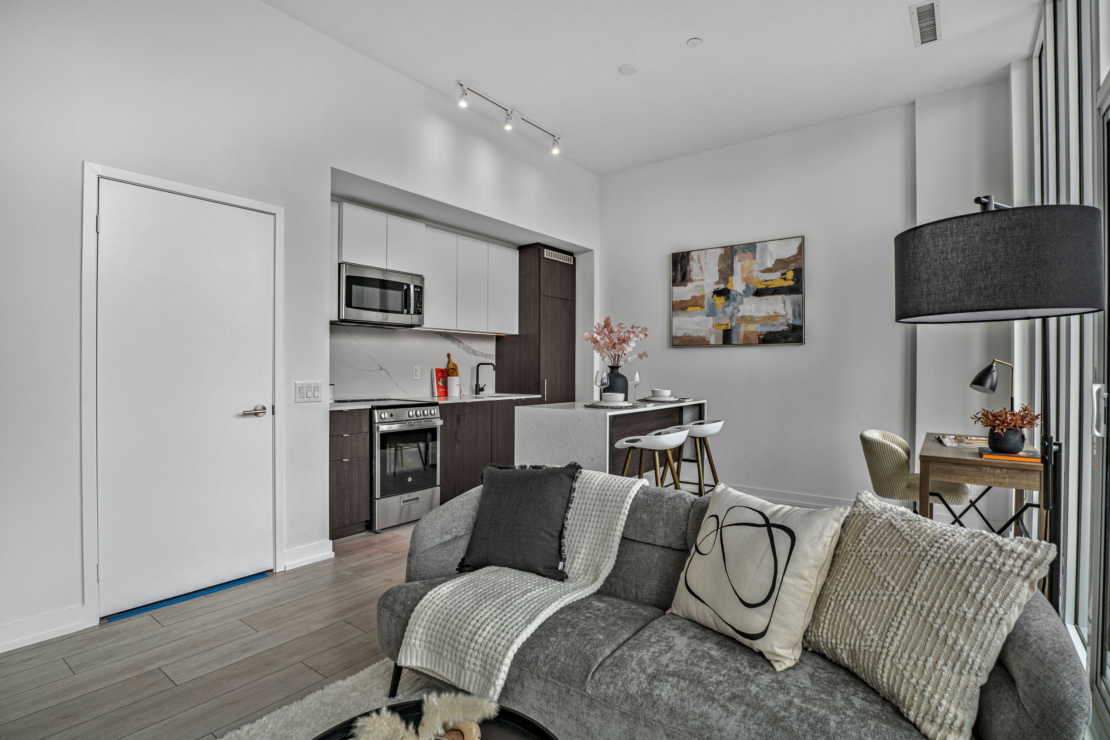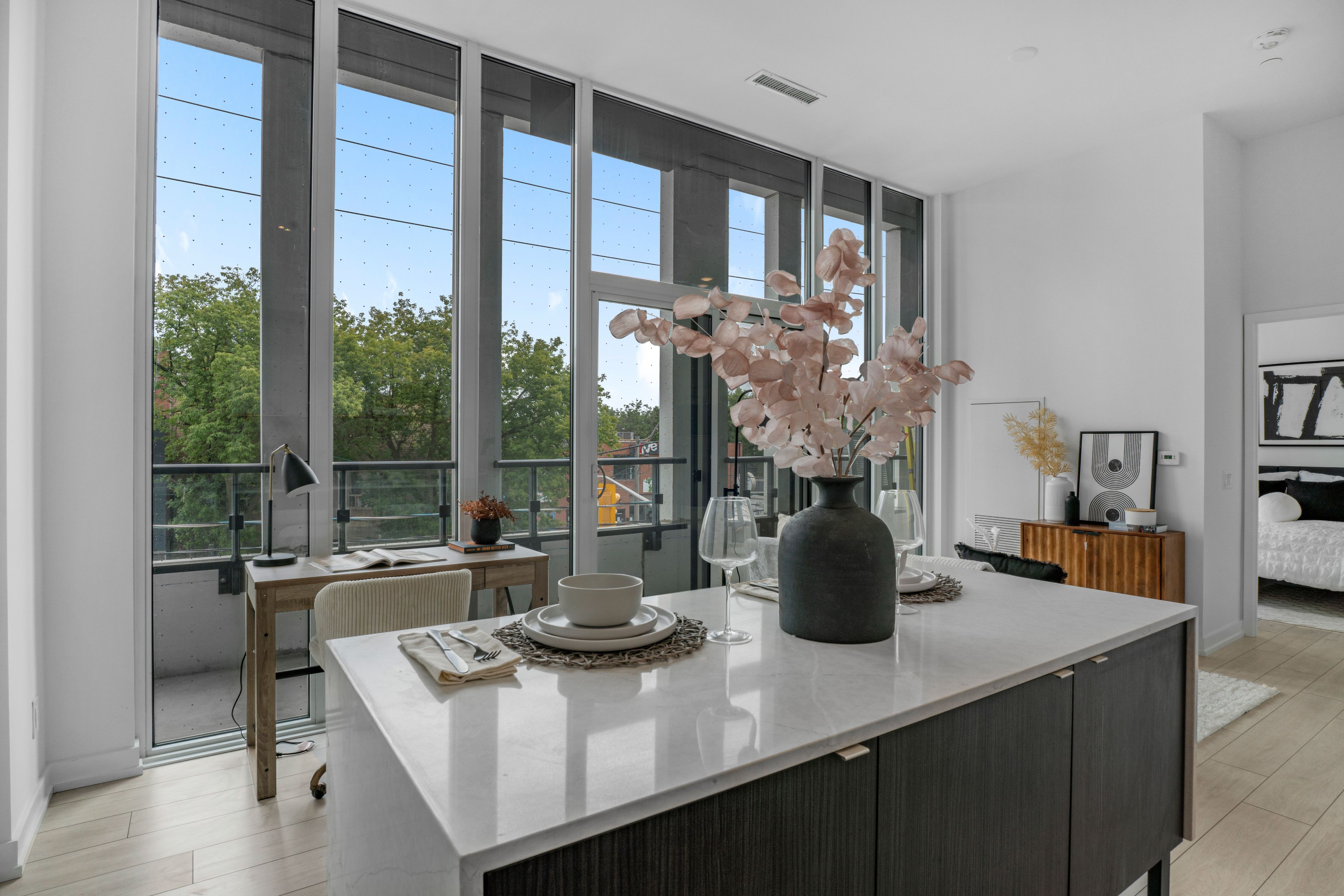 • Bright south-facing 1-bedroom suite with floor-to-ceiling windows.