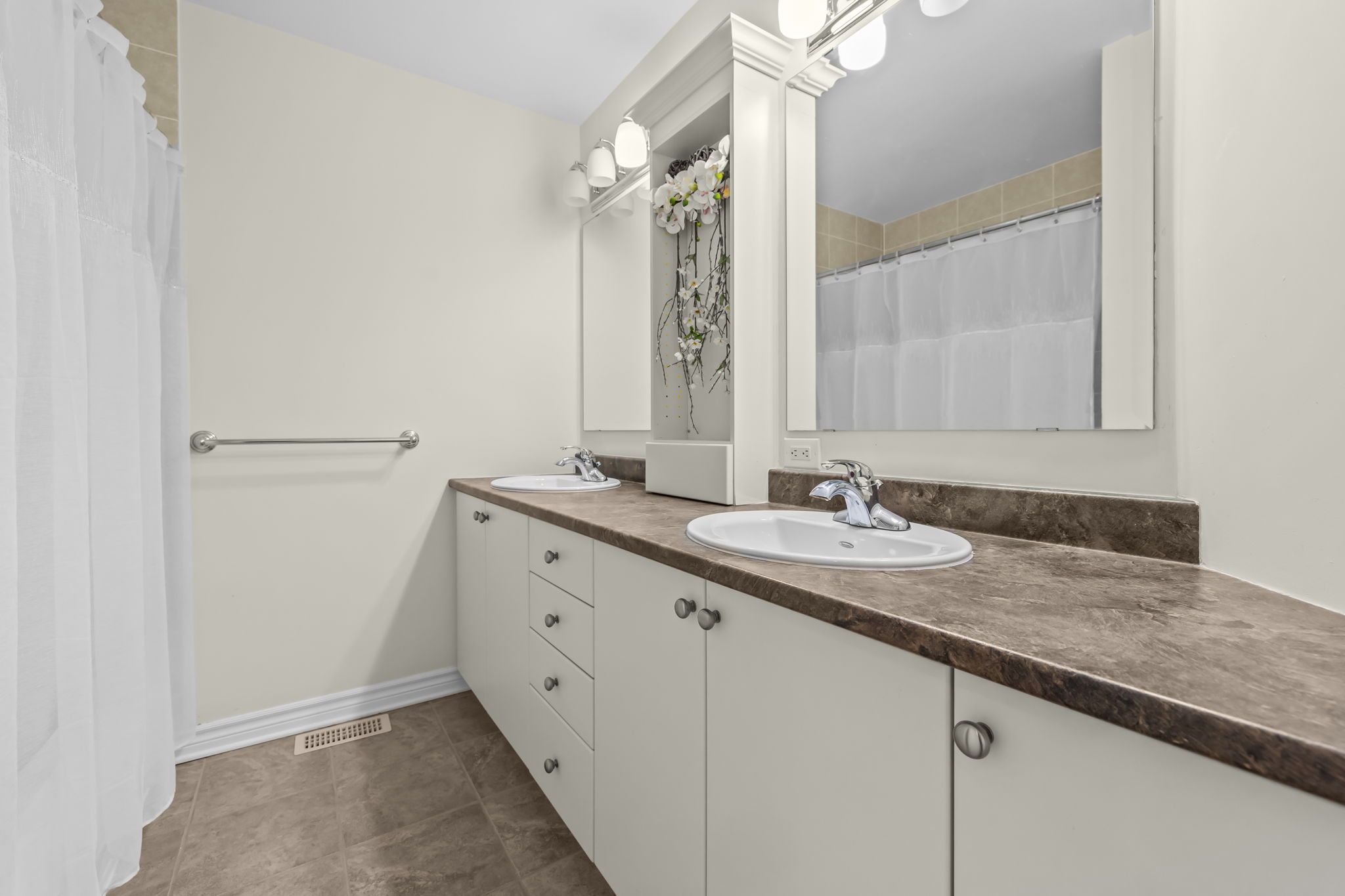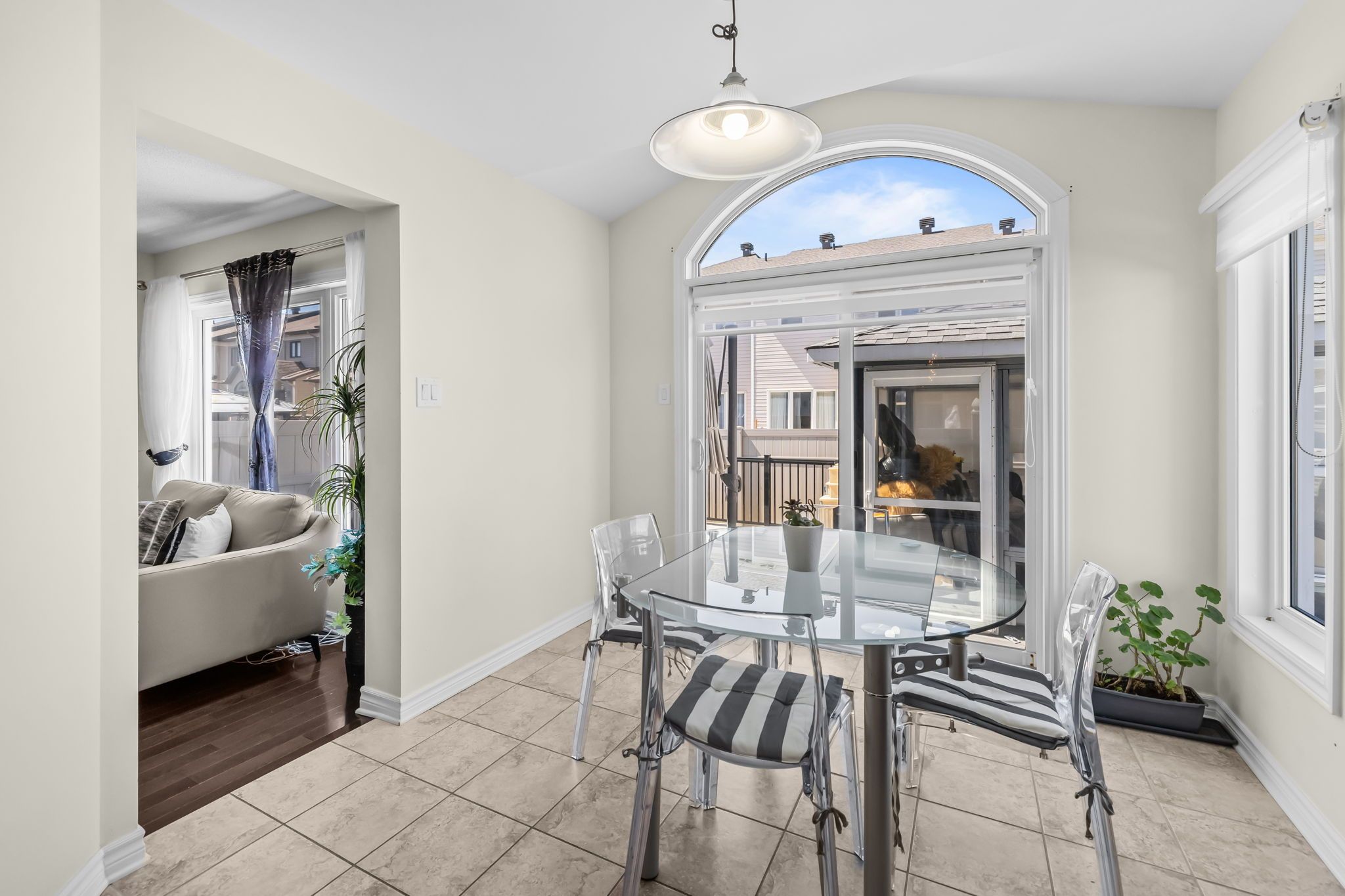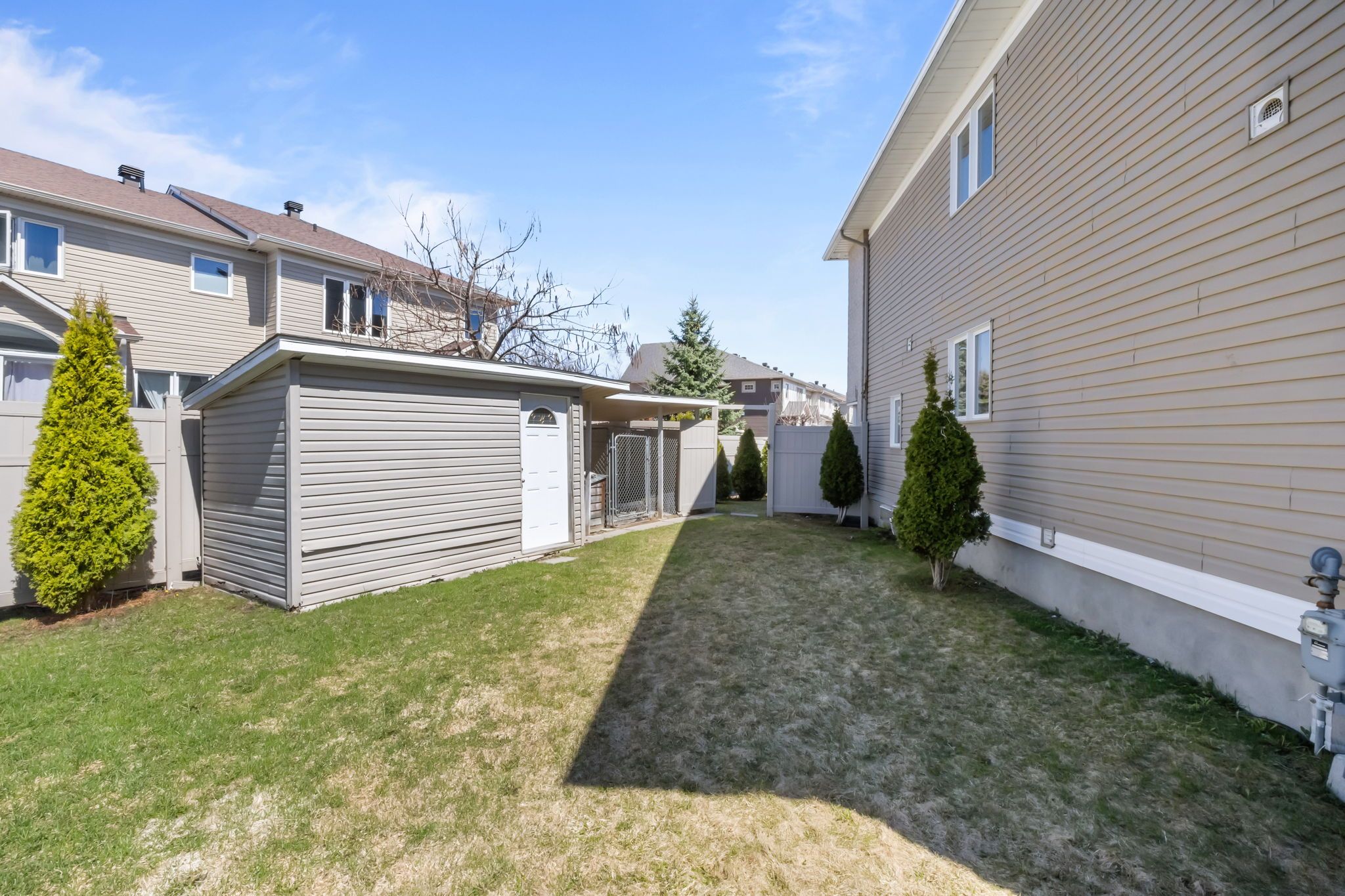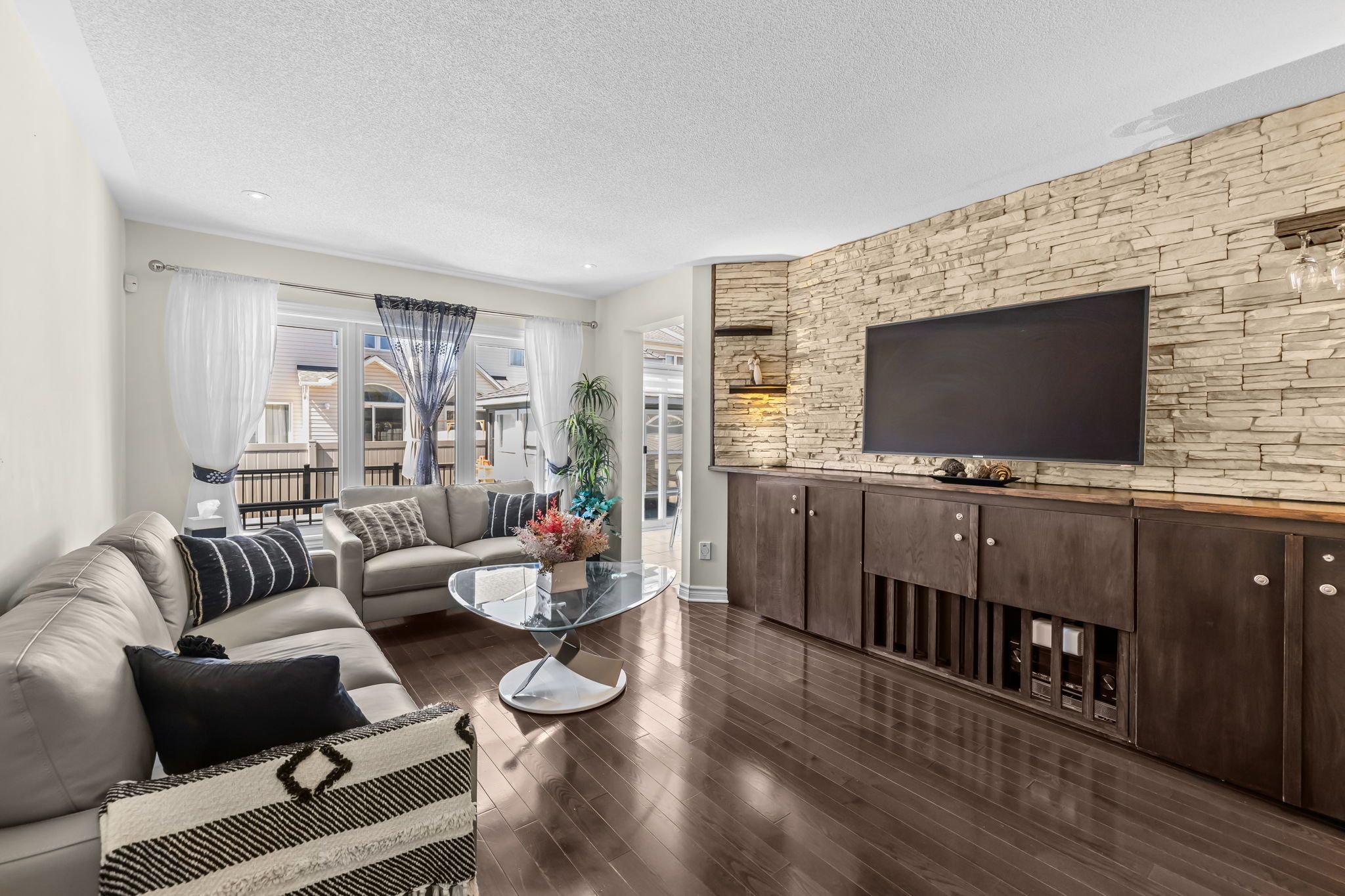 Stunning, bright, and meticulously maintained rarely offered end unit on a premium oversized lot. This minto modified mulberry model offers 3 bedrooms + loft that can be converted into a 4th bedroom in the sought-after family-friendly trailsedge community in orleans. Owned by the original owners, this home has been exceptionally well cared for and shows like new. The main floor features a welcoming foyer with closet and powder room, leading into an open-concept living and dining area with gleaming hardwood floors and a custom stone accent wall with built-in media unit. The spacious kitchen includes stainless steel appliances, stylish backsplash, and a separate eat-in area with patio doors opening to a private, peaceful backyard-perfect for entertaining. Upstairs, the generous primary bedroom offers a walk-in closet and a 4-piece ensuite with soaker tub and separate shower. Two additional well-sized bedrooms, a full 3-piece bathroom, and a versatile loft to complete the second level. The finished basement features a bright and spacious family room with a cozy corner gas fireplace, along with a laundry area, storage room, and rough-in for a future 3-piece bathroom. The backyard is a true outdoor retreat, featuring a spacious pvc deck, custom built-in hot tub, and a solid, heavy-duty custom gazebo with built in electrical work-perfect for relaxing or entertaining. The yard also includes a storage shed and a dedicated dog house, adding both functionality and convenience. There is also ample space to accommodate a future in-ground pool, offering even more potential to enhance this already exceptional outdoor living area. Some photos have been virtually staged to show full potential.