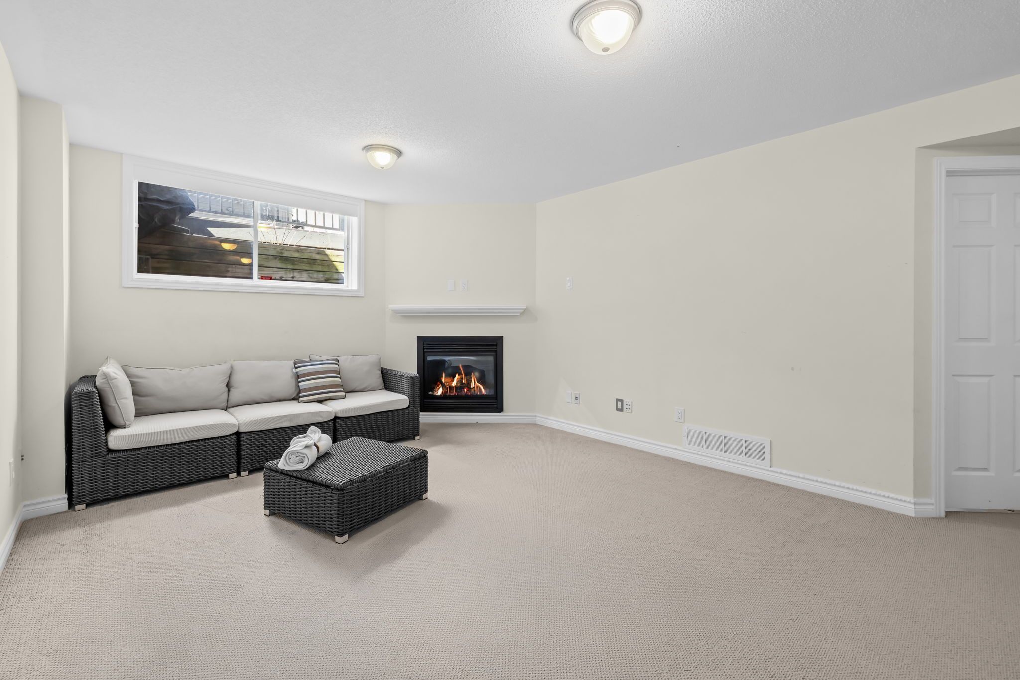 • Finished basement featuring a family room with a cozy gas fireplace.