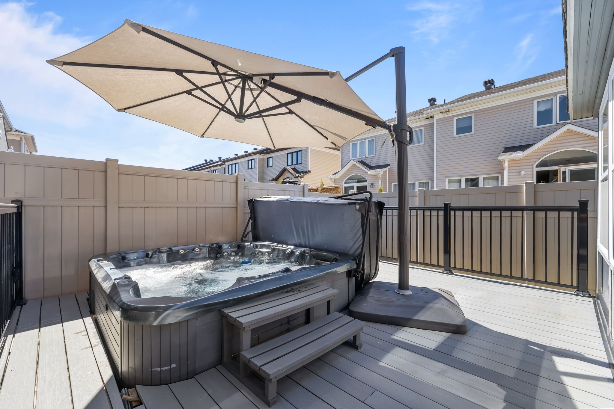 • Private backyard retreat with a deck, hot tub, and gazebo with electrical work.