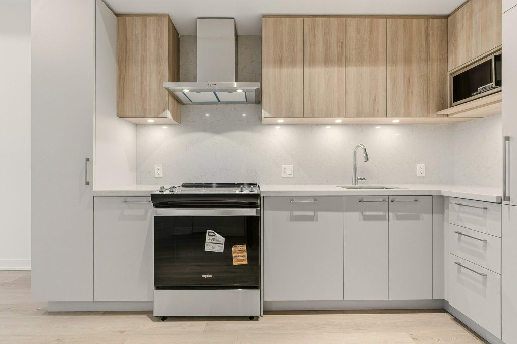 • Sleek kitchen with quartz countertops and integrated appliances.