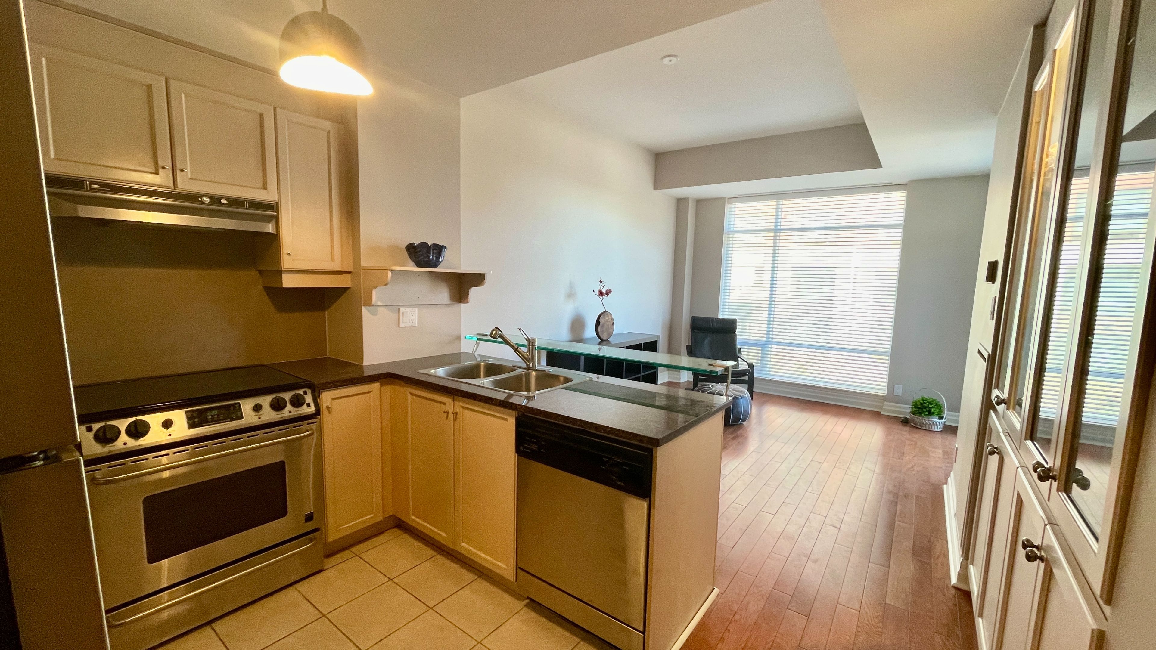 • Spacious one-bedroom condo with 9ft ceilings and floor-to-ceiling windows.