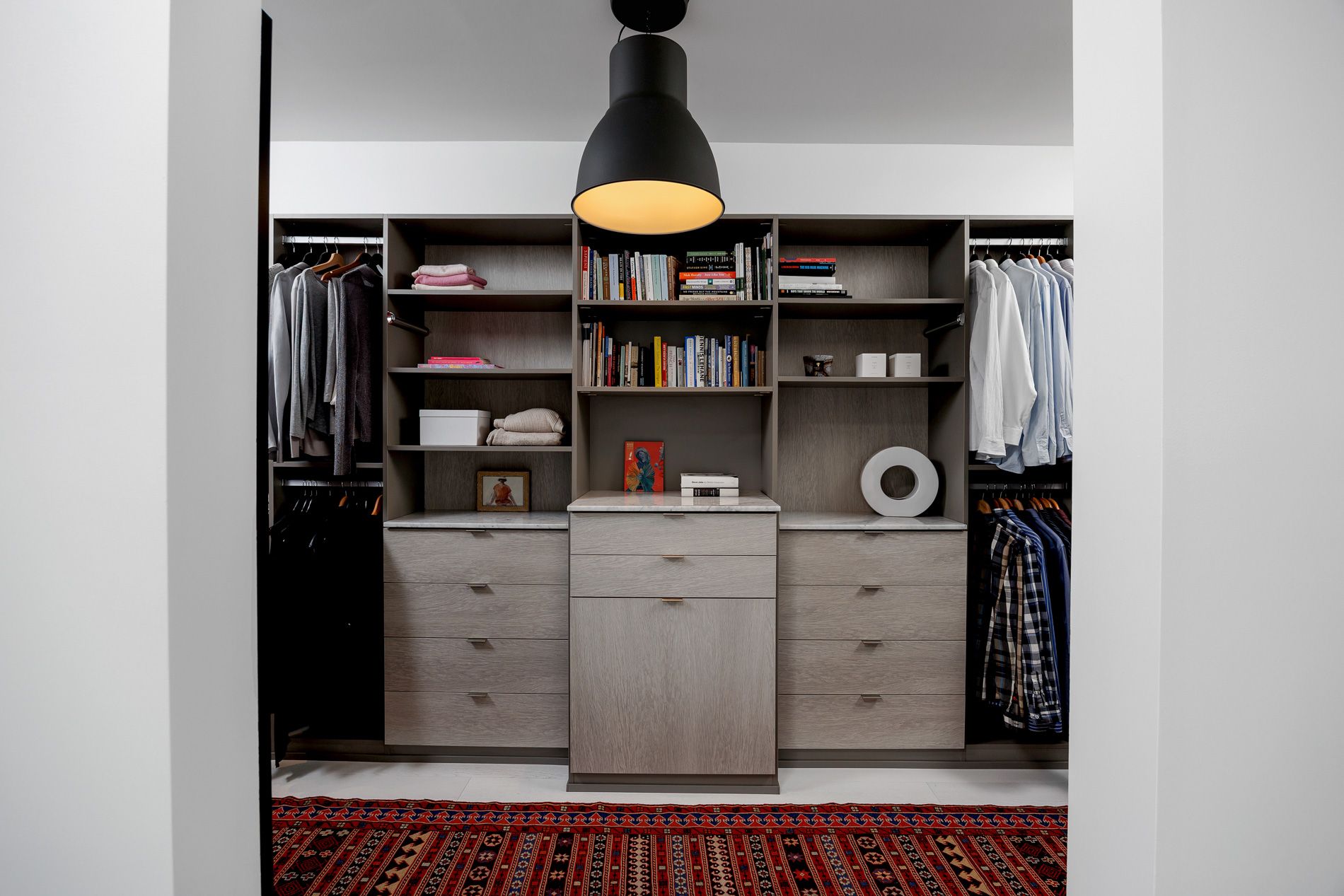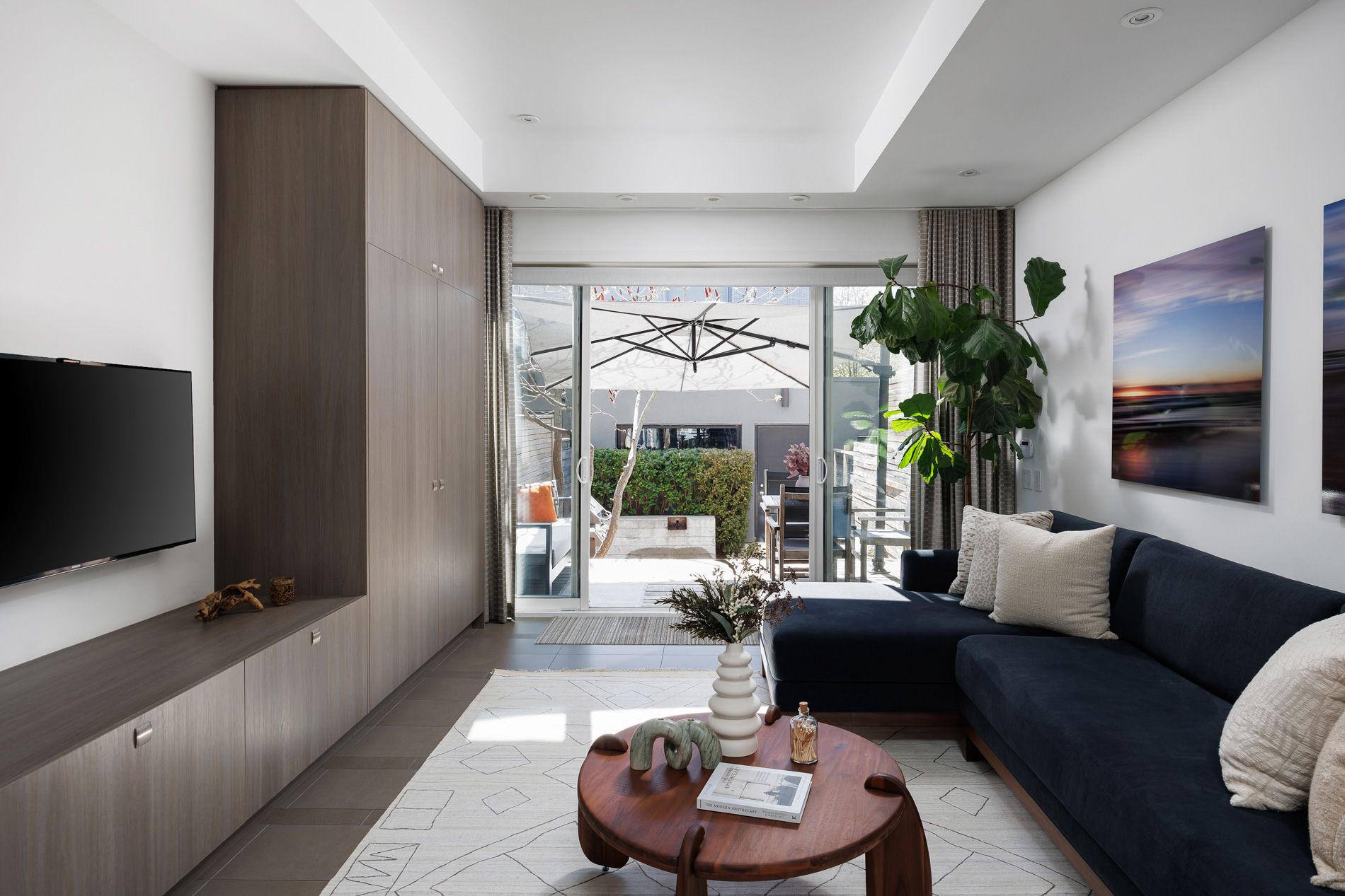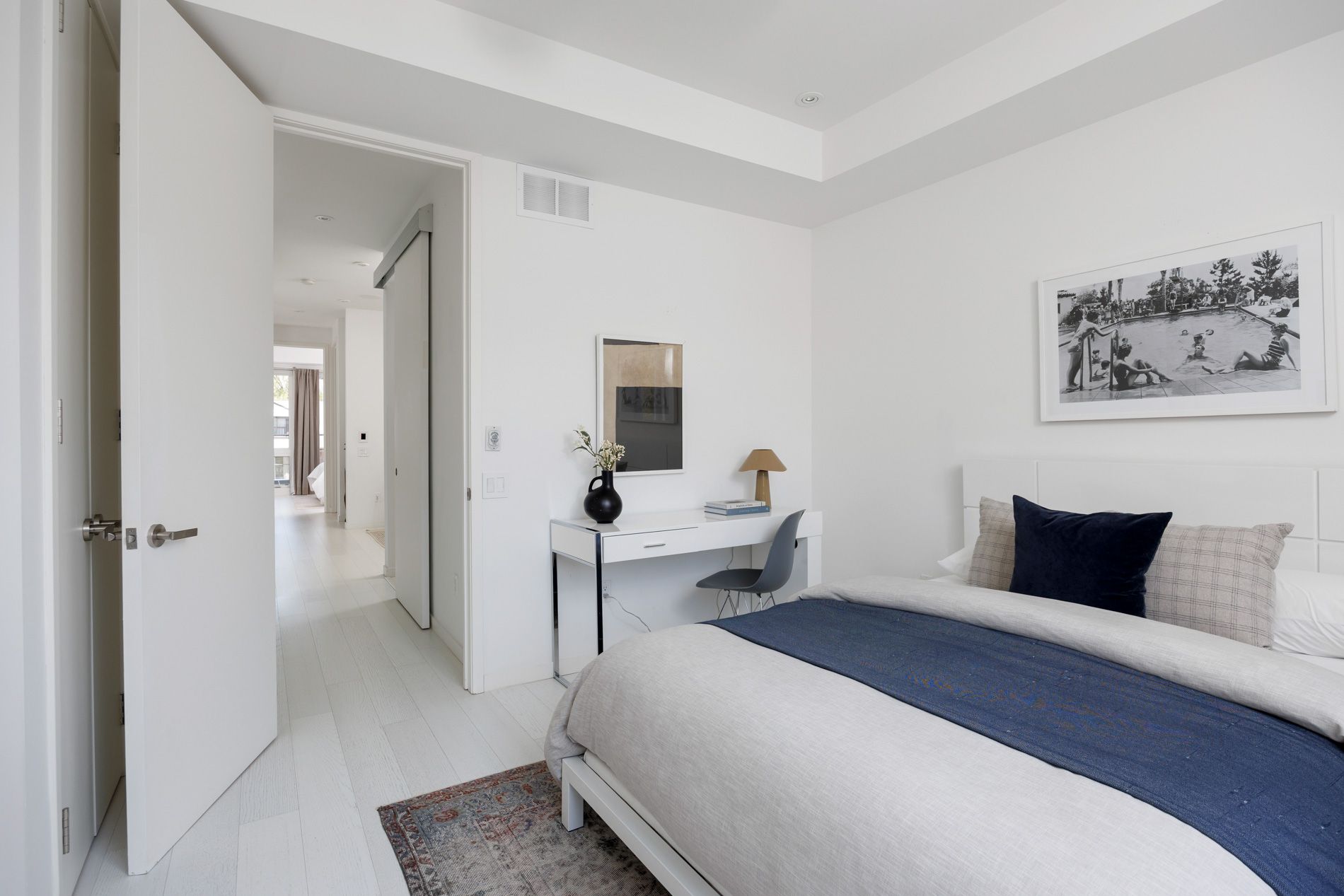 • Refined chef's kitchen with quartz surfaces and integrated appliances.