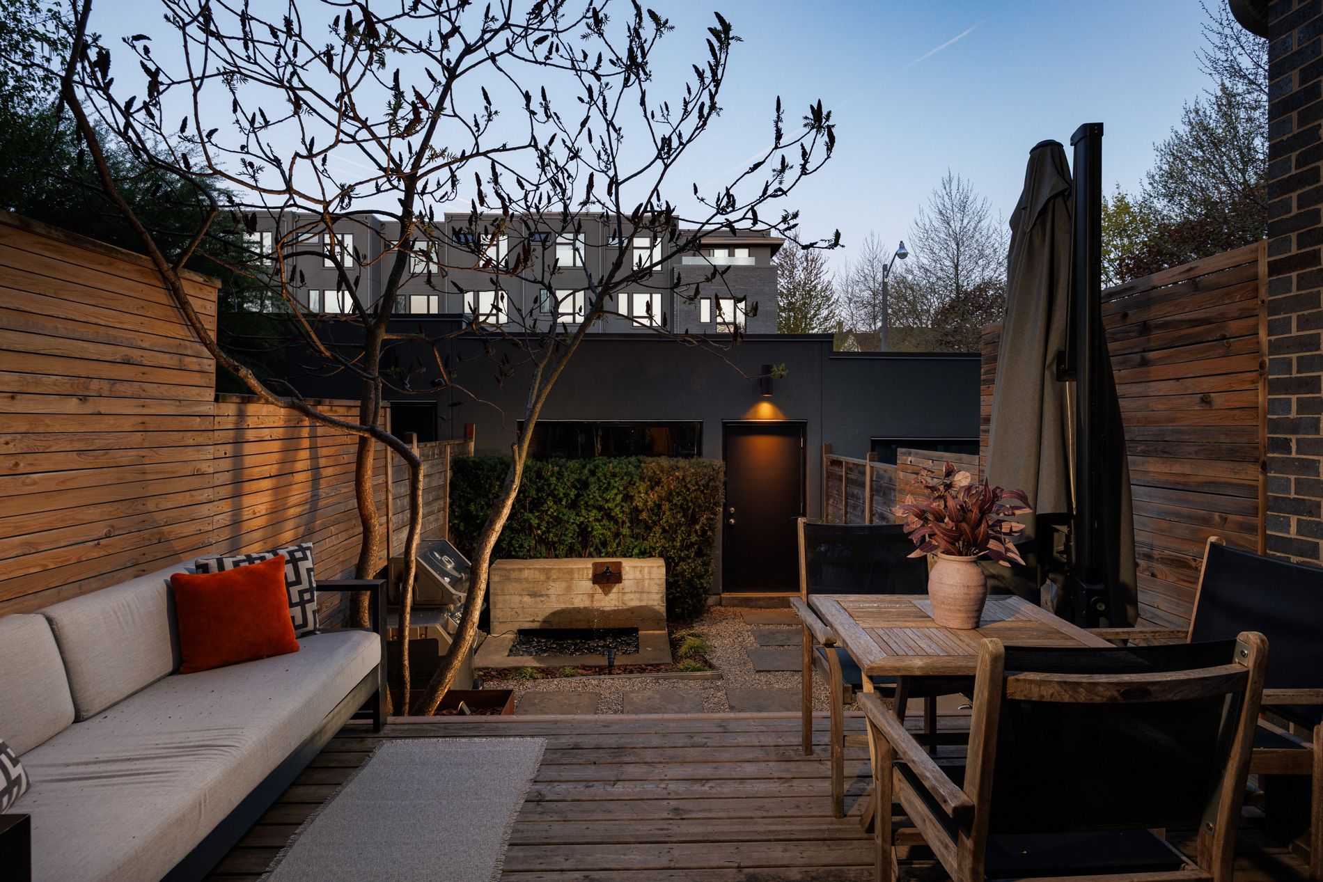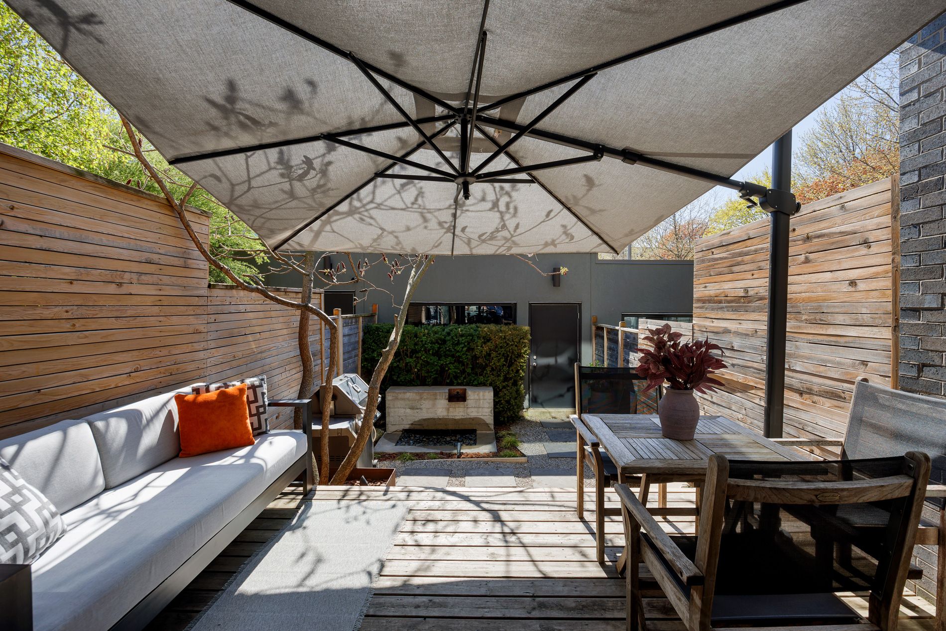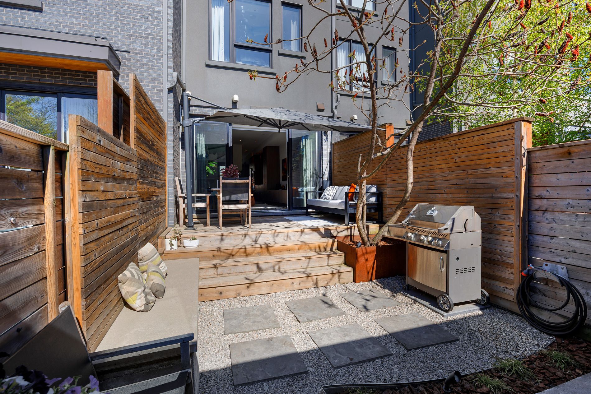 • Professionally landscaped garden with custom deck and water feature.