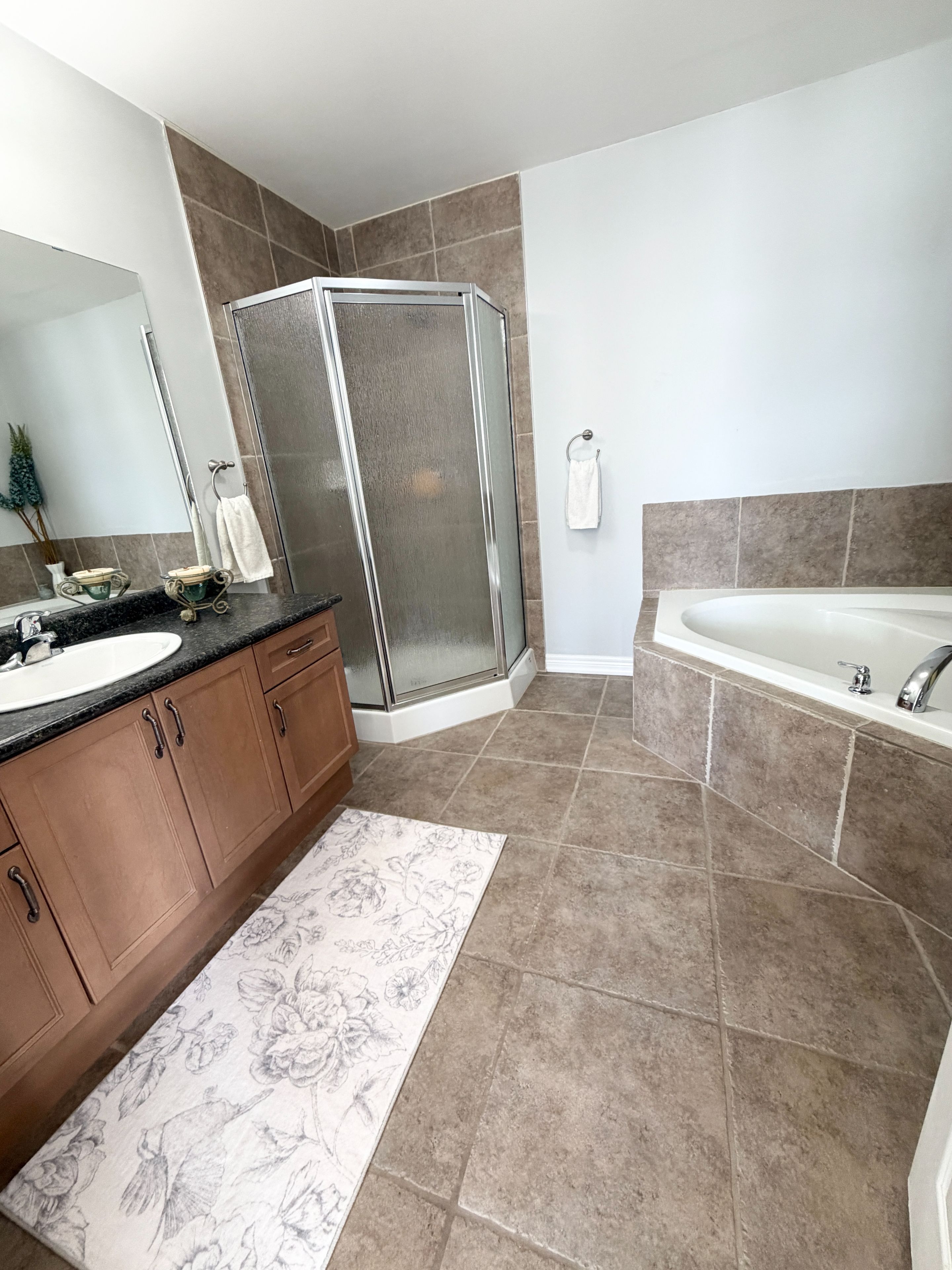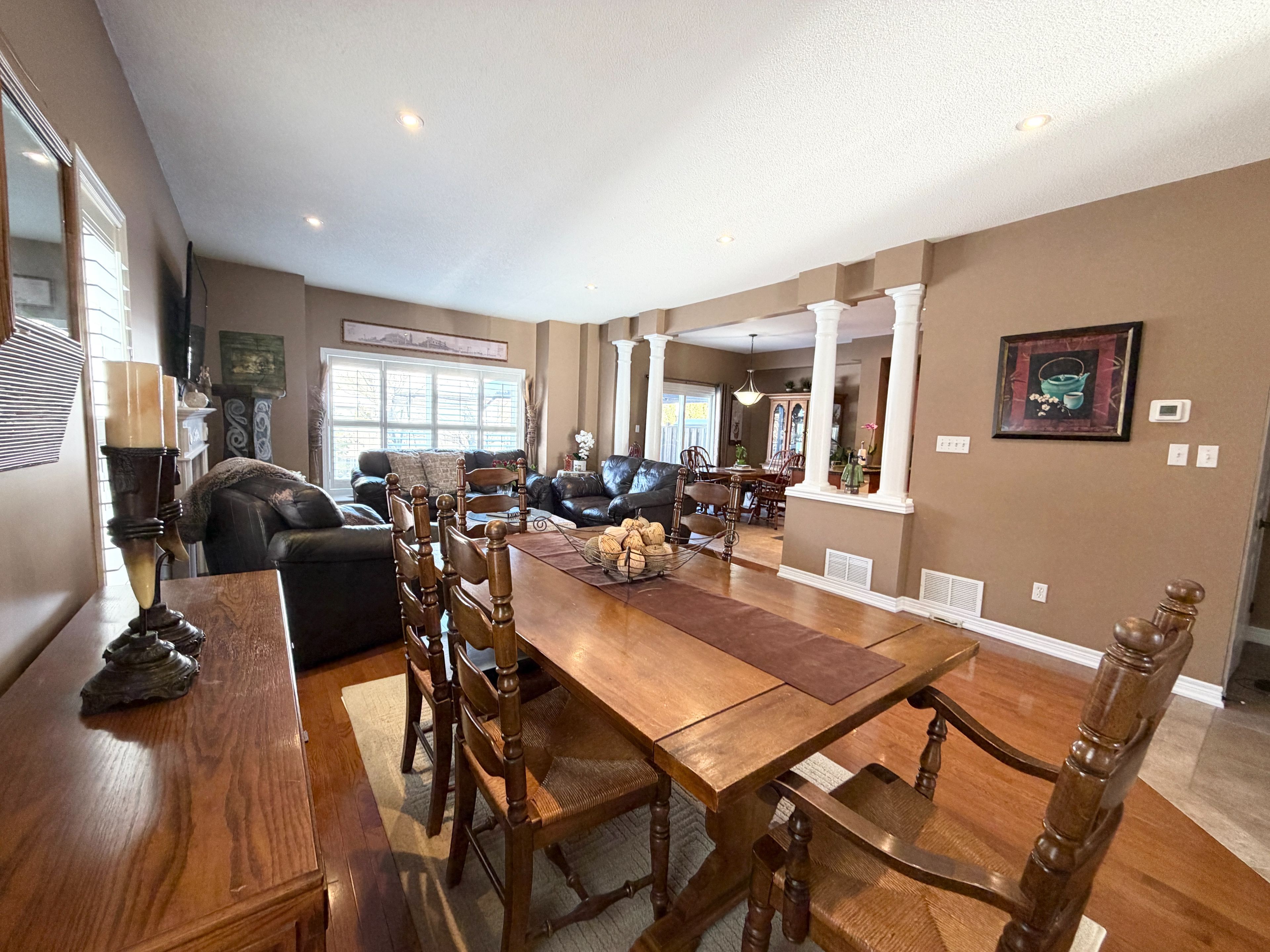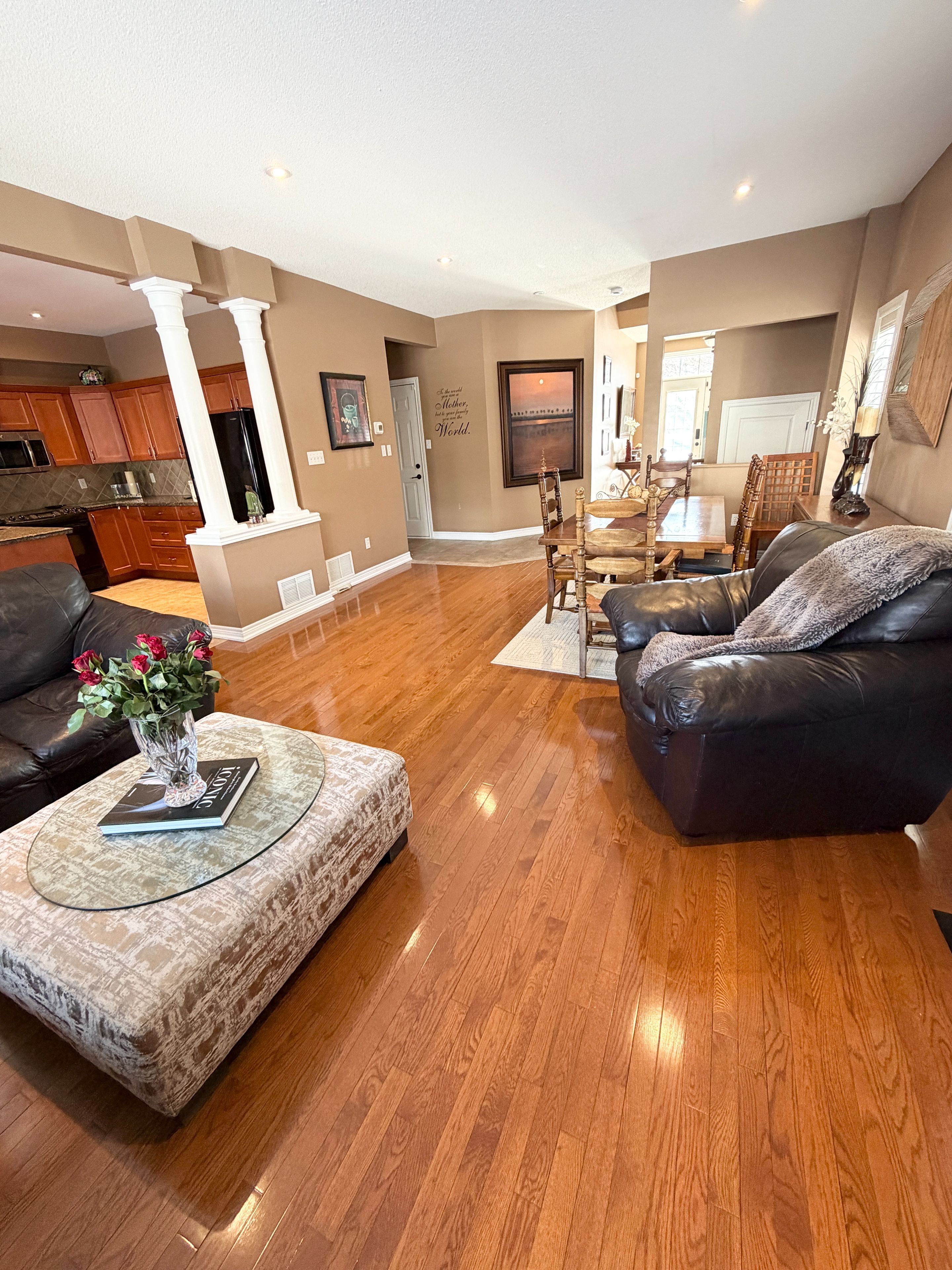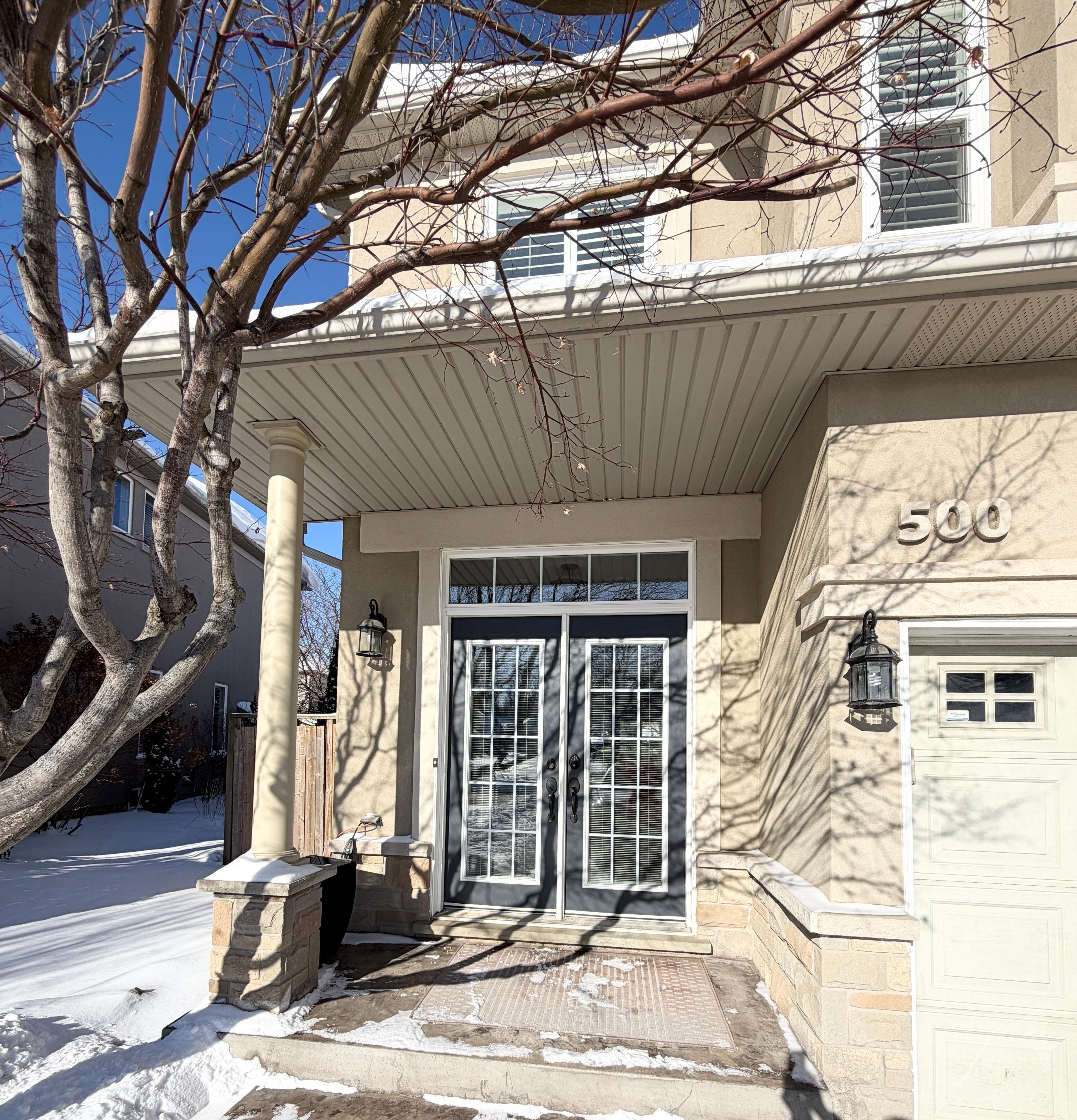Discover an exclusive open-concept offering over 2,100 sq. Ft. Of beautifully designed living space that truly defies the typical townhome feel. With soaring 9-foot ceilings on the main floor, this home boasts a perfect balance of timeless ceramic and solid wood floors, complemented by an upgraded maple kitchen featuring granite countertops, pull-out drawers, a slide-in range, built-in microwave, dishwasher, and garburator. Enjoy cozy evenings by the gas fireplace and effortless outdoor entertaining with a gas barbeque hookup on your spacious wooden deck and gazebo. The fully finished basement adds incredible versatility with a bedroom, living room, office nook, and three-piece bathroom. Central vacuum throughout with mount inlet adds convenience to everyday living. This landmart-built meadowlands model is a rare find-semi-detached, move-in ready, and packed with premium upgrades including california shutters, real hardwood staircase, custom closets, and a luxurious master suite with a four-piece ensuite and oversized soaker tub for two. The double car garage, triple-wide stamped / aggregate driveway, fully fenced oversized backyard oasis, and beautiful side yard with flower beds complete this exceptional property. This private road in front of house is a safe place where children can play without the dangers of the busy road. Morning sun in the front is the perfect place for your coffee and sun sets in the back makes entertaining enjoyable, with plenty of sunlight for the side & back gardens to bloom every year. Japanese maple trees, pink and white peonies, hibiscus, hydrangea, and more blooming every year. Homes like this don't come on the market often-seize this rare opportunity to own a stunning, spacious, and truly unique townhome that blends style, comfort, and functionality seamlessly. This landmart modal can be found throughout the meadowlands as a detached home at a much higher price on a smaller lot! Act fast before it's gone!