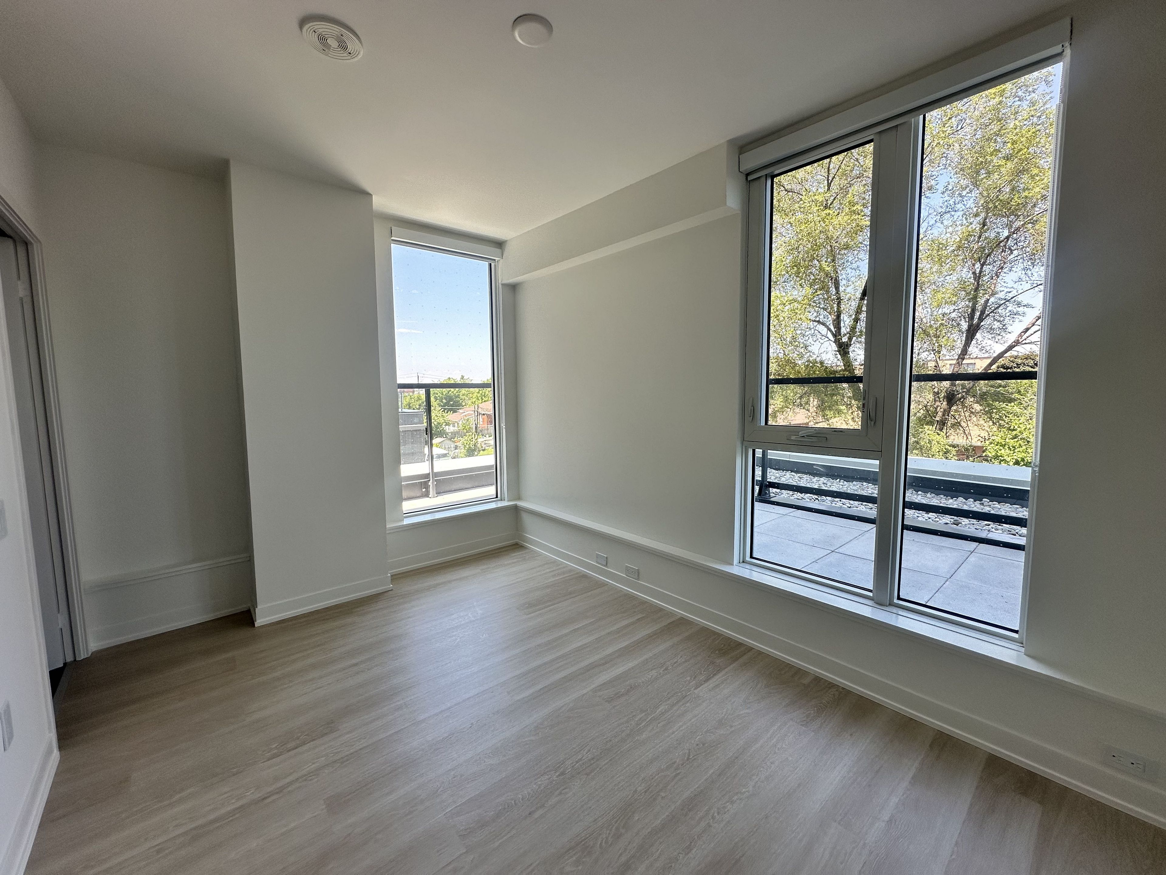 Welcome to nordic condos in clanton park. Very functional layout 2+1 condo with huge wrap-around balcony and 3 sides of windows. Lots of sunlight! The den has a window and can be used as 3rd bedroom! Elevate your lifestyle with our premium amenities: a sleek catering kitchen, round-the-clock concierge, serene fitness studio featuring a yoga room, inviting outdoor lounge areas with bbqs, co-working space, versatile multi-purpose room with a second-level catering kitchen, soft-turf children's play area, outdoor exercise zone, and convenient pet wash stations. Central location! Close to wilson subway station, hwy 401, allen rd, yorkdale mall & much more! Close to parks, shopping, restaurants & transit. Welcome to the pinnacle of comfort and convenience in wilson heights. One parking included.