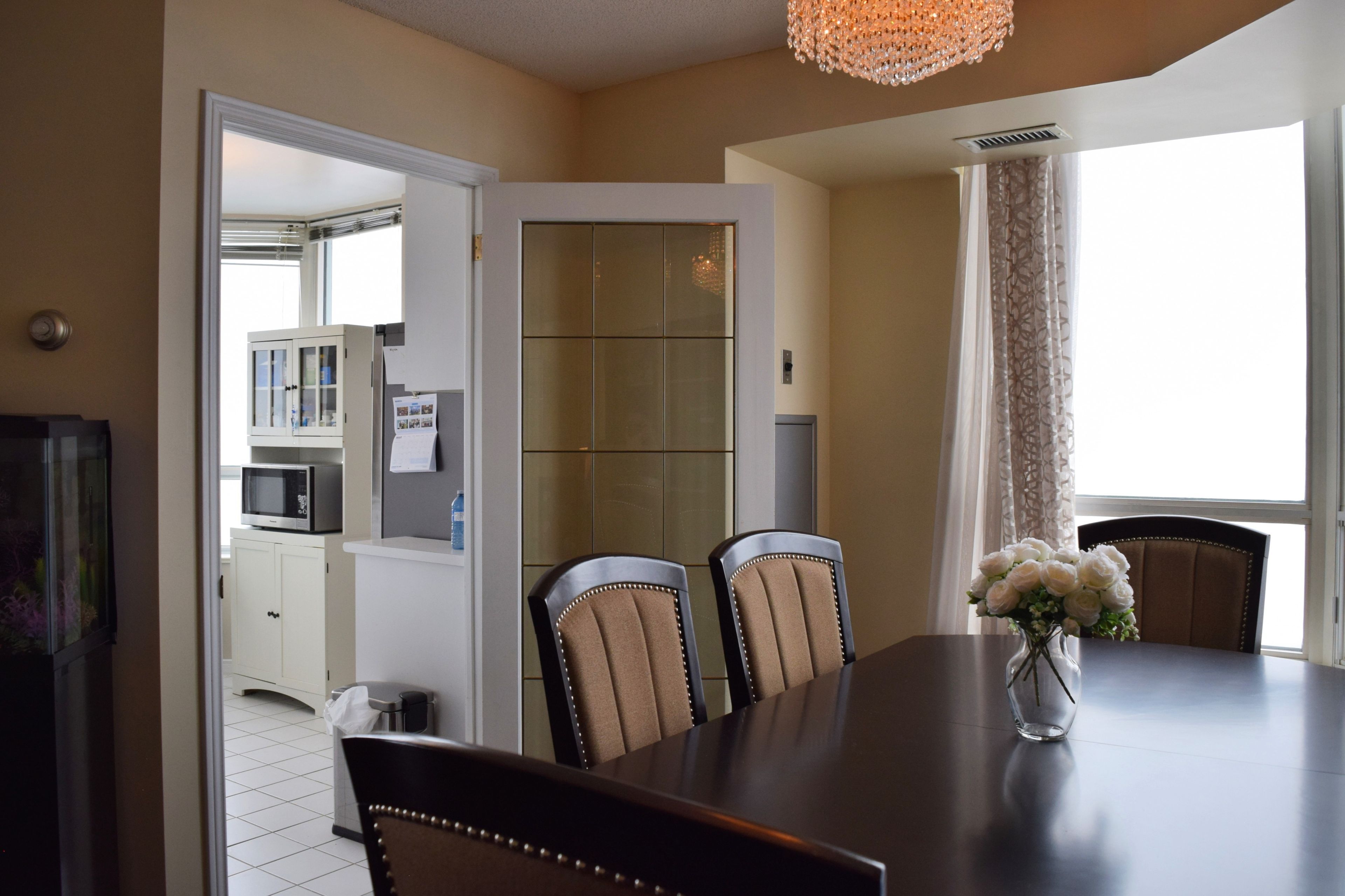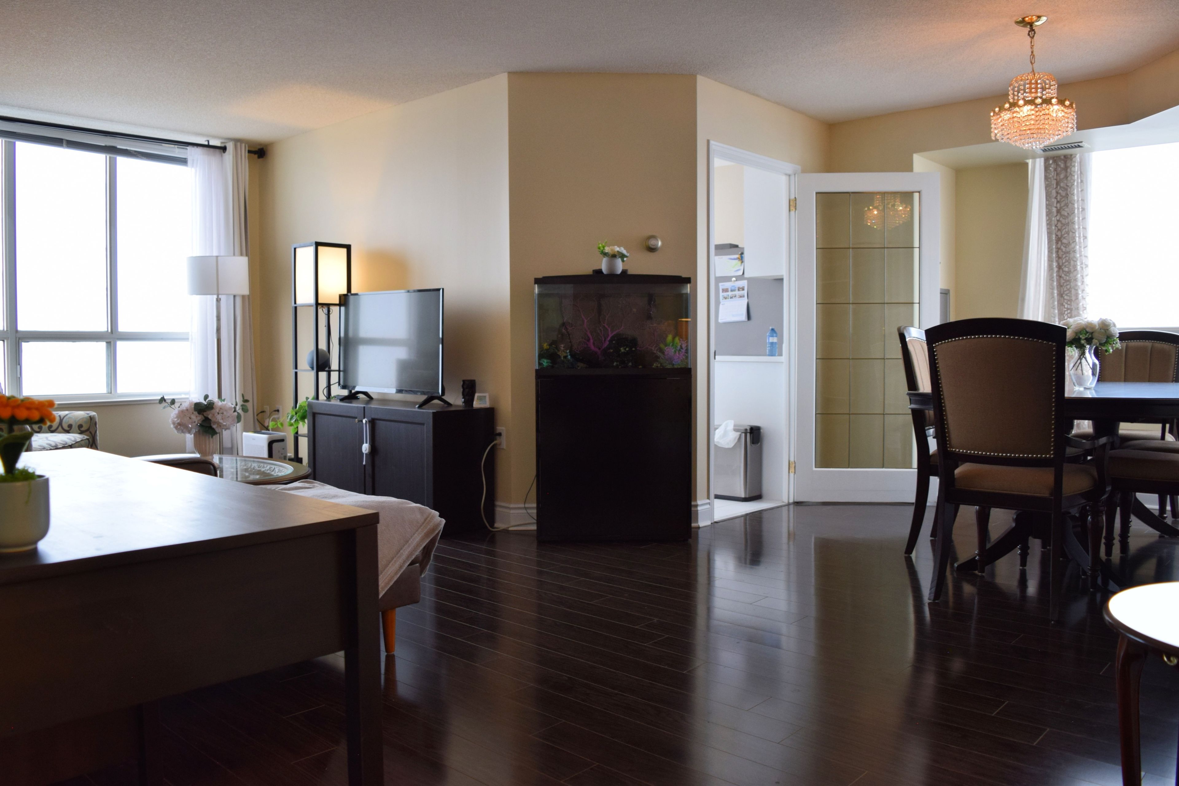 Welcome to the chartwell place! Available for immediate move in date for a+ tenant! Approx 1100 square-foot suite perched on the sub-penthouse level near the vibrant intersection of mccowan and finch. This condo has breathtaking unobstructed northwest views of the city and a cinematic view overlooking the busy and popular woodside square shopping mall. Meticulously maintained and bathed in natural light, this exquisite two-bedroom, two-bathroom, one car parking & one locker suite features large bedroom sizes and open-concept living and dining areas that are impressively oversized with a spacious and fluid split-corner layout designed for both grand entertaining and quiet relaxation. Whether you are a small growing family or a retired senior couple, this residence offers an expansive scale of comfort, space, utility and convenience all in a high demand location of scarborough. The chartwell place offers many excellent amenities: peace of mind with 24-hour friendly & professional concierge, secure gated entry, exercise room, indoor swimming pool, jacuzzi hot tub, sauna, large party and meeting room, billiards and ping-pong games room, guest suites and plenty of visitor parking. All of this located just a few steps to public transit and the woodside square shopping mall providing convenient access to grocery, td bank, royal bank, bmo, lcbo, shoppers drug mart & many budget friendly restaurants!