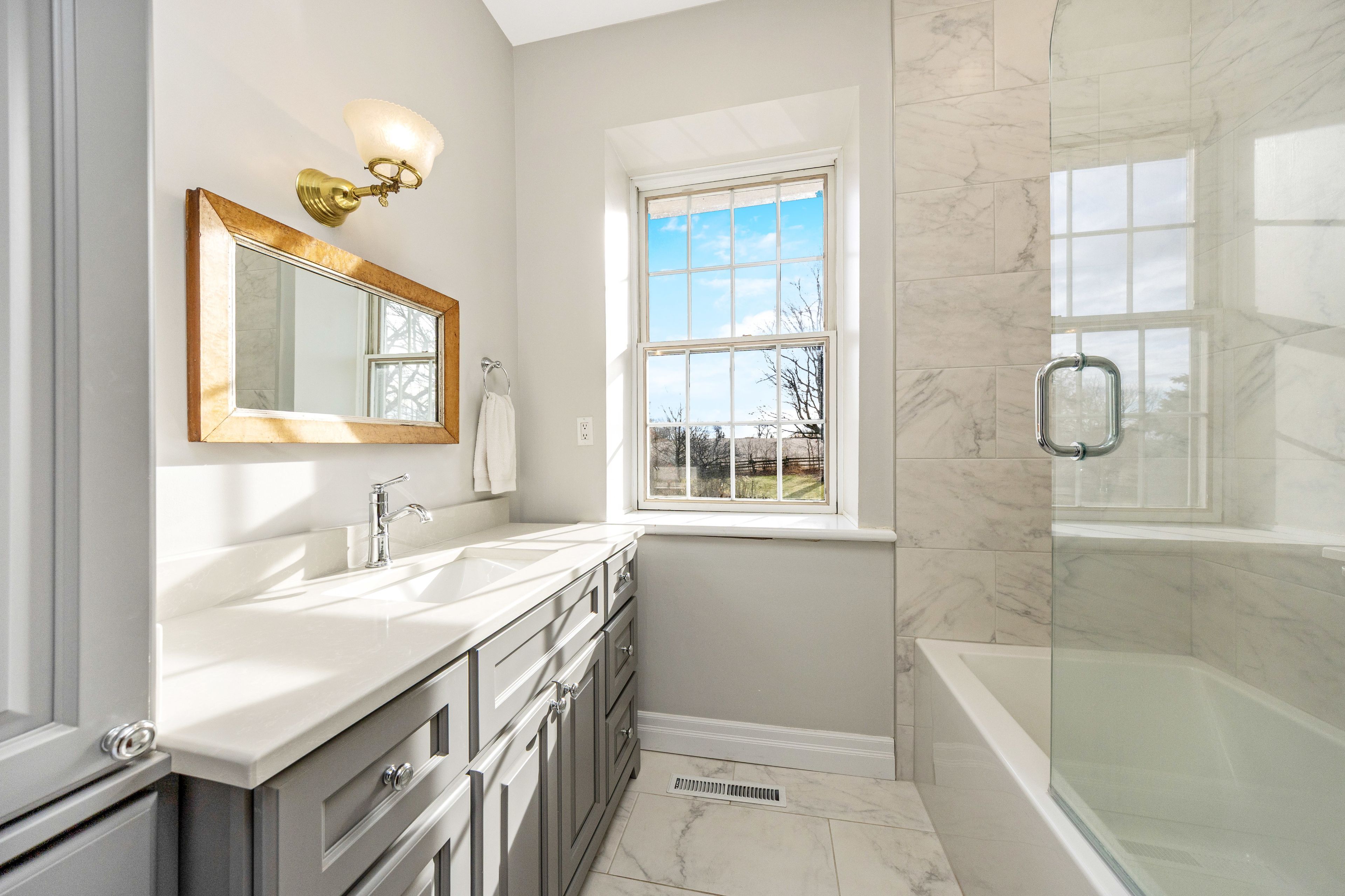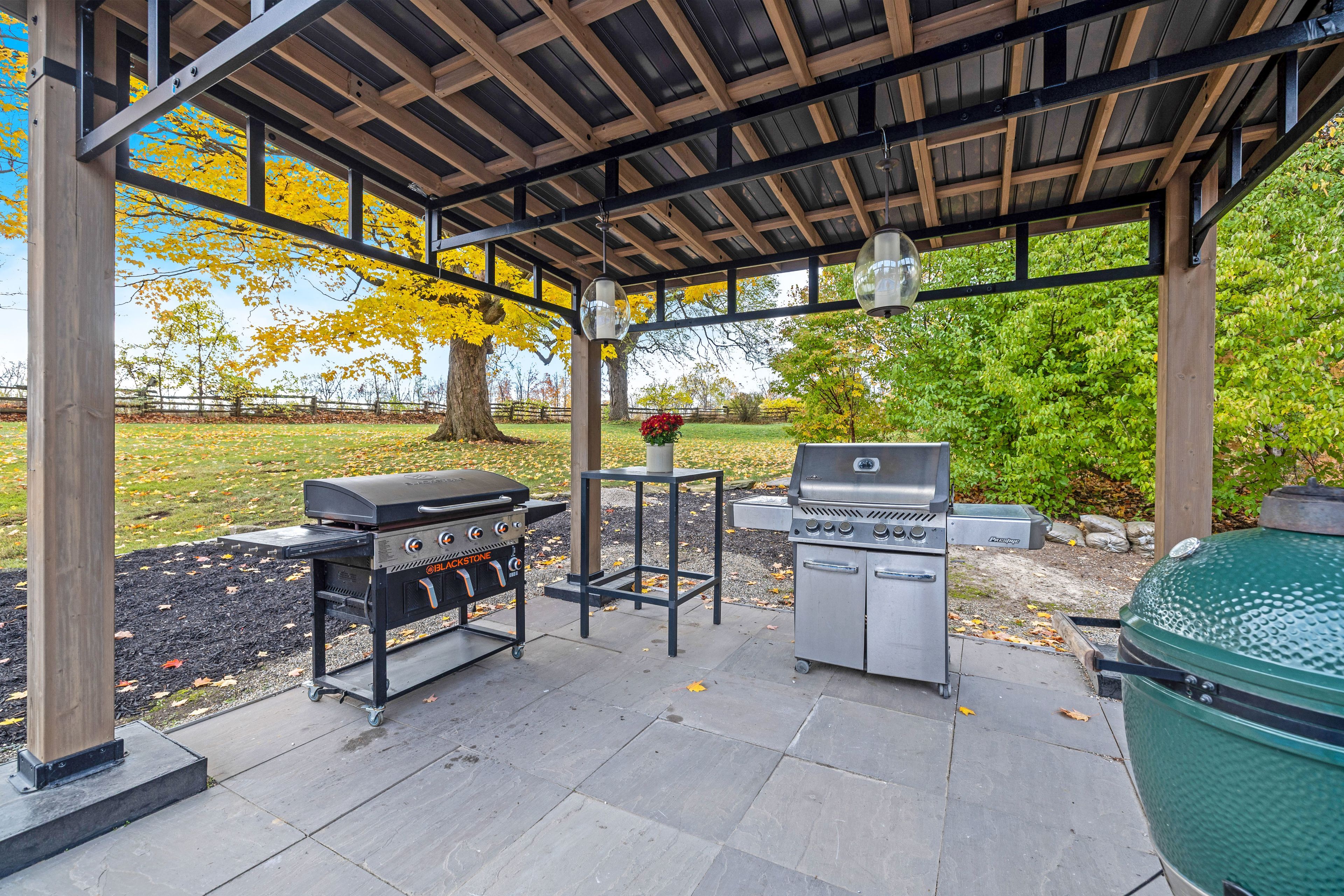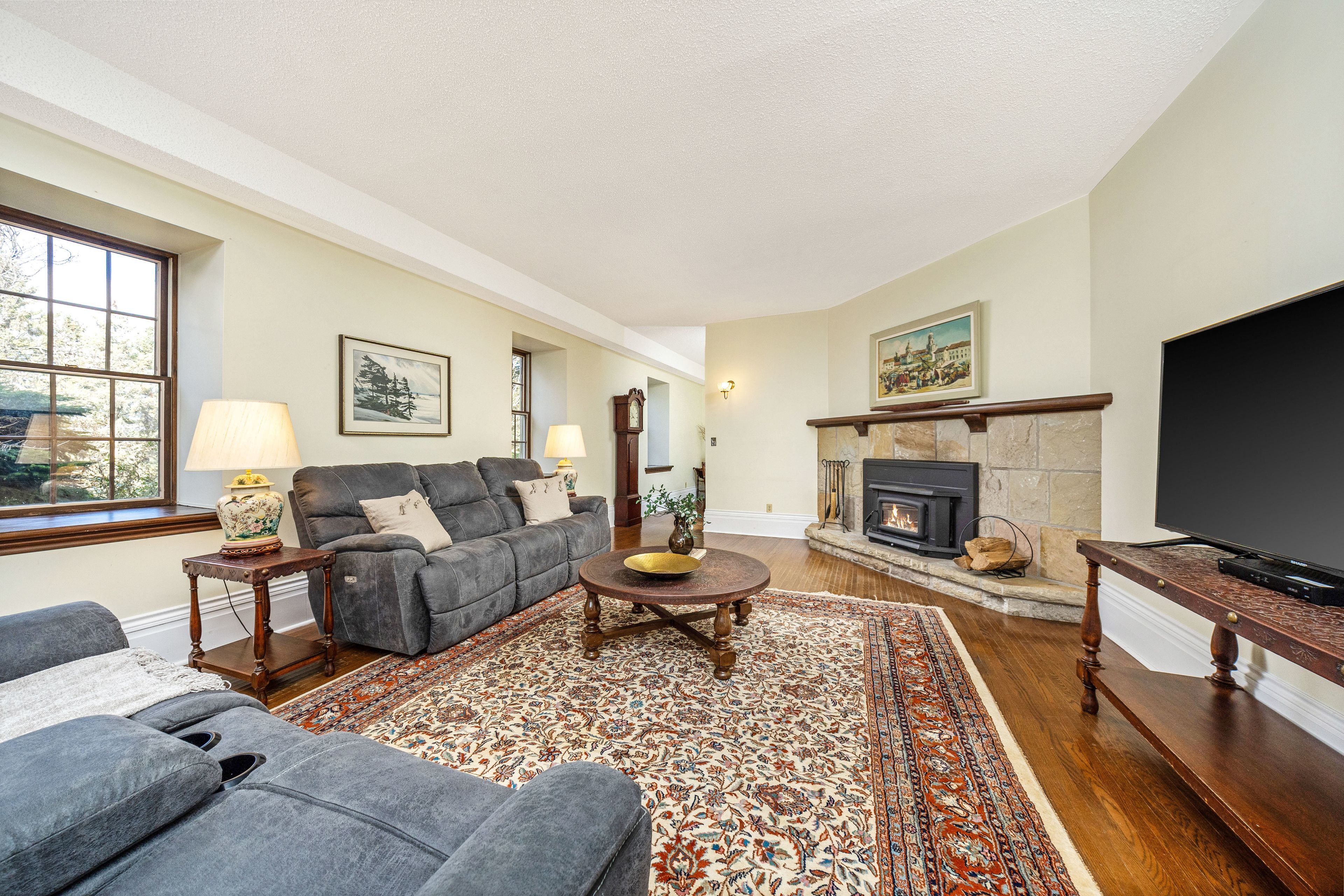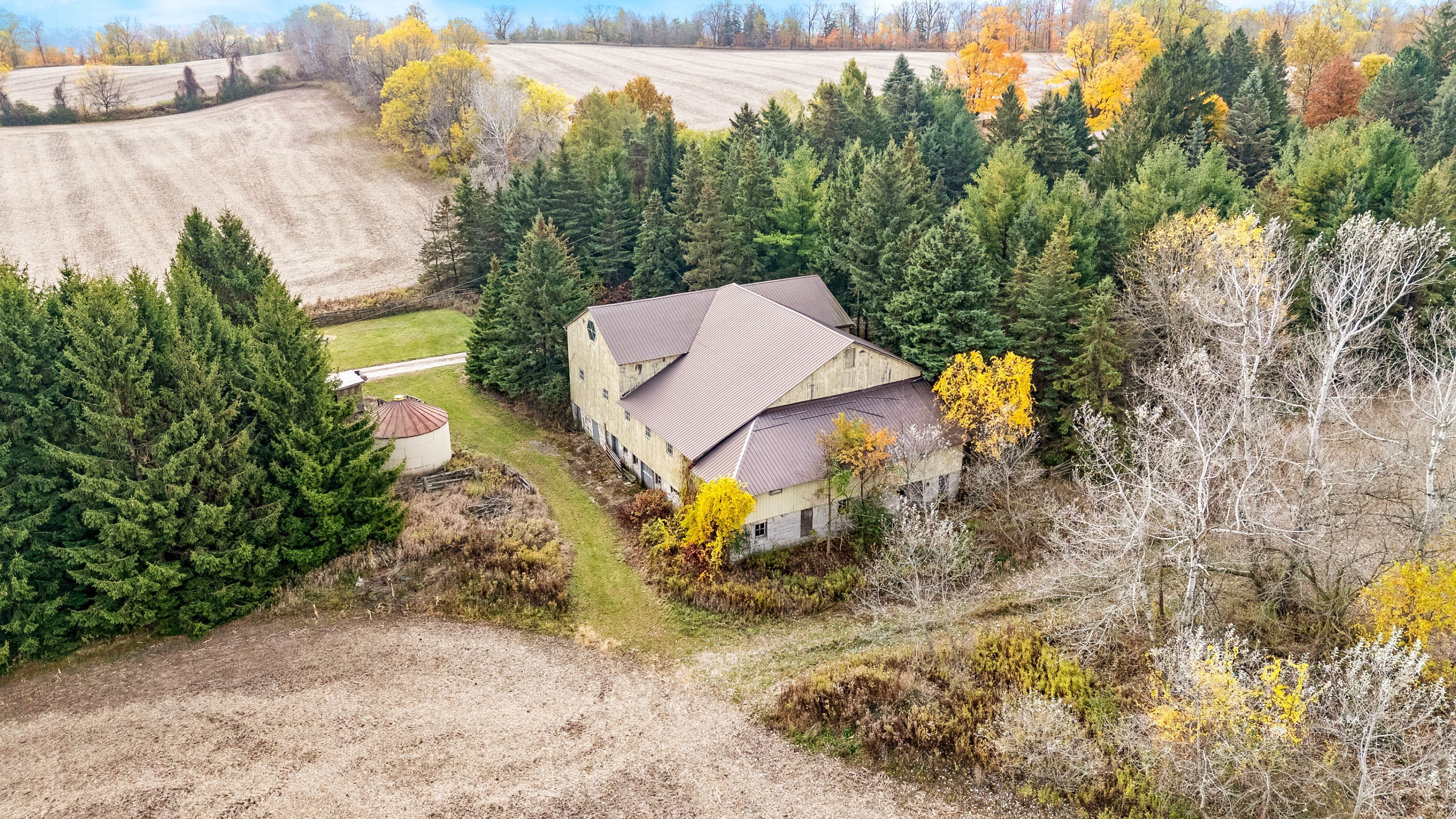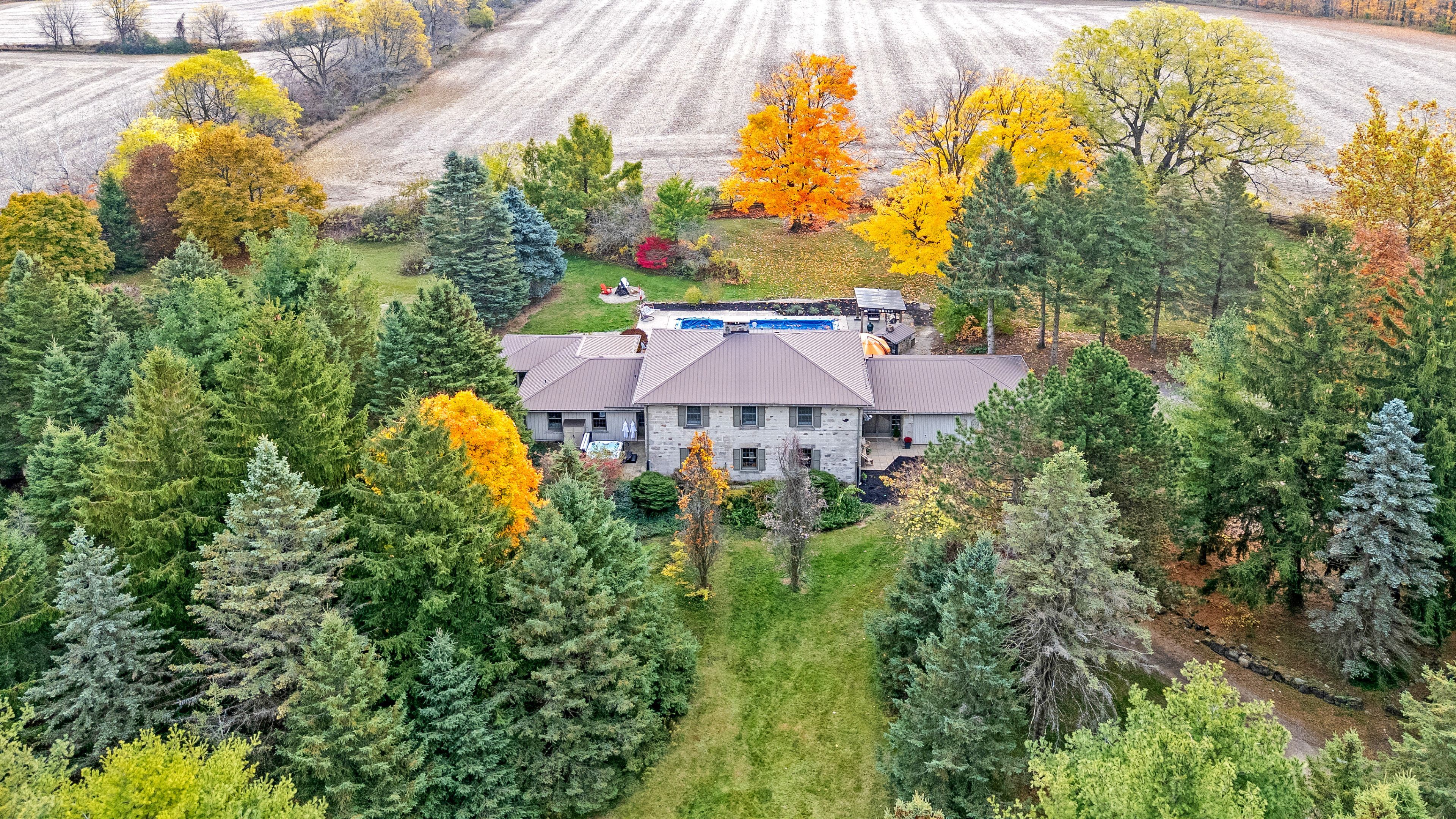 This circa 1875 fieldstone farmhouse has been thoughtfully redesigned by architect grant a. Whatmough and is set on approximately 99 acres behind a gated entry. Maintaining classic charm and modern convenience, this property is ready for a new family to carry on the tradition. The main floor welcomes you with a double door entry leading into a spacious open concept kitchen and large living area highlighted by a stone fireplace and deep windowsills. The kitchen features corian counters, stainless steel appliances, a center island, and walkout access to a covered stone patio and in ground pool. Enjoy cozy breakfasts by the wood burning fireplace or host larger gatherings in the formal dining room. A rare main floor primary suite offers hardwood floors and a walkout through double french doors to a sunroom with heated floors overlooking the perennial filled backyard and pool. The spa style ensuite includes heated tile floors, a double glass shower, and a soaker tub. Upstairs, you will find four bright and spacious bedrooms, each with closets and windows overlooking the private property. Along with the added ceiling height, this level features two updated baths, upper level laundry, and generous closet space. Outdoor living is highlighted by a 20 x 40 geothermal heated marbelite pool with diving board, a flagstone patio, and a covered entertainment area complete with a pizza oven and cooking space. A heritage post and beam barn with hayloft, a secondary garage or shed, and a silo enhance the property's charm. Mechanically, the home offers dual geothermal systems for the house and pool, radiant in floor heating, two drilled wells, and an active lease on approximately 52 workable acres. Trails and a 21 acre woodlot provide endless opportunities for exploration. This one of a kind rural retreat is just minutes from town amenities and ready for its next family to enjoy.