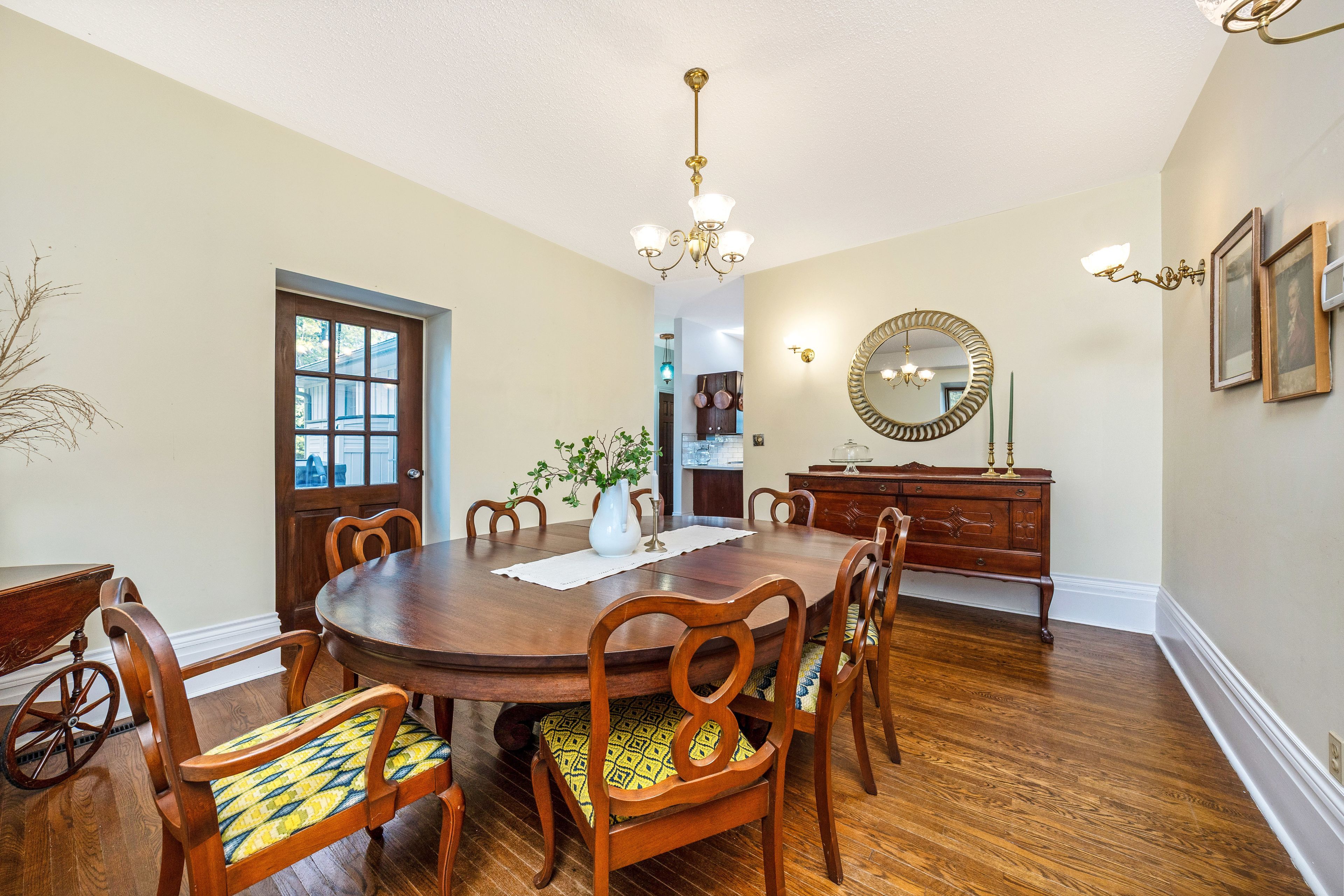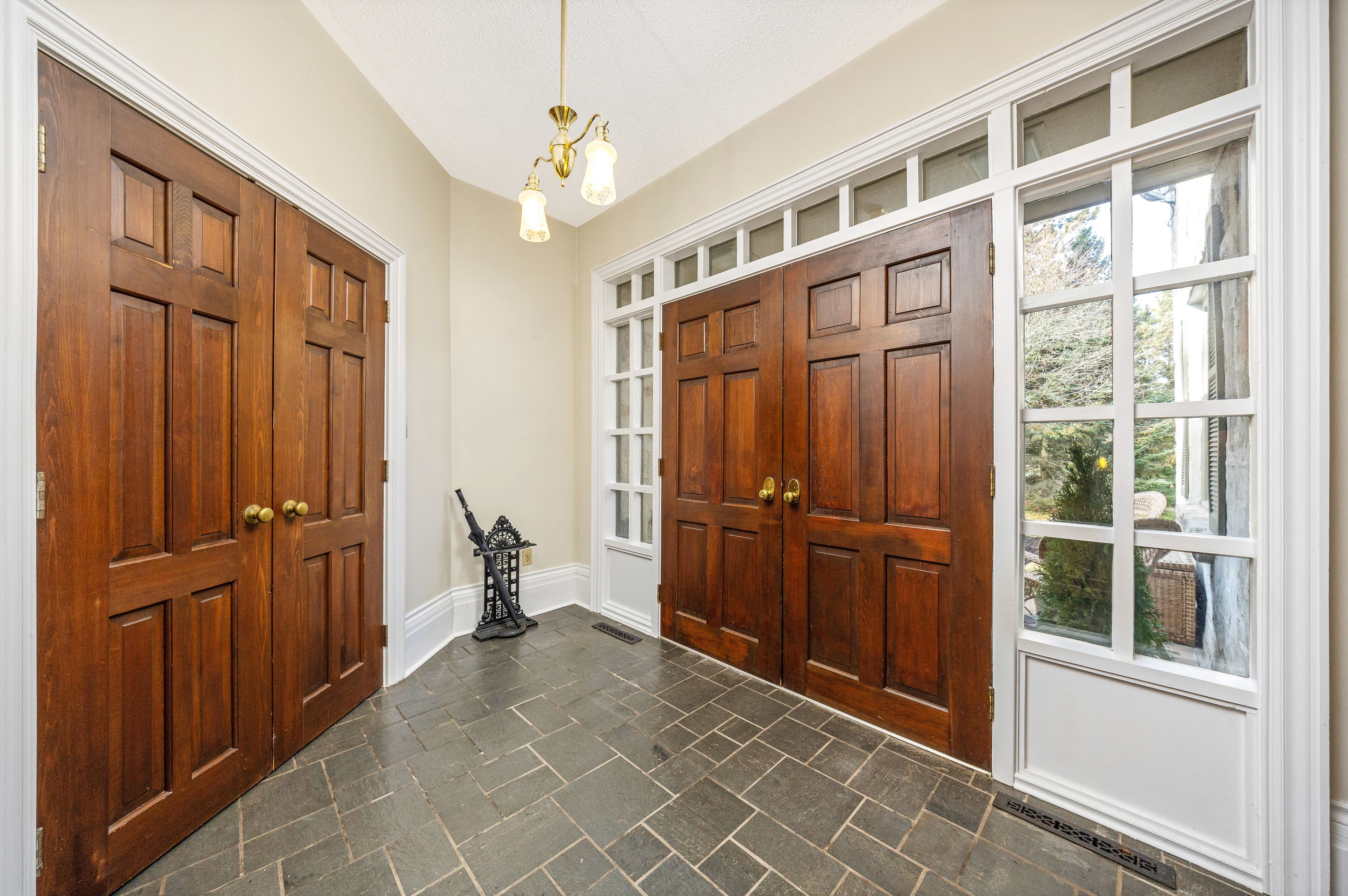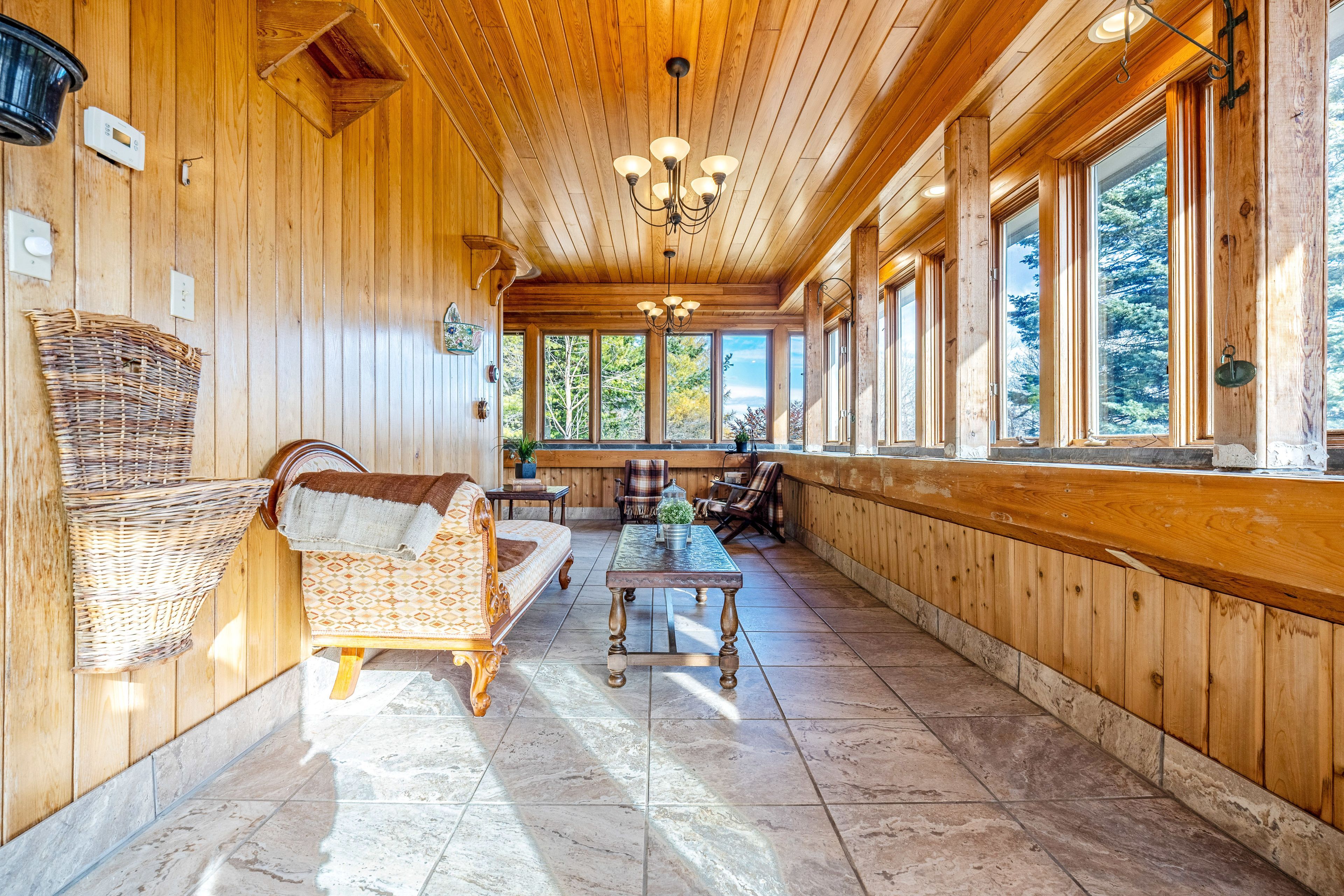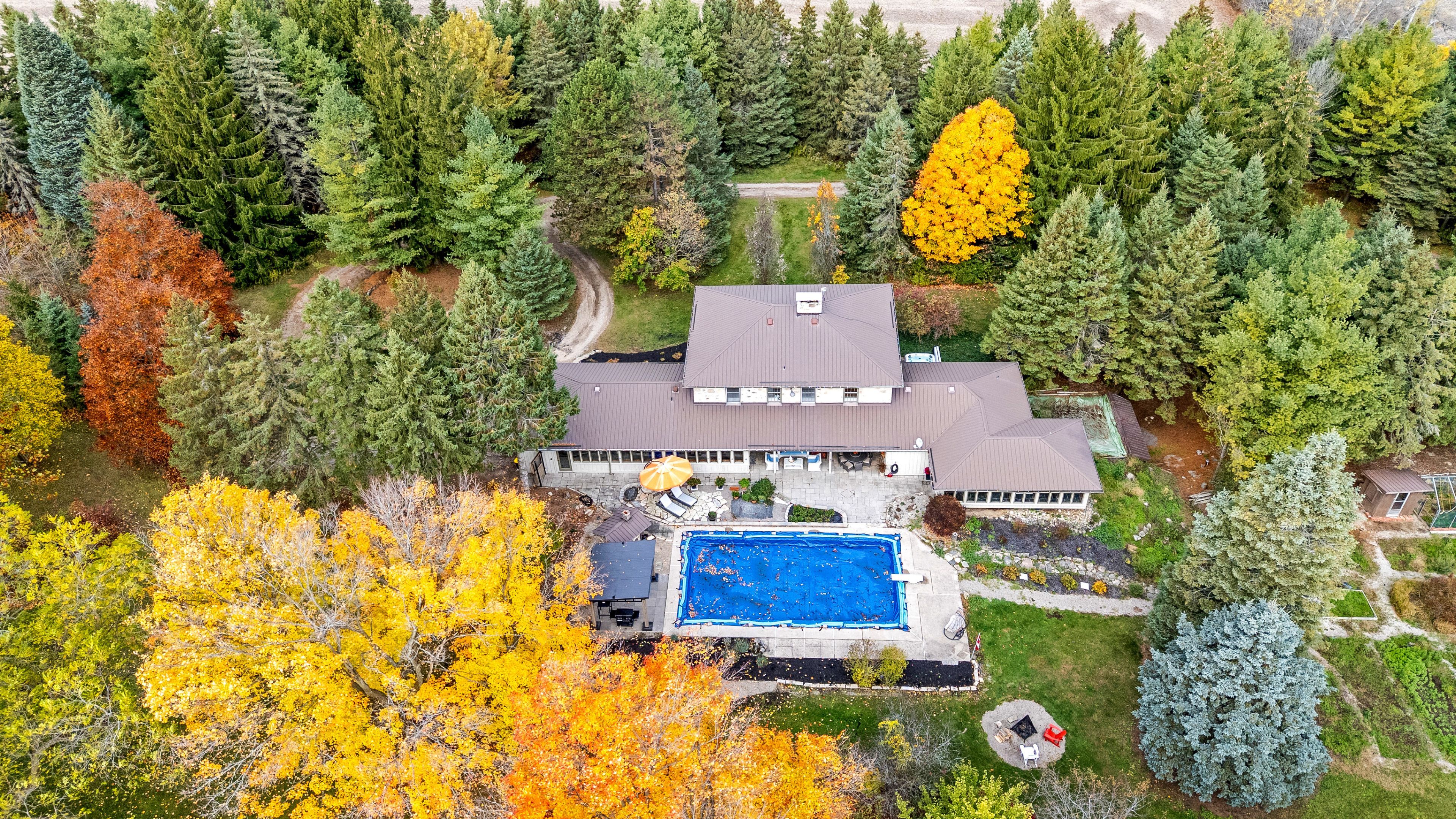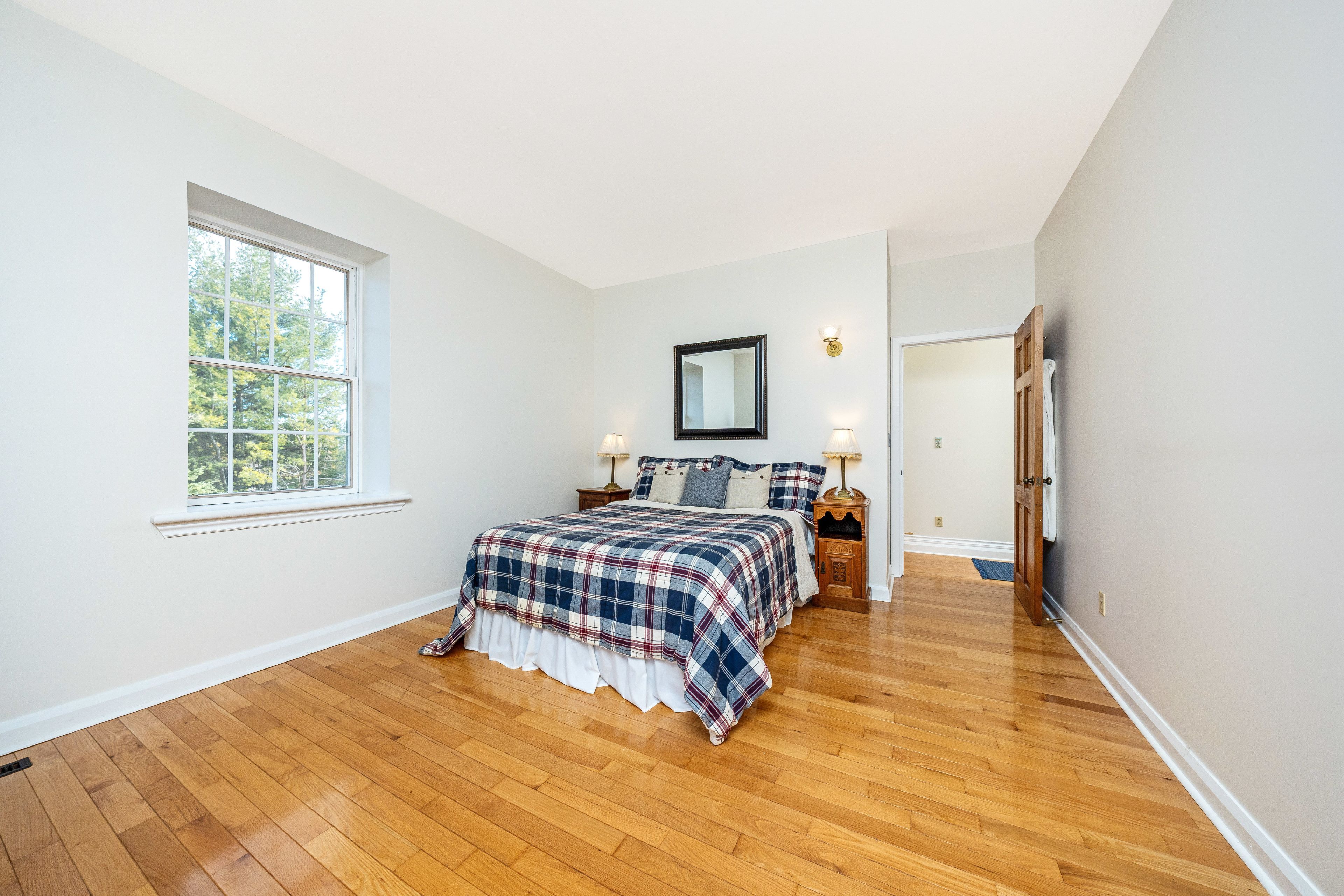 This circa 1875 fieldstone farmhouse has been thoughtfully redesigned by architect grant a. Whatmough and is set on approximately 99 acres behind a gated entry. Maintaining classic charm and modern convenience, this property is ready for a new family to carry on the tradition. The main floor welcomes you with a double door entry leading into a spacious open concept kitchen and large living area highlighted by a stone fireplace and deep windowsills. The kitchen features corian counters, stainless steel appliances, a center island, and walkout access to a covered stone patio and in ground pool. Enjoy cozy breakfasts by the wood burning fireplace or host larger gatherings in the formal dining room. A rare main floor primary suite offers hardwood floors and a walkout through double french doors to a sunroom with heated floors overlooking the perennial filled backyard and pool. The spa style ensuite includes heated tile floors, a double glass shower, and a soaker tub. Upstairs, you will find four bright and spacious bedrooms, each with closets and windows overlooking the private property. Along with the added ceiling height, this level features two updated baths, upper level laundry, and generous closet space. Outdoor living is highlighted by a 20 x 40 geothermal heated marbelite pool with diving board, a flagstone patio, and a covered entertainment area complete with a pizza oven and cooking space. A heritage post and beam barn with hayloft, a secondary garage or shed, and a silo enhance the property's charm. Mechanically, the home offers dual geothermal systems for the house and pool, radiant in floor heating, two drilled wells, and an active lease on approximately 52 workable acres. Trails and a 21 acre woodlot provide endless opportunities for exploration. This one of a kind rural retreat is just minutes from town amenities and ready for its next family to enjoy.