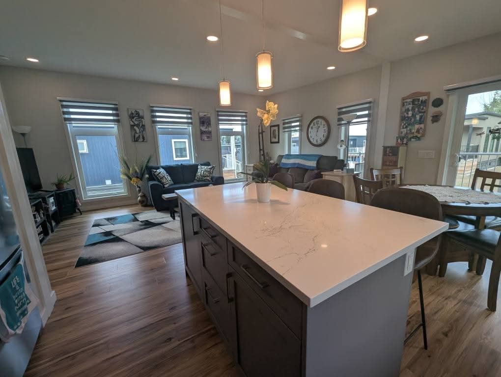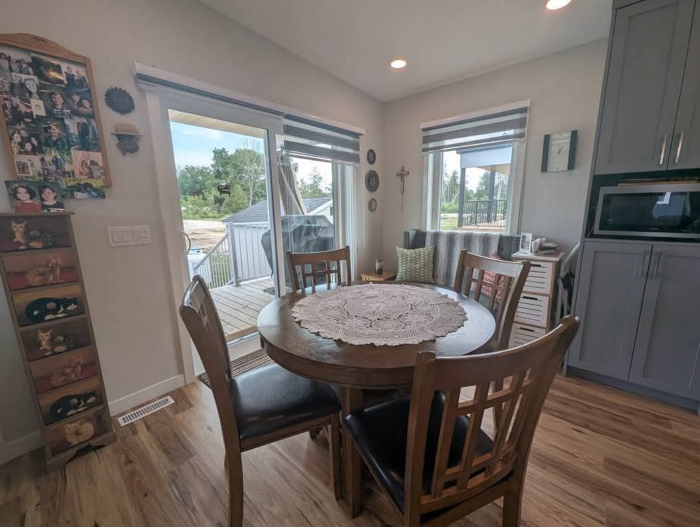 This beautiful, bright almost three year new 2 bedroom, 2 bathroom home offers 1,008 sq. Ft. Of interior space and a 192 sq. Ft. Covered porch (shiplap wood soffit ). The total combined space is 1,200 sq. Ft. The home is all drywall interior with quartz countertops in the bathrooms and kitchen which has ceramic backsplash tiles and cabinetry featuring shaker style doors and drawers with soft close hardware, triple pane uv blocking windows and luxury vinyl plank flooring. Includes whirlpool stainless steel refrigerator, gas stove, dishwasher, microwave, ge stackable washer and dryer and central heat and ac. Also includes all window coverings, a fire pit and blinds for the covered porch. There is a crawl space under the home and the side stairs are mostly closed in for extra storage. Parking for two vehicles. A golf cart pad and 8 x 12 shed with hydro are provided monthly land lease is $$710 + hst (plus property tax). Lot rent includes: water, sewer, garbage/recycling, road snow removal, an outdoor inground pool and common area maintenance of parks and trails. This community is located minutes away from a number of beautiful beaches on lake huron. Port elgin estates & resort is open year-round, providing owners with the opportunity to experience the beauty of ontario's west coast during every season. From sandy beaches and scenic lakes to serene nature trails. There are walking trails that lead to macgregor point provincial park and a sandy beach along lake huron!