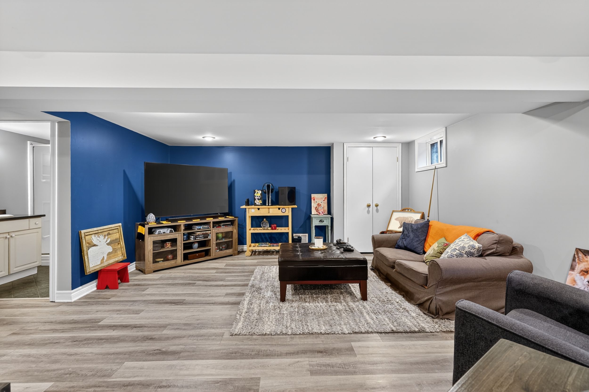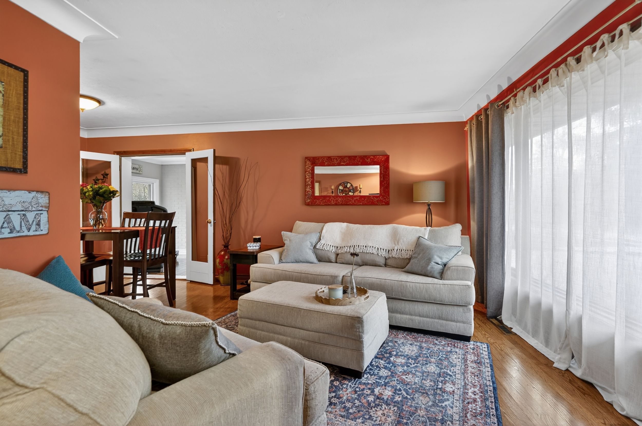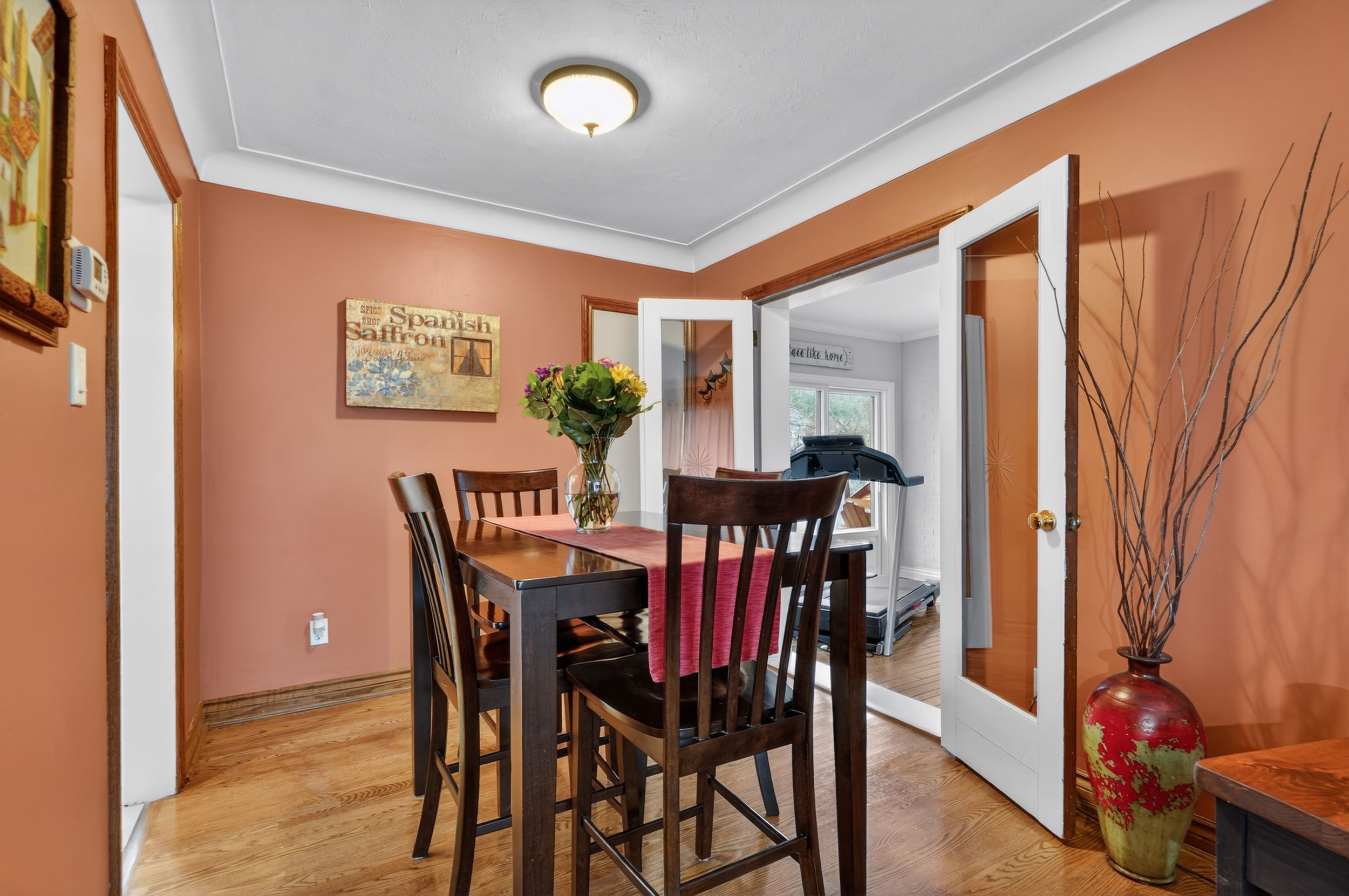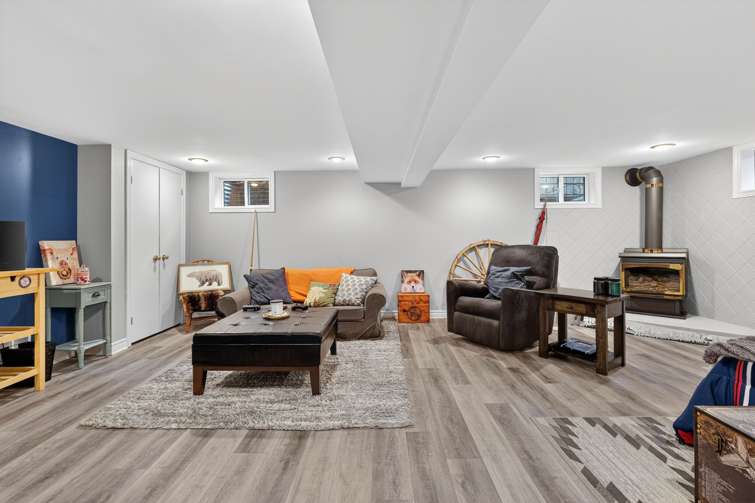 • Bright family room with fireplace and access to a sunny deck.