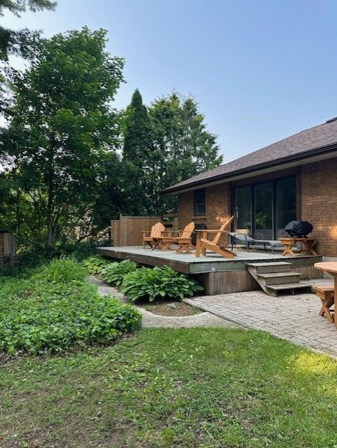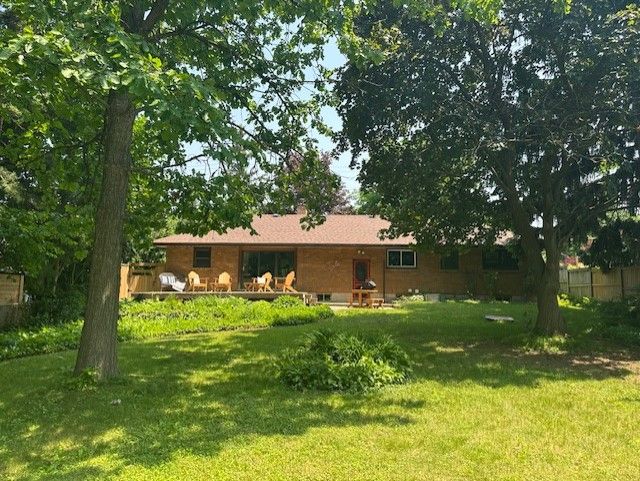 Welcome to this charming all brick bungalow, full of character and nestled on a stunning, tree filled lot in the heart of byron. With nearly half an acre of land, this home offers the space, privacy, and peaceful setting you've been searching for. Inside, you'll find 3 comfortable bedrooms, 2 bathrooms, and a bright family room with a fireplace and patio doors that open to a sunny deck perfect for morning coffee or evening bbqs. The living room and dining area flow nicely together, and the updated kitchen features beautiful mexican tile that adds warmth and personality. Vinyl windows and an updated bathroom make the home move-in ready. The lower level is a cozy retreat with a spacious rec room and a gas fireplace, ideal for game nights or winter relaxation. The backyard is truly special, fully fenced, beautifully treed, and offering a park like feel that's hard to find in the city. The double wide stamped concrete driveway is large enough to fit 4 cars plus 1 more in the garage. Best of all, you're just steps from the byron village, where you can enjoy local restaurants, the metro grocery store, pharmacies, boutique shops, banks, boler mountain ski resort, nearby golf courses and the endless trails of springbank park. This is the perfect blend of convenience, charm, and space.