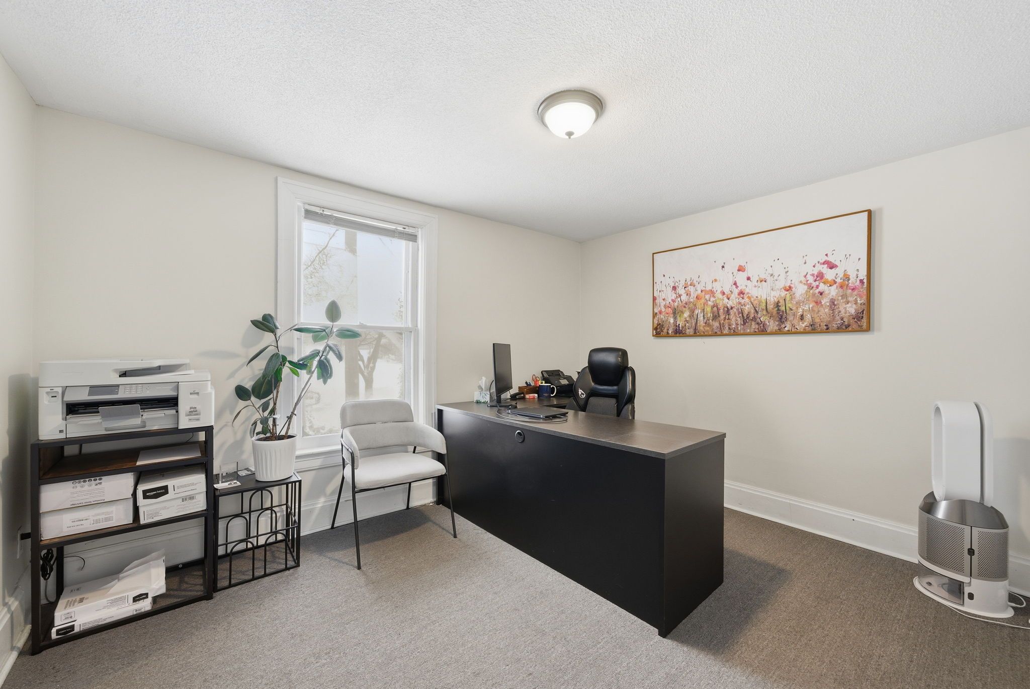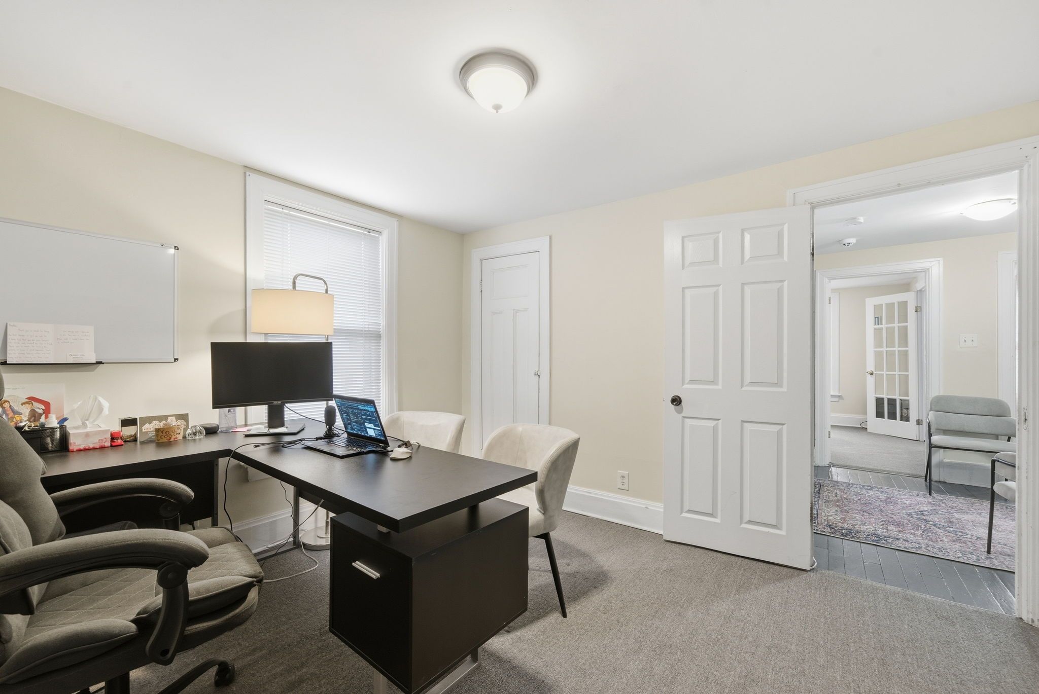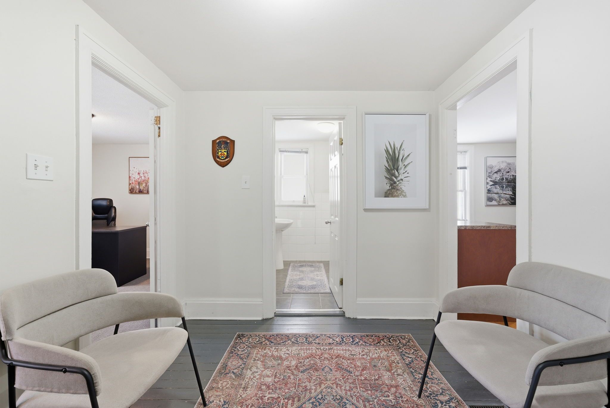 • Large foyer connects three spacious offices, kitchen, and bathroom.
