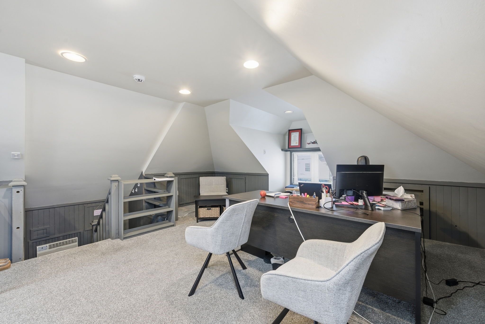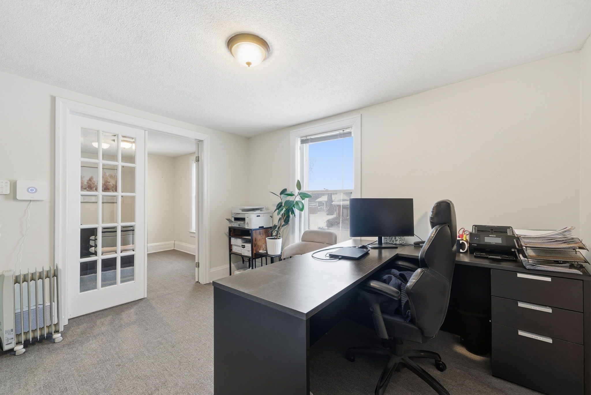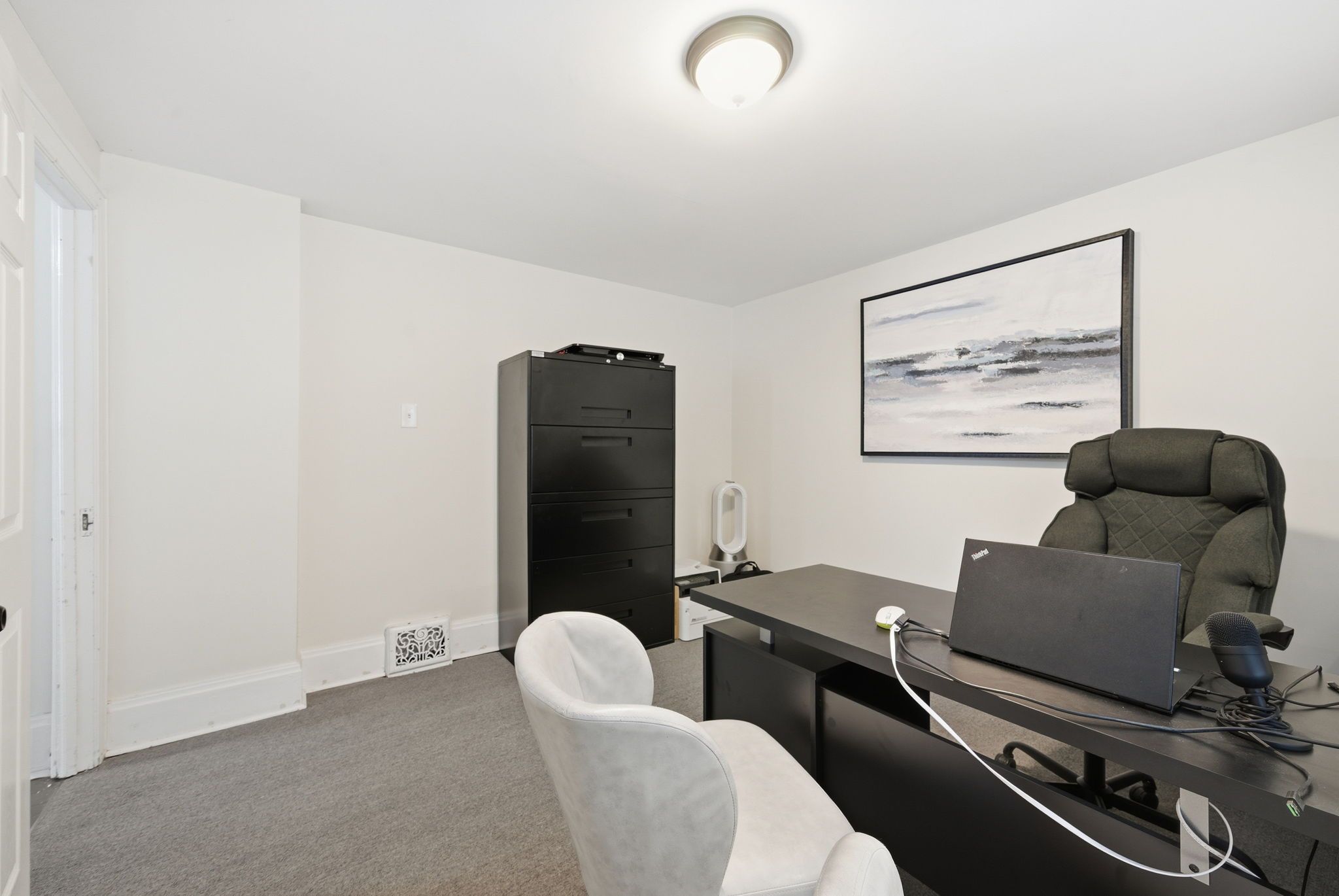 • Large foyer connects three spacious offices, kitchen, and bathroom.
