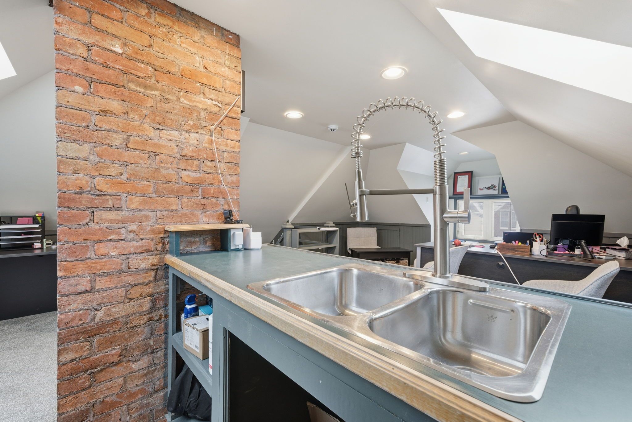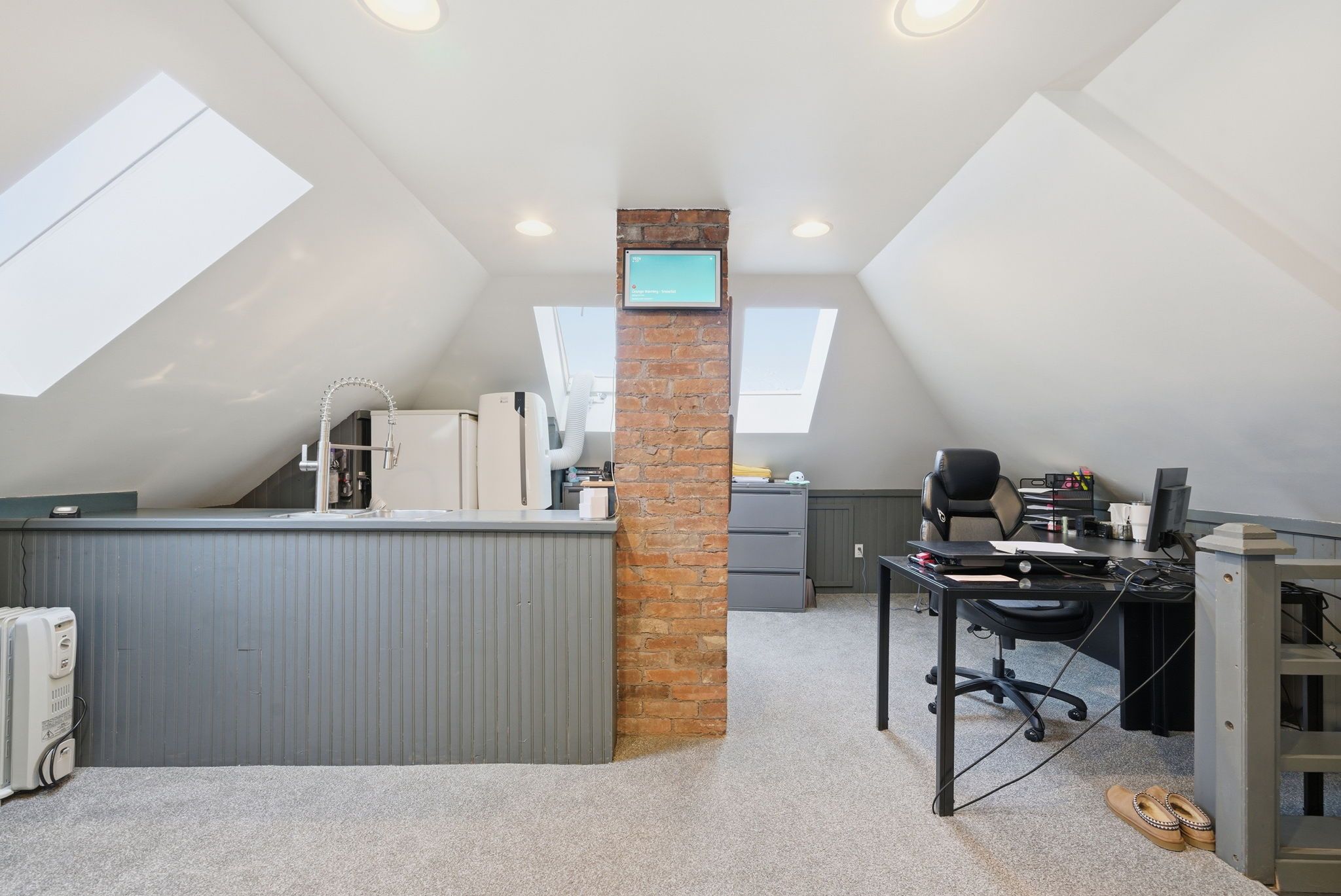 Amazing office in historic character building in downtown whitby - walking distance from go train, highway 401 and the 4 corners. Features listed here: private entrance off private deck overlooking brock street. A large entrance foyer connects 3 large offices, a full kitchen and bathroom on the 2nd floor. The spacious loft features a conference room/open concept area (with enough room to fit 6 desk stations) and includes a window, skylight, fridge and wet bar. 5 parking spaces. Fantastic high traffic location in the heart of downtown business area. Minutes to highways 412 & 407. Great visibility - corner lot. Near tail end of whitby santa claus parade route, a great place to enjoy the parade with your customers/clients . Previous uses include: lawyer, accountant, massage therapy, media production. Main floor (separate unit) has been occupied by royal heritage realty ltd., since 2017, employing over 300 agents - many potential opportunities for business synergy to help grow your business. Please note front shutter to be re installed when weather permits. Previous 3 tenants have left for larger units after growing their businesses at this location; could you be next?