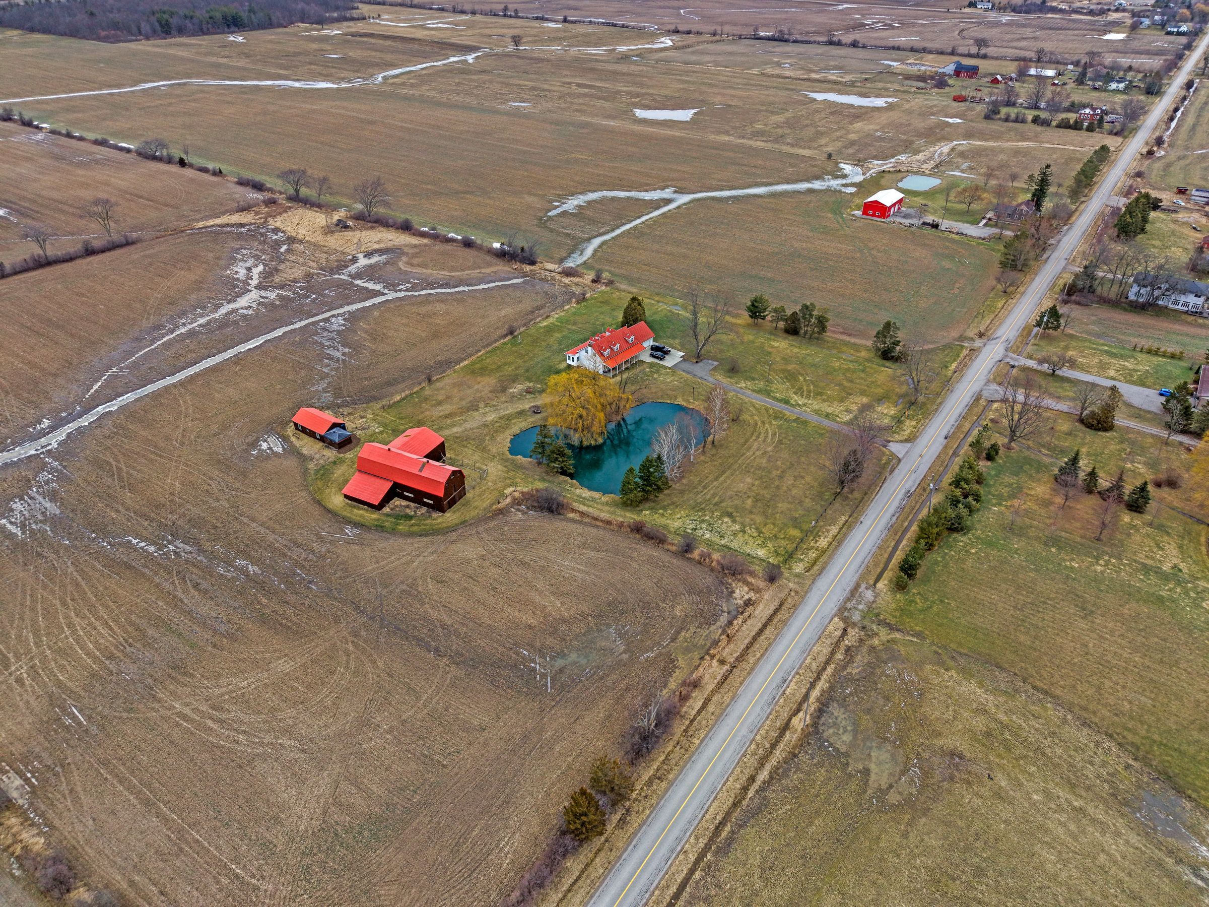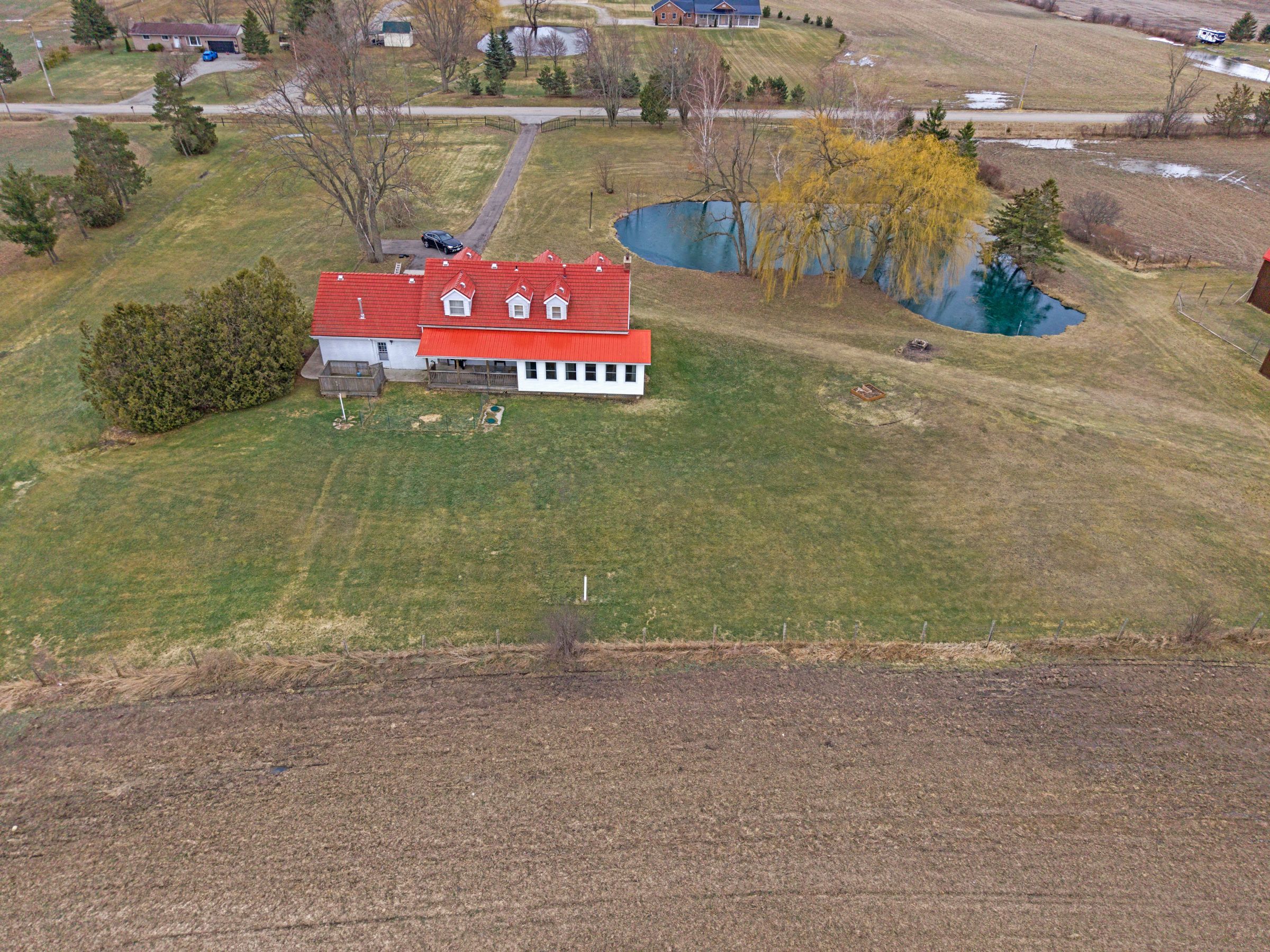 Escape the hustle and bustle and discover this exceptional country property set on 50. 585 acres of scenic land. Offering a wonderful blend of privacy, charm, and income potential, this property features approximately 10 acres of forest, with the remaining acreage consisting of productive farmland currently rented on a month-to-month basis. The inviting 2-storey farmhouse offers 4 bedrooms and 3 bathrooms, with a warm and functional layout ideal for family living. The main floor features bright principal rooms, a spacious living room with a cozy gas fireplace, and a beautiful enclosed sunroom perfect for enjoying views of the surrounding property. The updated kitchen offers stylish finishes, a centre island, and plenty of room for everyday living and entertaining. Upstairs, the bedrooms are bright and generously sized, while the finished lower level provides additional living space with a large living room, wood fireplace, cold room, and convenient access to the garage and laundry area. Outside, this property truly shines. A large stocked pond creates a stunning focal point and enhances the peaceful setting. The long driveway, gated entrance, expansive lawn, and open countryside views add to the property's impressive appeal. The large barn offers incredible versatility for storage, hobbies, agricultural use, or future possibilities. An additional outbuilding includes a bunky and a separate finished area currently used as a man cave, adding even more flexible space to enjoy. This is a rare opportunity to own a beautifully maintained rural property with endless potential in a picturesque setting.