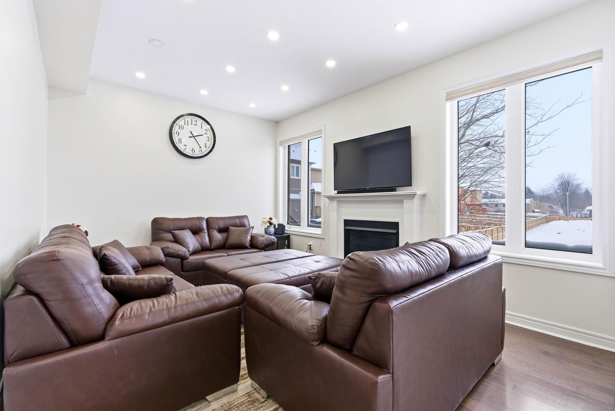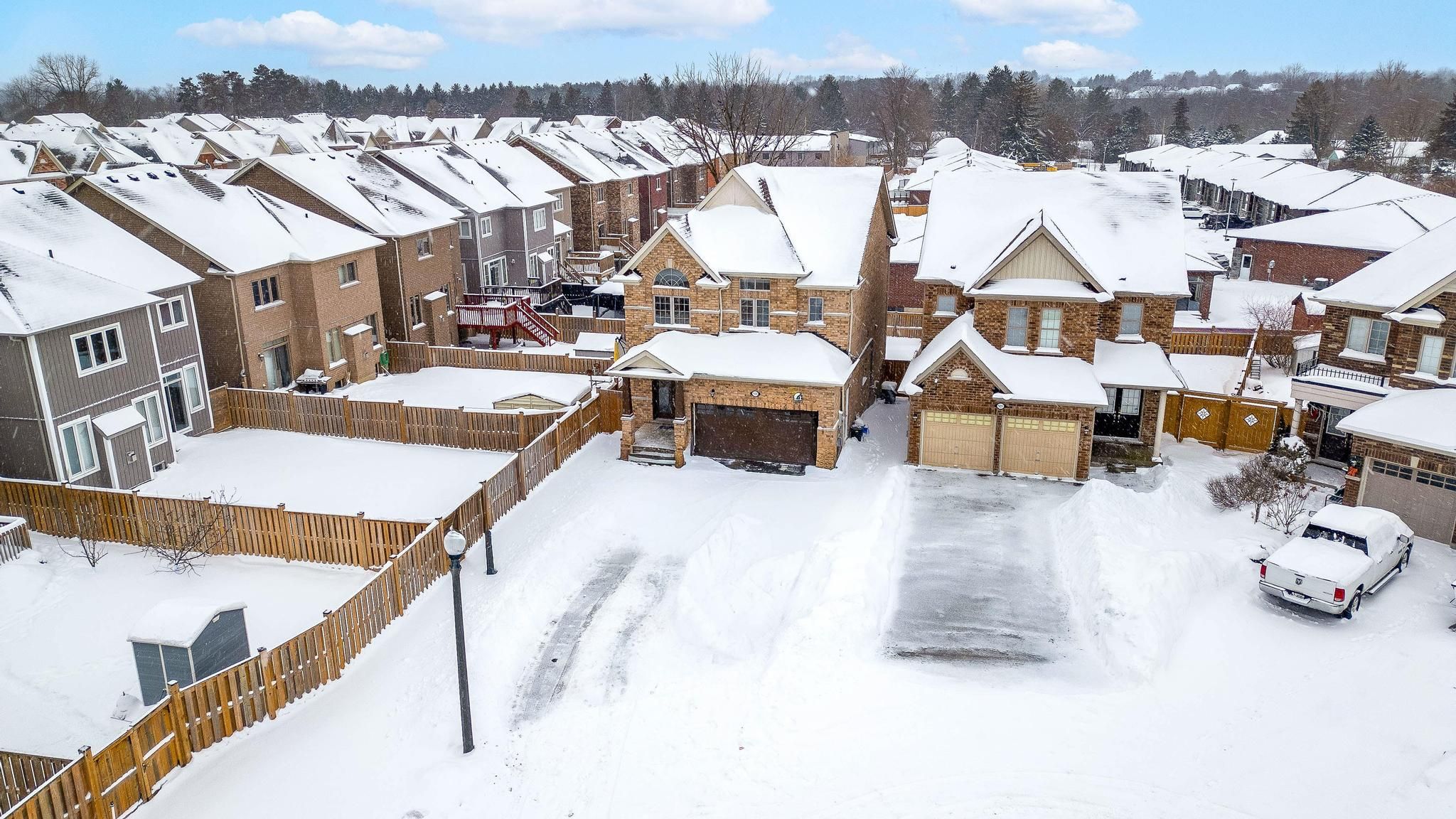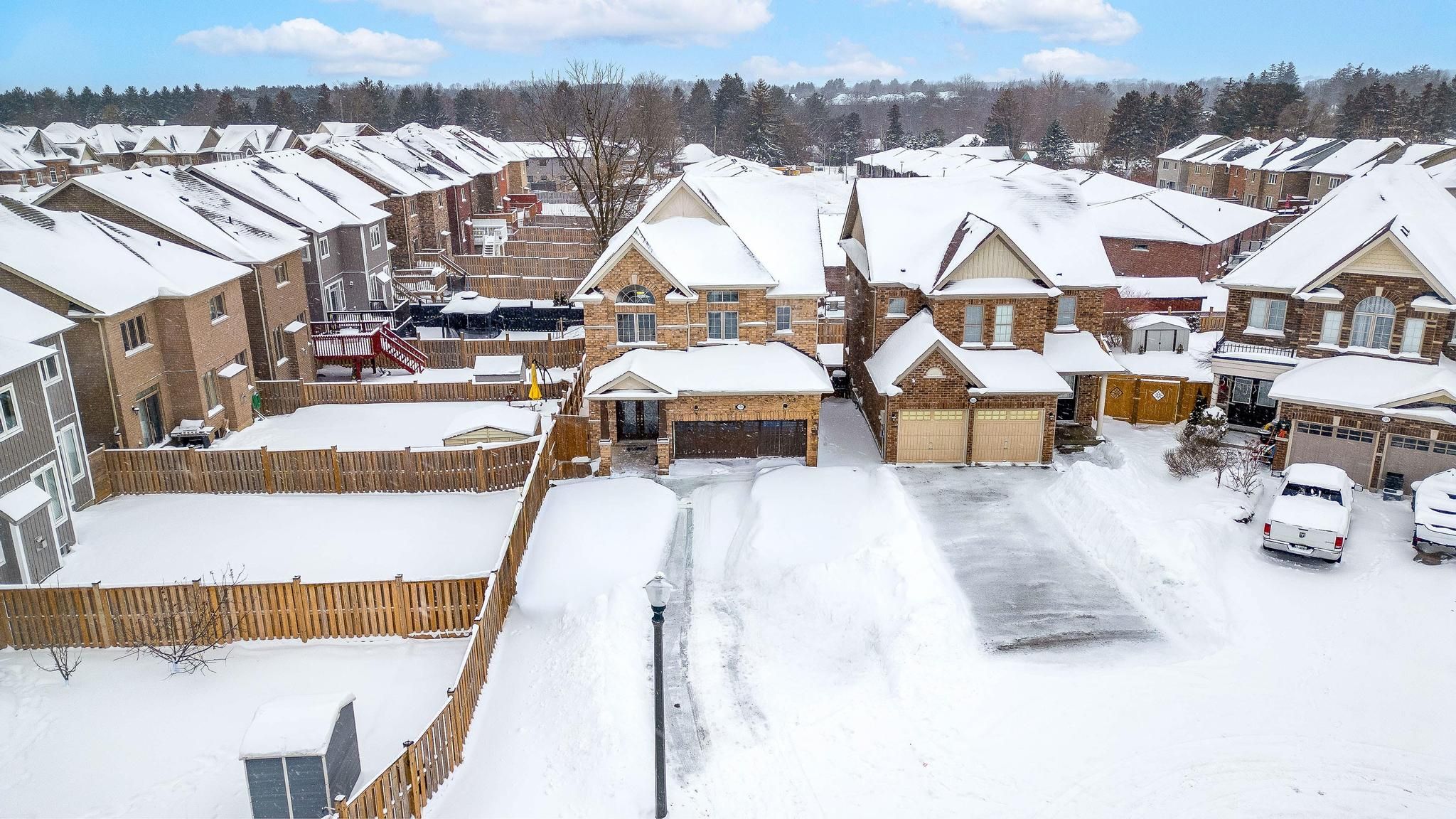 Beautiful fully bricked 2-storey home situated on a quiet cul-de-sac, featuring 4 bedrooms and2. 5 bathrooms. Modern kitchen with custom backsplash, waterfall island, and quartz countertopsin the kitchen and all bathrooms. Functional layout with separate living, dining, and familyrooms. Highlights include 9-ft ceilings on the main floor, fireplace, pot lights, oak staircasewith iron spindles, and hardwood flooring on the main level and second-floor hallway. Double-door entrance, double-car garage, and a rare 4-car driveway with no sidewalk. Unfinishedlookout basement offers excellent future potential. Must-see home.