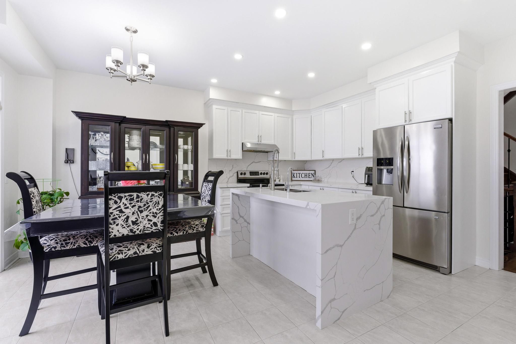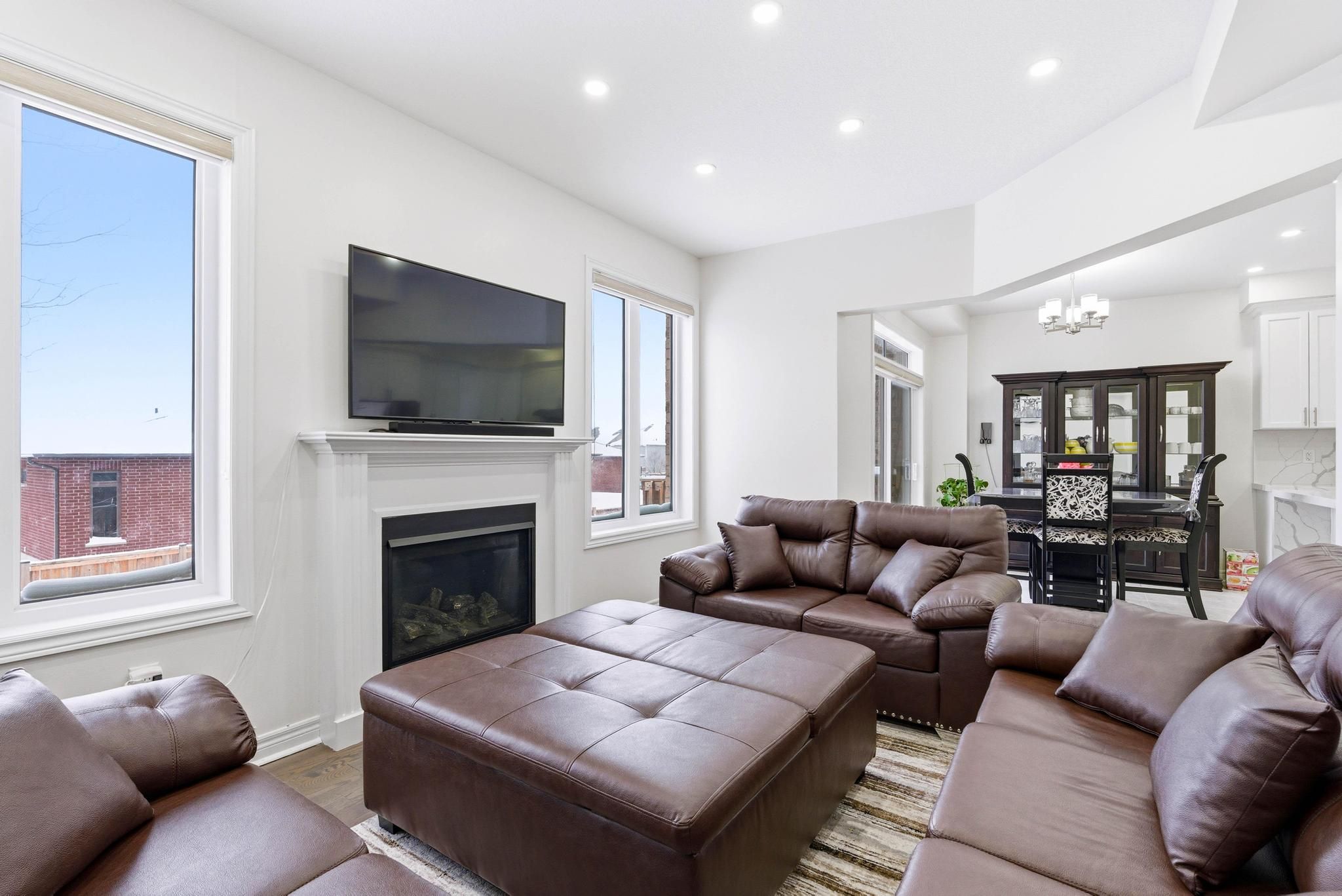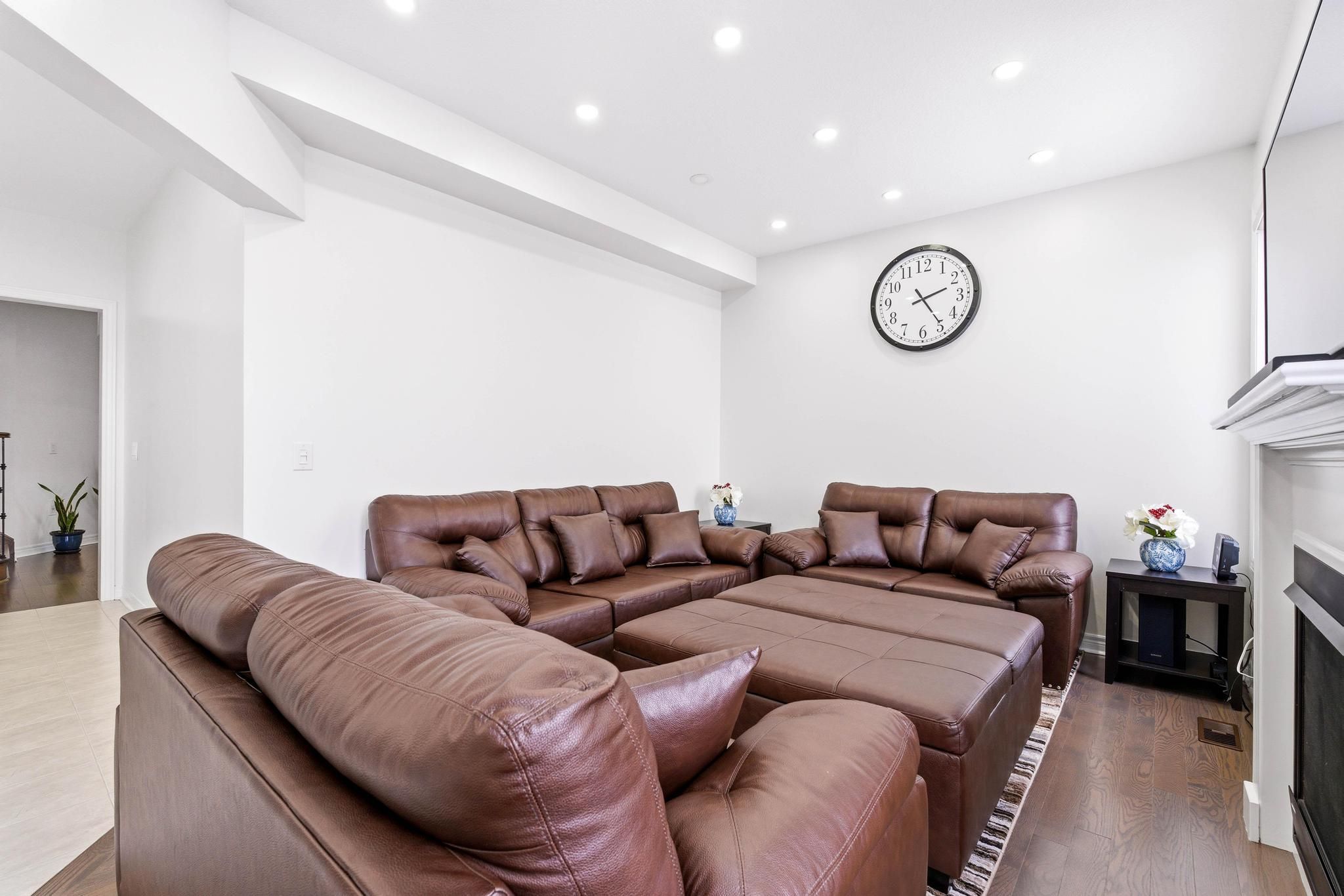 Beautiful fully bricked 2-storey home situated on a quiet cul-de-sac, featuring 4 bedrooms and2. 5 bathrooms. Modern kitchen with custom backsplash, waterfall island, and quartz countertopsin the kitchen and all bathrooms. Functional layout with separate living, dining, and familyrooms. Highlights include 9-ft ceilings on the main floor, fireplace, pot lights, oak staircasewith iron spindles, and hardwood flooring on the main level and second-floor hallway. Double-door entrance, double-car garage, and a rare 4-car driveway with no sidewalk. Unfinishedlookout basement offers excellent future potential. Must-see home.