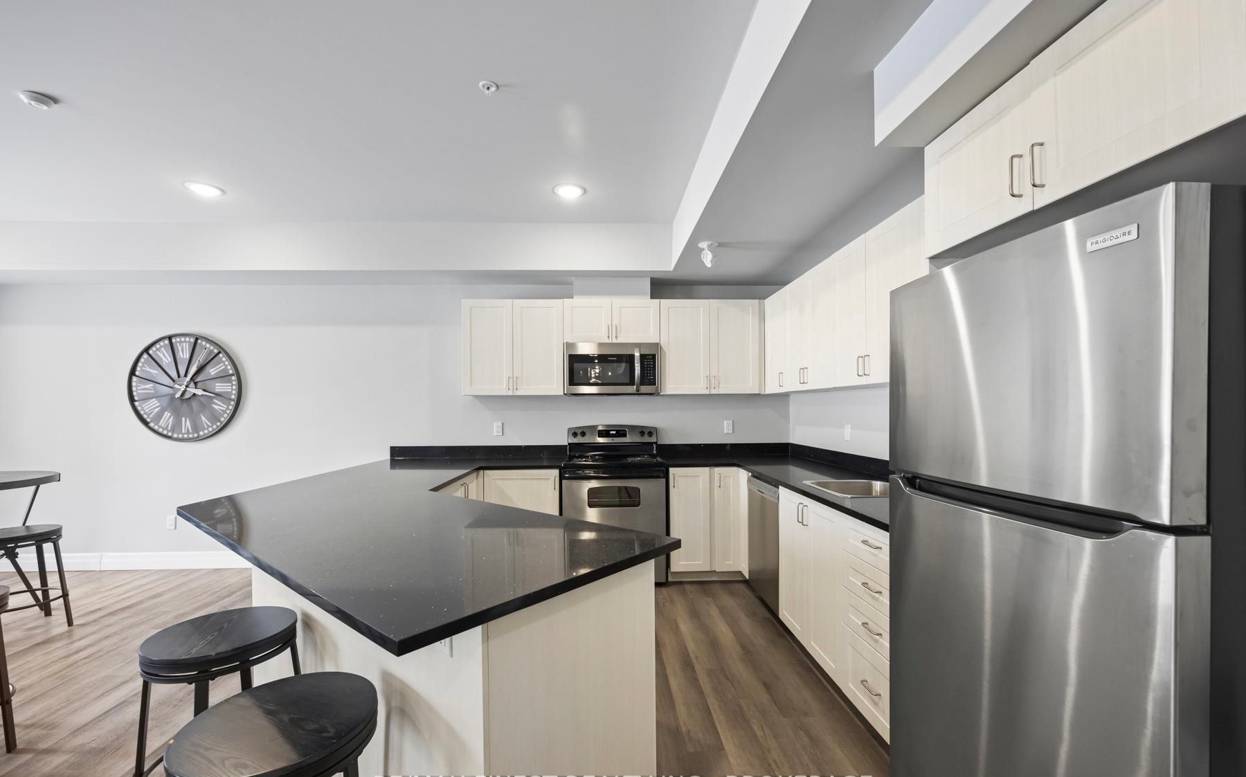 Experience contemporary urban living in the heart of kingston. This is an exceptional 2-bedroom, 1-bathroom condo suite in the frontenac condos and offers a rare combination of modern design, functionality, and unbeatable location just steps from queen's university, downtown restaurants, cafes, and kingston's waterfront. Whether you're looking for a smart investment or a comfortable home, this property checks all the boxes. Inside, you'll find an open concept layout featuring the living and dining area that allows for an abundance of natural light. A kitchen with stainless steel appliances and quartz countertops. High 9-foot ceiling a and large windows contribute to an open, airy atmosphere, while the chic functional design provides ample space in both bedrooms. The condo also features a convenient in-suite laundry, ensuring your comfort is never compromised. Residents enjoy premium building amenities including a fitness studio, rooftop terrace with bbq area, party room, keyless entry, and owned secure underground parking. Perfect for students, professionals, or investors seeking low-maintenance ownership in one of kingston's most desirable downtown addresses.