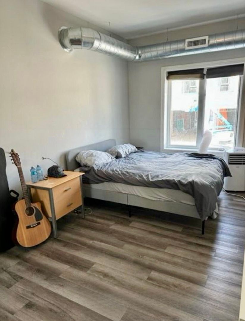 • Building amenities include a fitness studio, rooftop terrace, and party room.