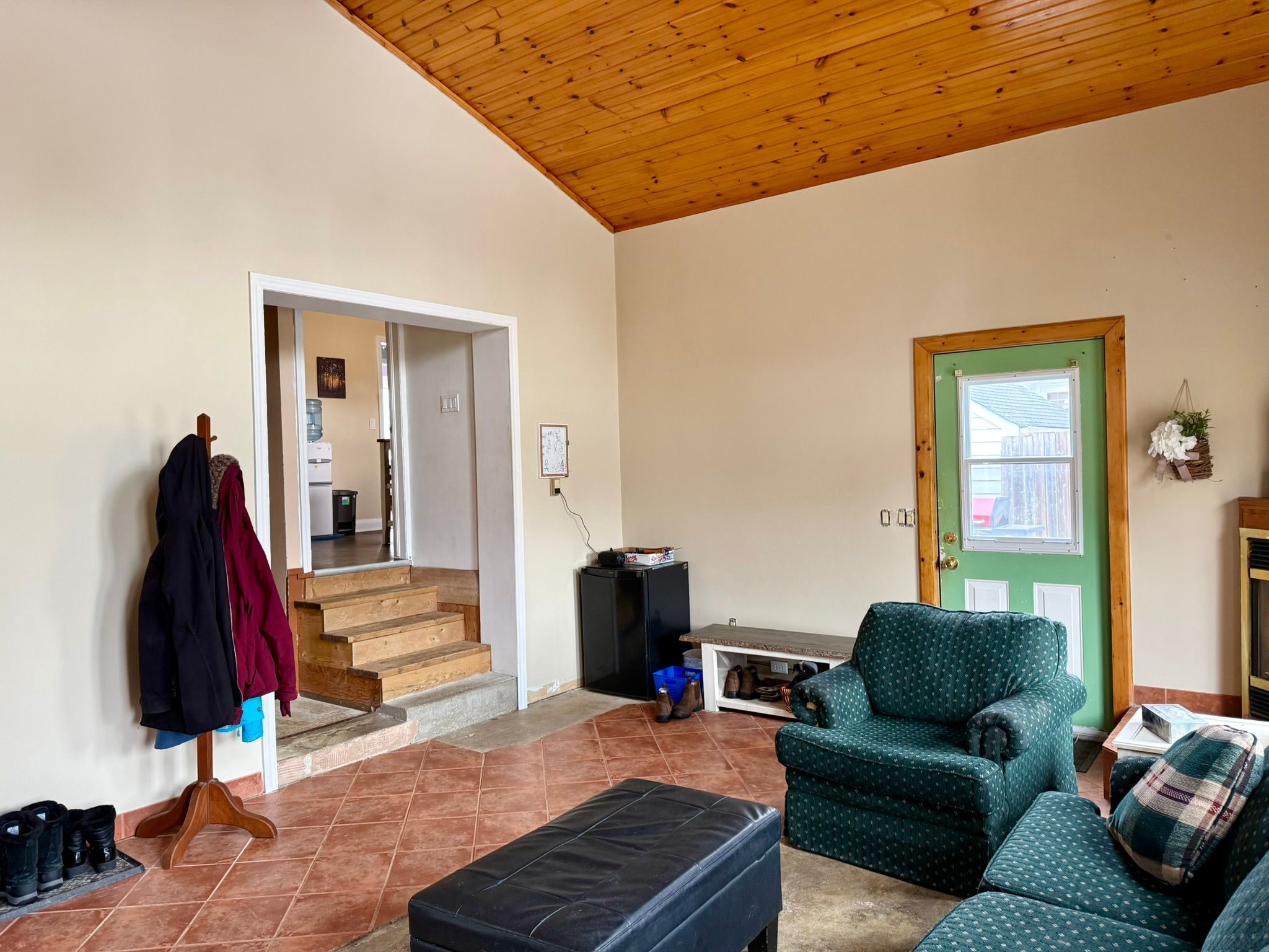 Brick bungalow featuring 2 bedrooms and numerous updates throughout. Enjoy the newer flooring that flows seamlessly throughout the home. The primary bedroom offers convenient access to a private, fenced backyard complete with a patio - perfect for relaxing or entertaining. The kitchen is well appointed with stone counter tops, double sink and ample cabinetry. The dining and living area are bright and inviting, highlighted by the built in unit in the dining and the elegant wide ceiling coving in the living room. A stand out feature is the converted garage, now a cozy family room with a beautiful pine vaulted ceiling, gas fireplace and direct access to the rear yard - ideal for gatherings or quiet evenings at home. Basement is unfinished with the exception of an area that the present owner uses as a 3rd bedroom (unsure if the window size would allow it to be a legal bedroom) forced air gas heat (2012) air conditioner (2022) some newer windows, roof shingles good (unsure of age) located 1 block to catholic high school, on bus route for other school, short walk to walkerton's downtown core. This is a perfect spot for a first time home buyer.