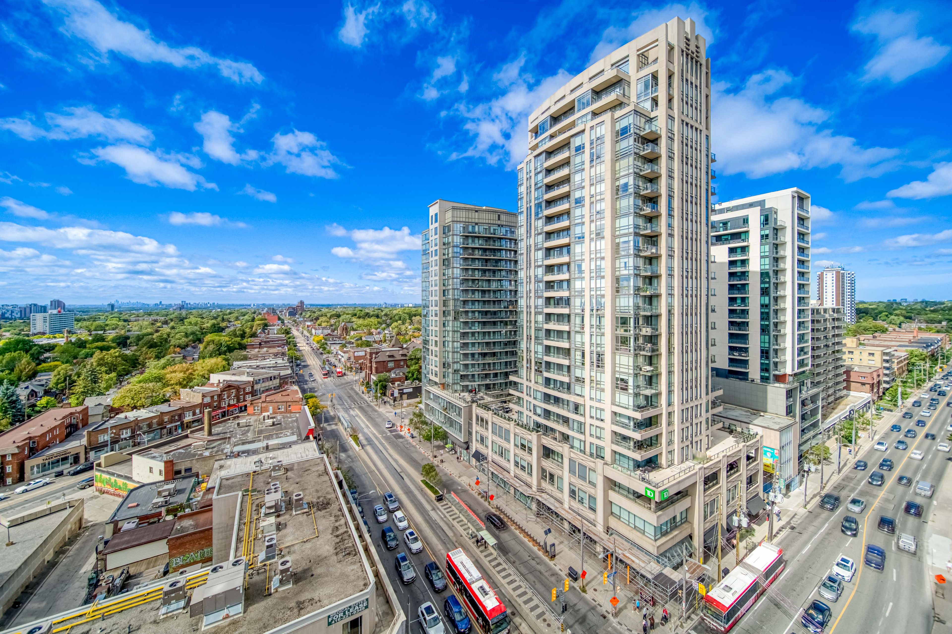 Unbeatable address with a rooftop infinity pool, just steps to ttc, loblaws, parks, and trendy restaurants. Featuring sleek custom european cabinetry with two large pantry cupboards, stone countertops, undermount stainless steel sinks, glass backsplash, and engineered wood floors throughout. Spa-inspired bathrooms with frameless glass shower, rain-style showerhead, deep soaker tub, and porcelain tile finishes. Enjoy year-round comfort with individually controlled heating & cooling. Balcony comes equipped with a gas bbq hookup. Building amenities include a rooftop pool, party room, and landscaped rooftop patio/garden.