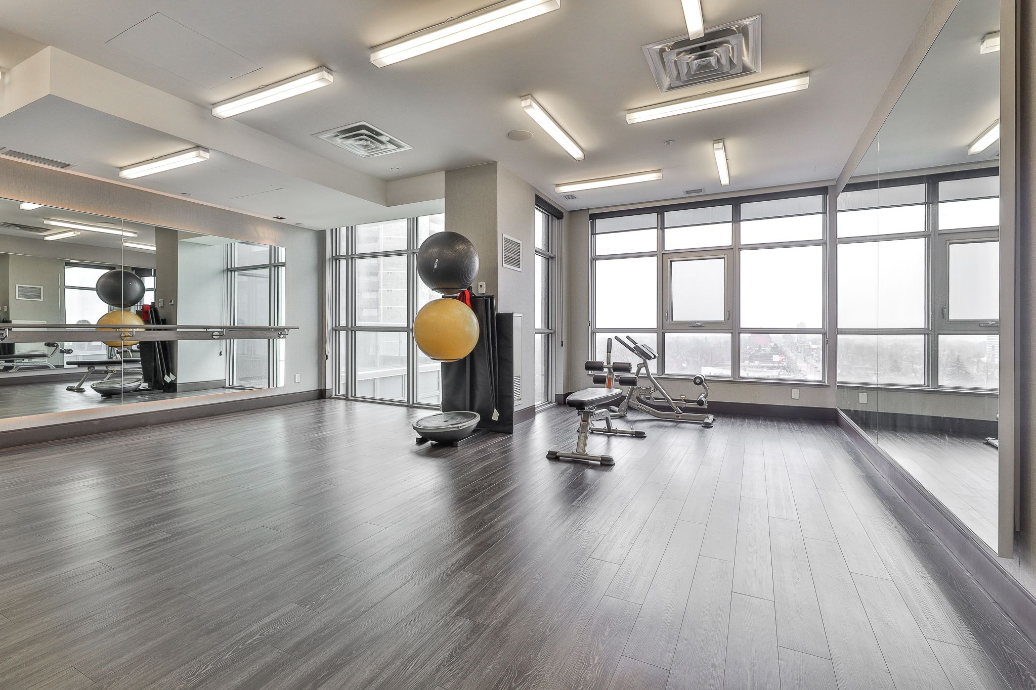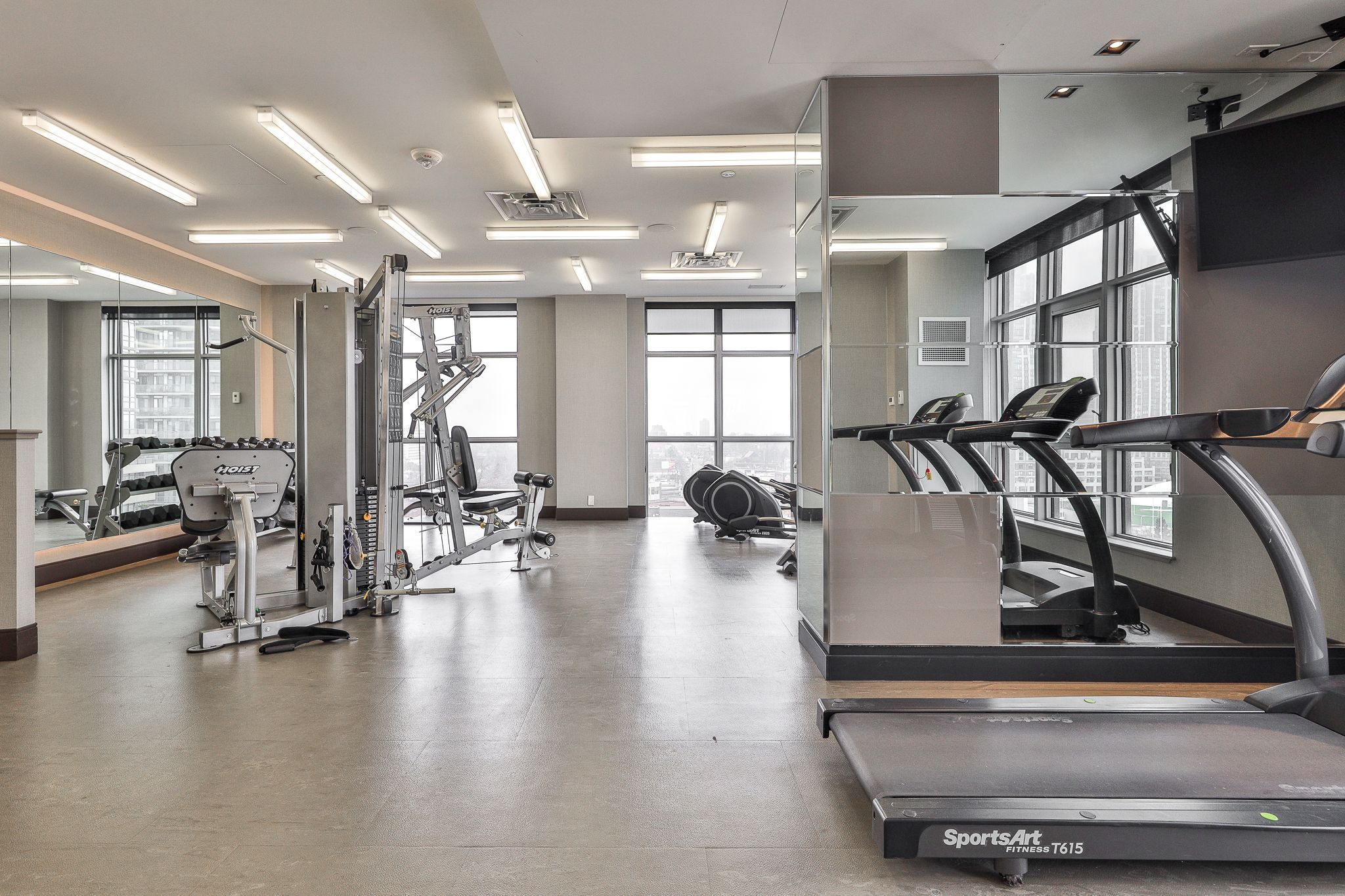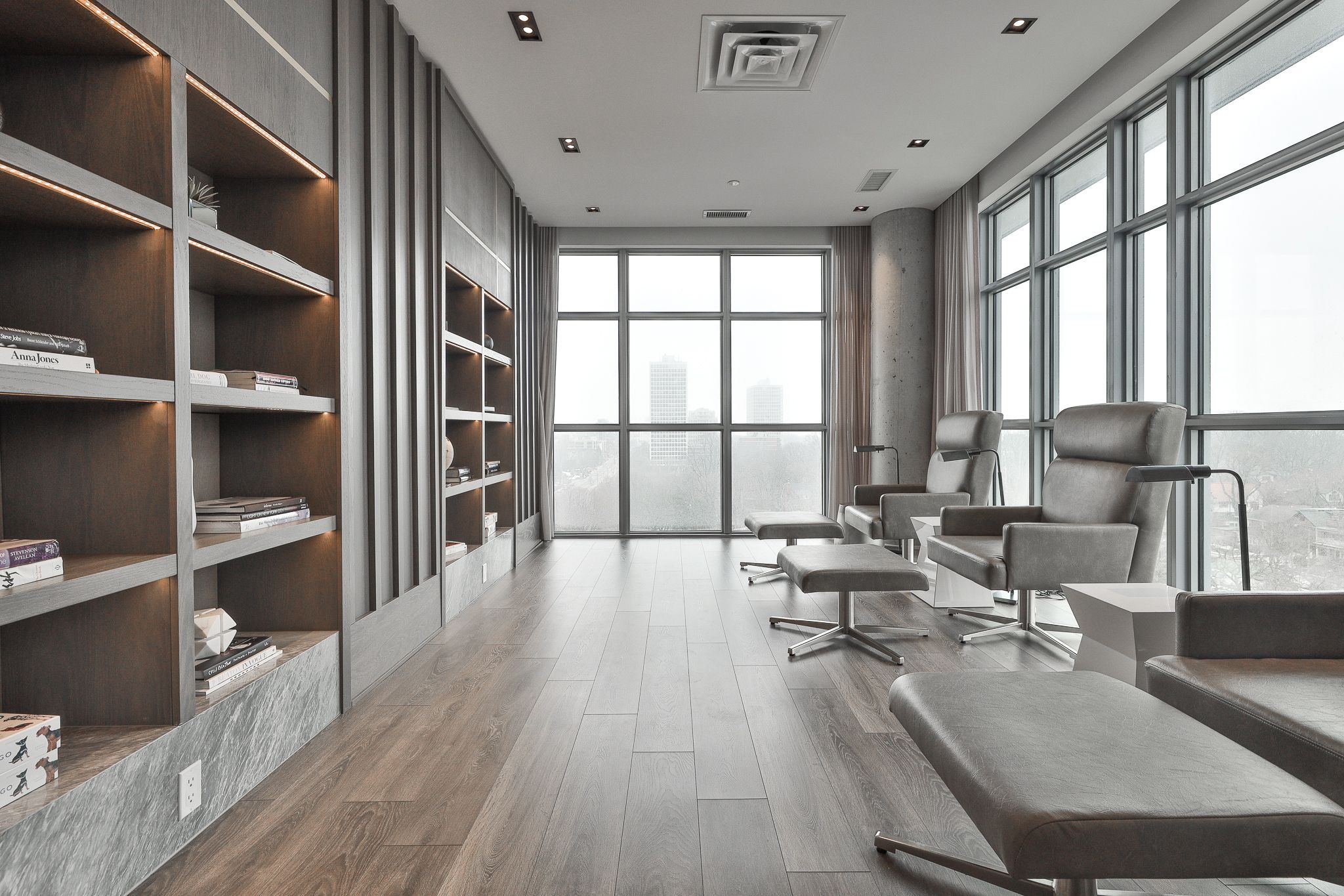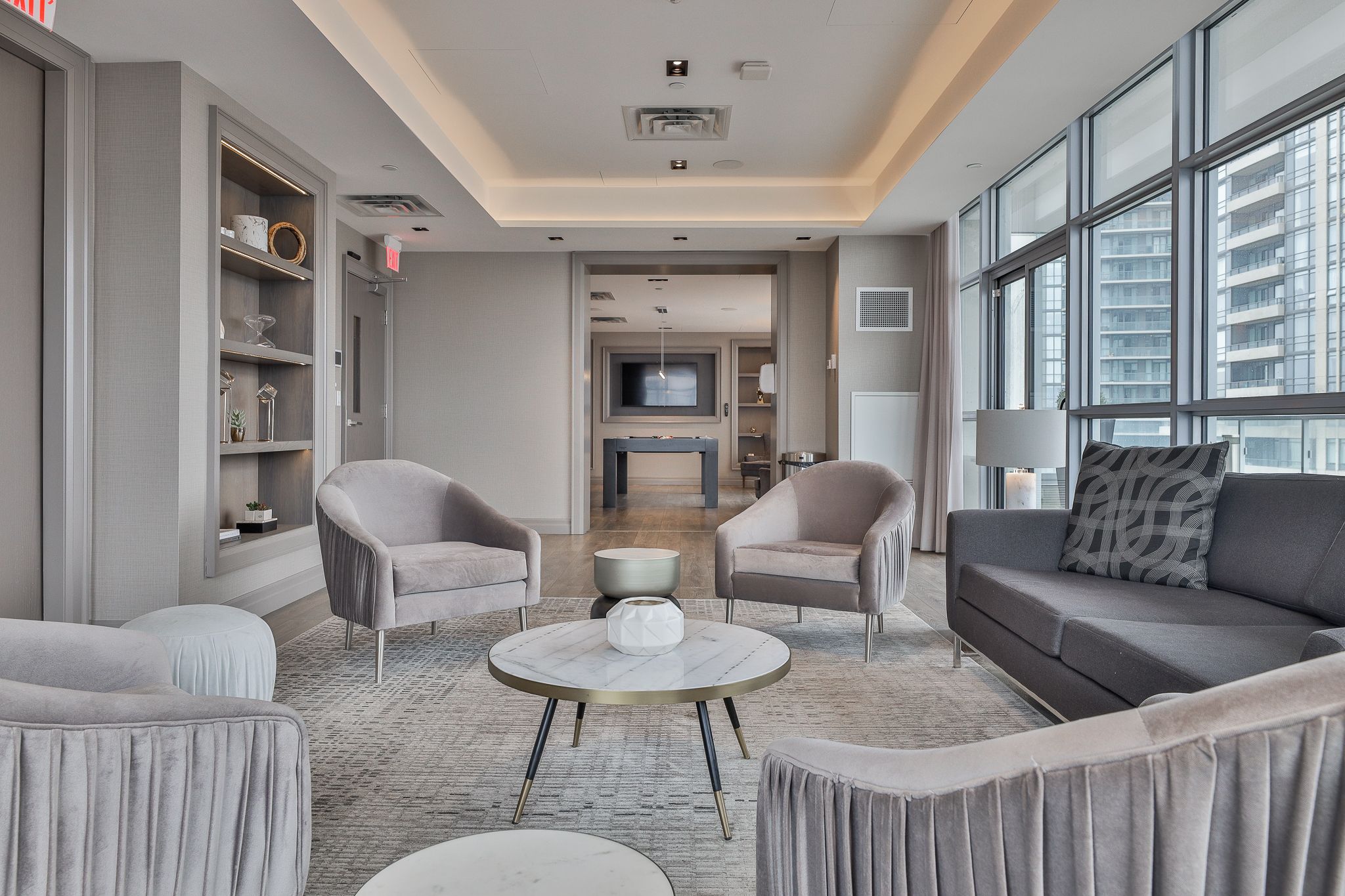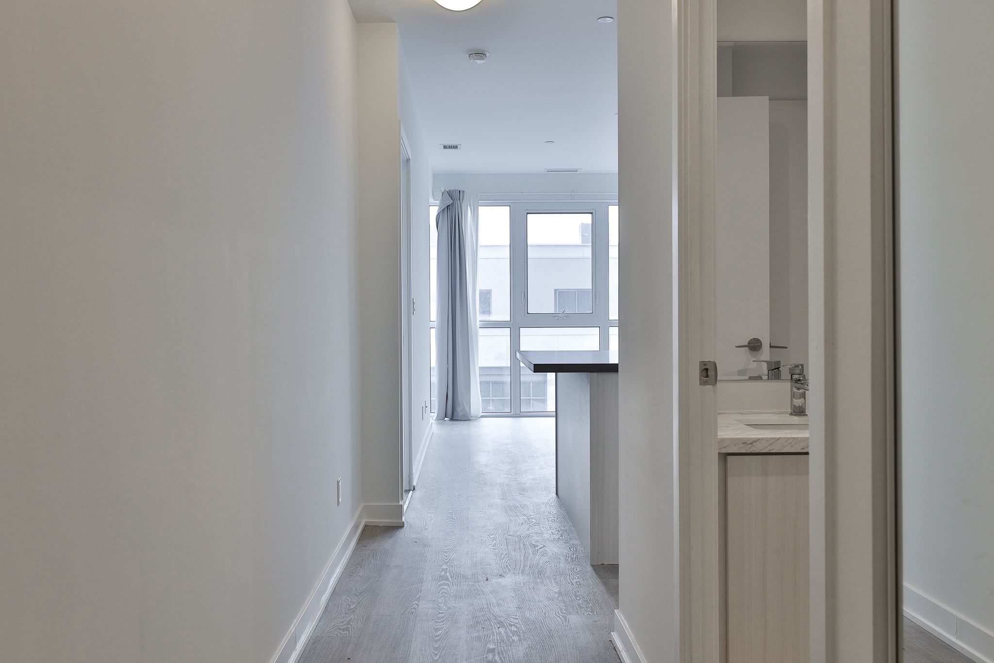 • Bright one-bedroom suite with floor-to-ceiling windows for natural light.