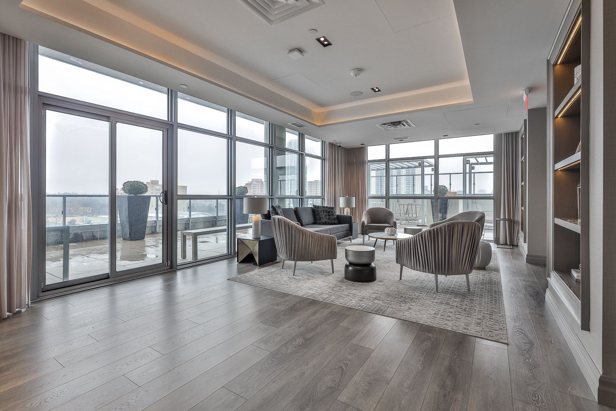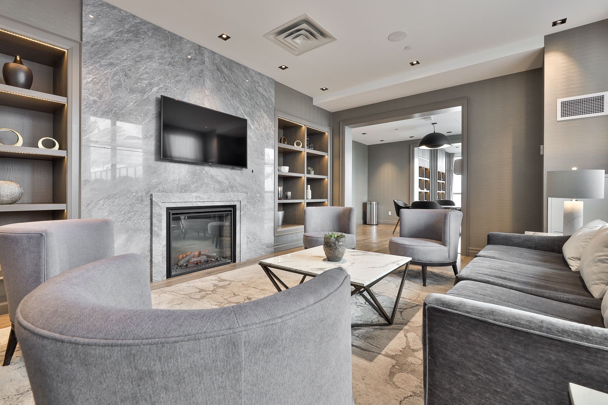 • Access to amenities like a fitness center, library, and outdoor pool.