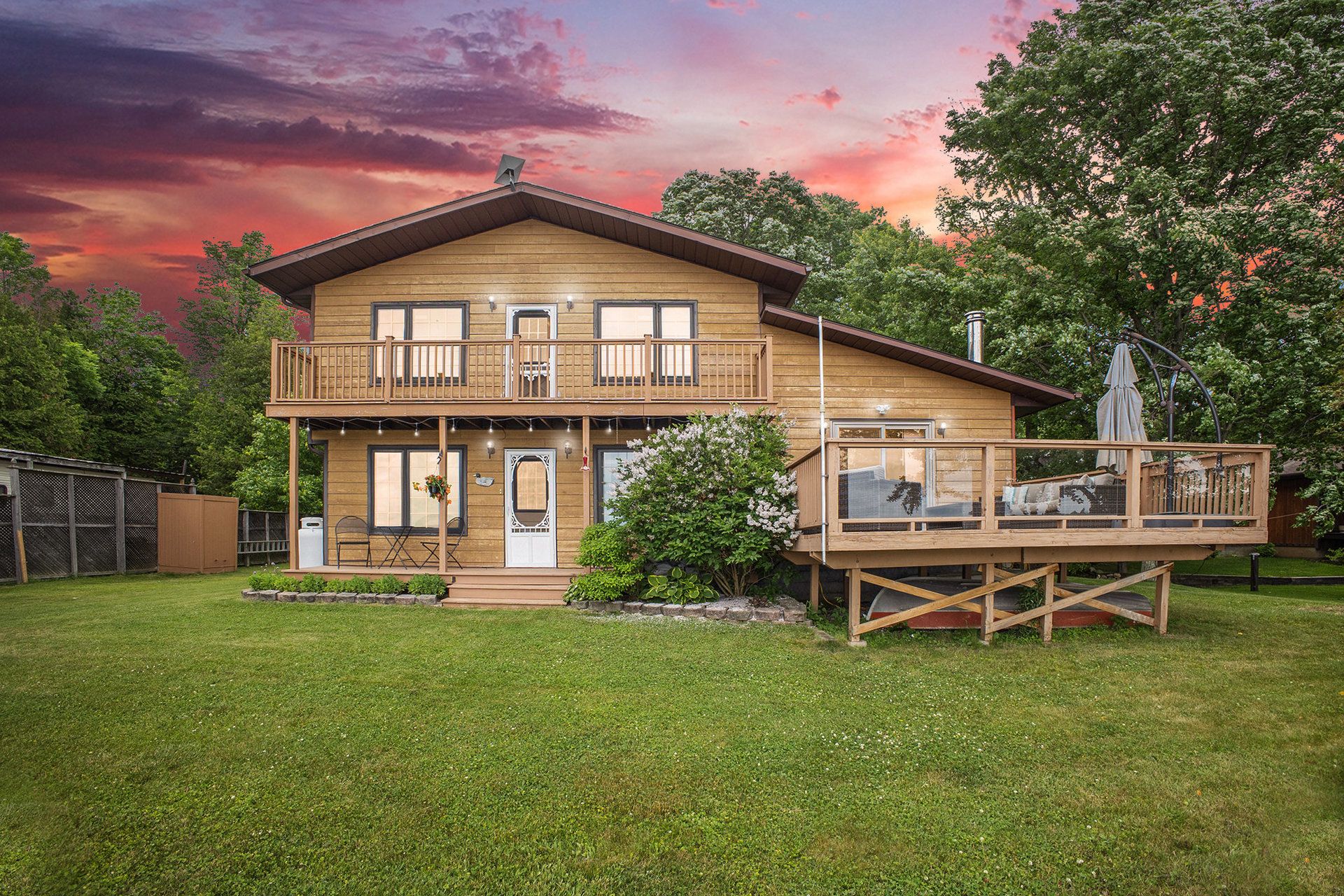Presenting 501 stewart lane: an exceptional, custom-built waterfront home on the tranquil shores of dalhousie lake. This residence maximizes its stunning location, offering breathtaking lake vistas from both the main and upper levels. Entertain effortlessly on the massive 16'x16' deck, perfect for large gatherings, or unwind with a drink, enjoying the cool lake air and spectacular sunsets. Upon entry, the bright, open-concept kitchen and dining areas invite you in. The dining space features a warm woodstove for chilly evenings and opens to a sheltered covered deck with beautiful lake views. The functional kitchen boasts substantial storage, ample counter space, and modern stainless steel appliances. Adjacent is the spacious living room, with sliding doors leading to the oversized lake-facing deck and a smaller backyard deck. A stylish three-piece bathroom is conveniently located on the main floor. Upstairs, the private primary bedroom offers exclusive access to a balcony with inspiring lake views. This level is completed by two additional bedrooms and a renovated four-piece bathroom that includes laundry facilities. The lower level offers an expansive family room with a cleverly integrated murphy bed for guests, a vast utility/storage area, and a walk-out exit. Outside, a thoughtful, self-contained outdoor shower, supplied with both hot and cold water, is a unique convenience. The property includes a one-car garage with a versatile, fully insulated and powered loft, perfect for a home office or potential rental, featuring its own water-view balcony. A private boat ramp provides effortless access to the lake. This is the truly exceptional waterfront property you've been searching for.