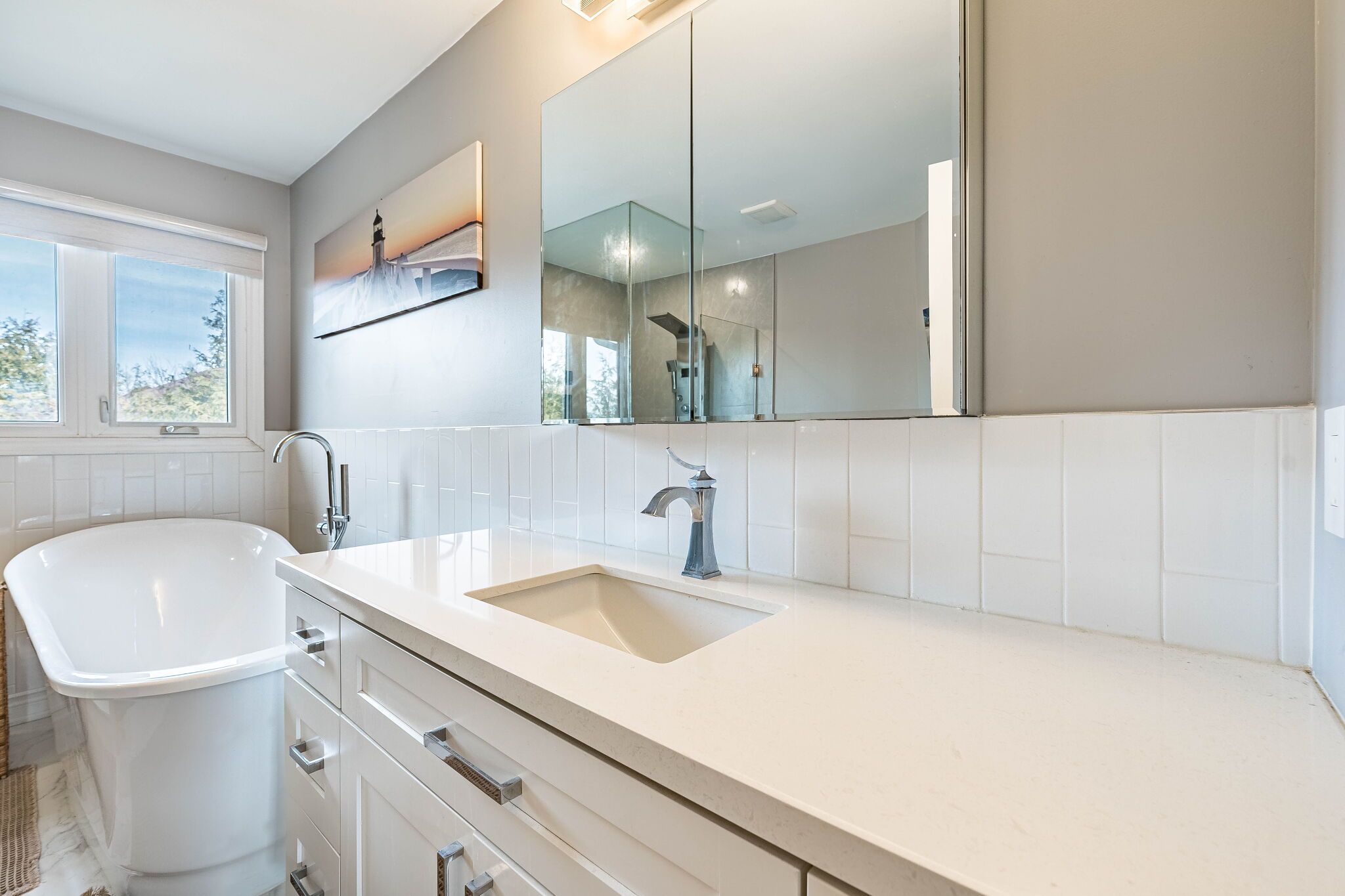 • Sun-filled family kitchen with high-end finishes and backyard access.