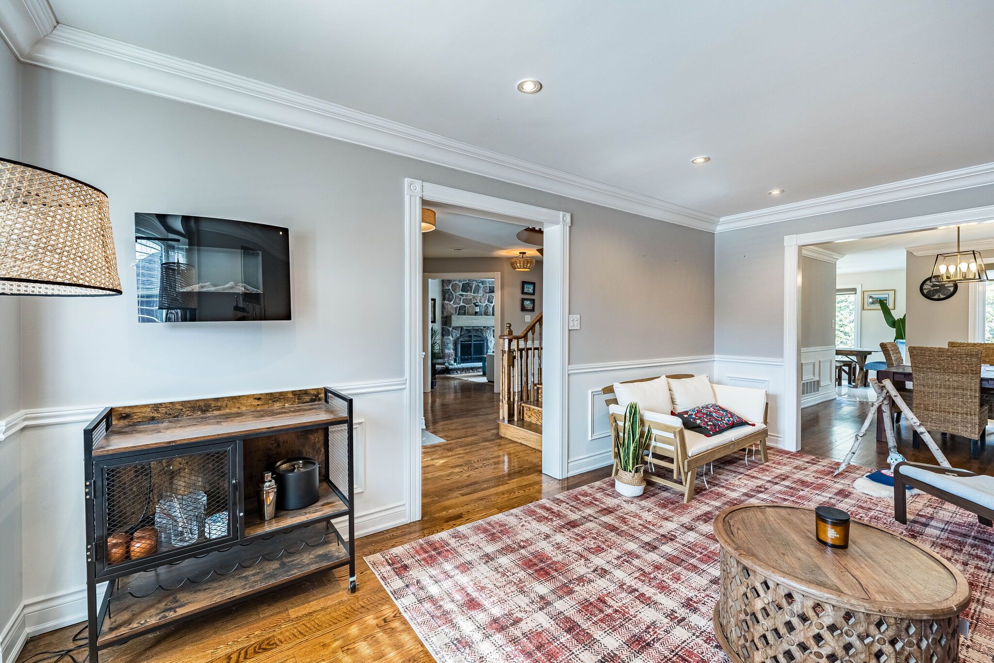 Welcome to 501 sundown crescent, where traditional elegance meets modern functionality. 2 storey all brick home loaded with elegant upgrades and located on a quiet family friendly street. The updated, sun filled family sized kitchen is equipped with high end finishes including designer cabinetry, granite counter tops, stainless steel appliances, built-in wine fridge, pot lights and a walkout to the private backyard oasis. Hardwood flooring, crown moulding and wainscotting throughout main floor. Separate formal family room overlooking backyard with natural stone wood burning fireplace. Combined living/dining offers the perfect space to entertain, main floor updated laundry room with inside access to garage and separate side door entrance. The primary bedroom retreat offers a walk-in closet and updated, spa like bathroom including a seamless glass shower and free standing soaker tub. Updated main bathroom, great sized bedrooms and loads of closet space. Fully finished basement with second family/rec. Room, natural gas fireplace, pot lights, large cold room/cantina and additional storage space. Enjoy warm summer nights in the fully private backyard which includes an integrated deck, hot tub with gazebo and matures hedges for added privacy. Exterior sprinkles system, updated light fixtures and window covering throughout. Full double car garage and 4 car driveway, no sidewalk. Great location with easy highway access, minutes to shopping, public transits, schools, parks and restaurants.