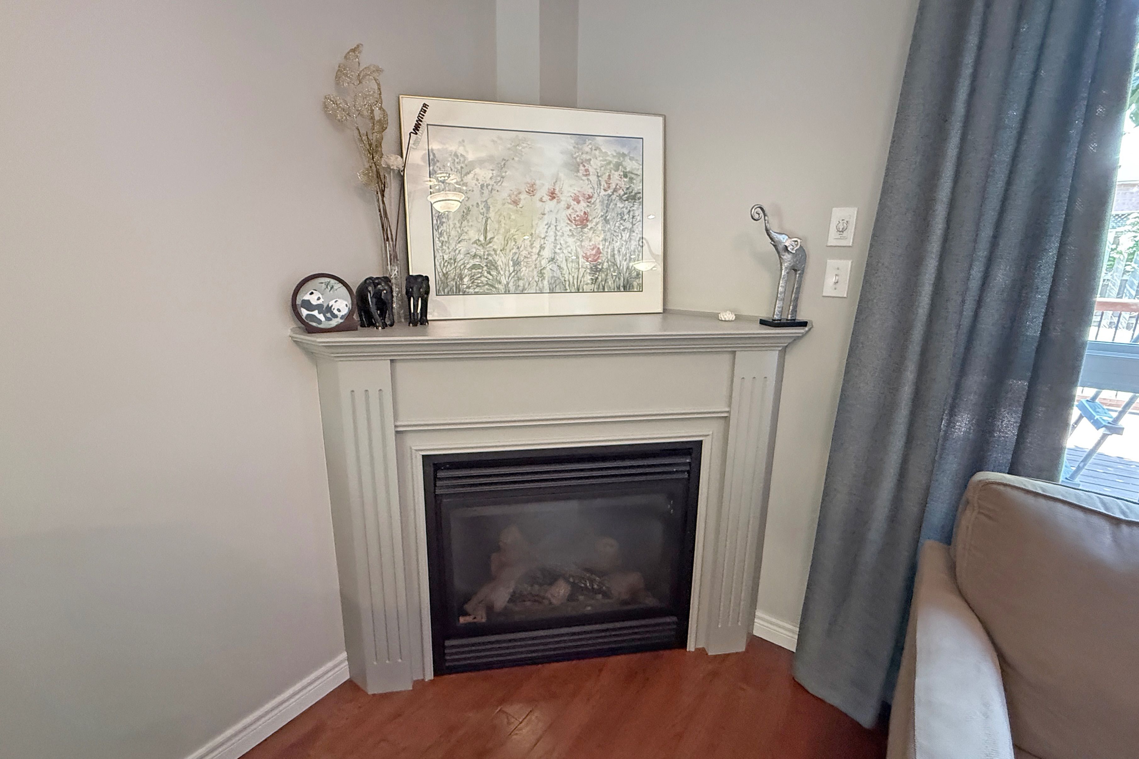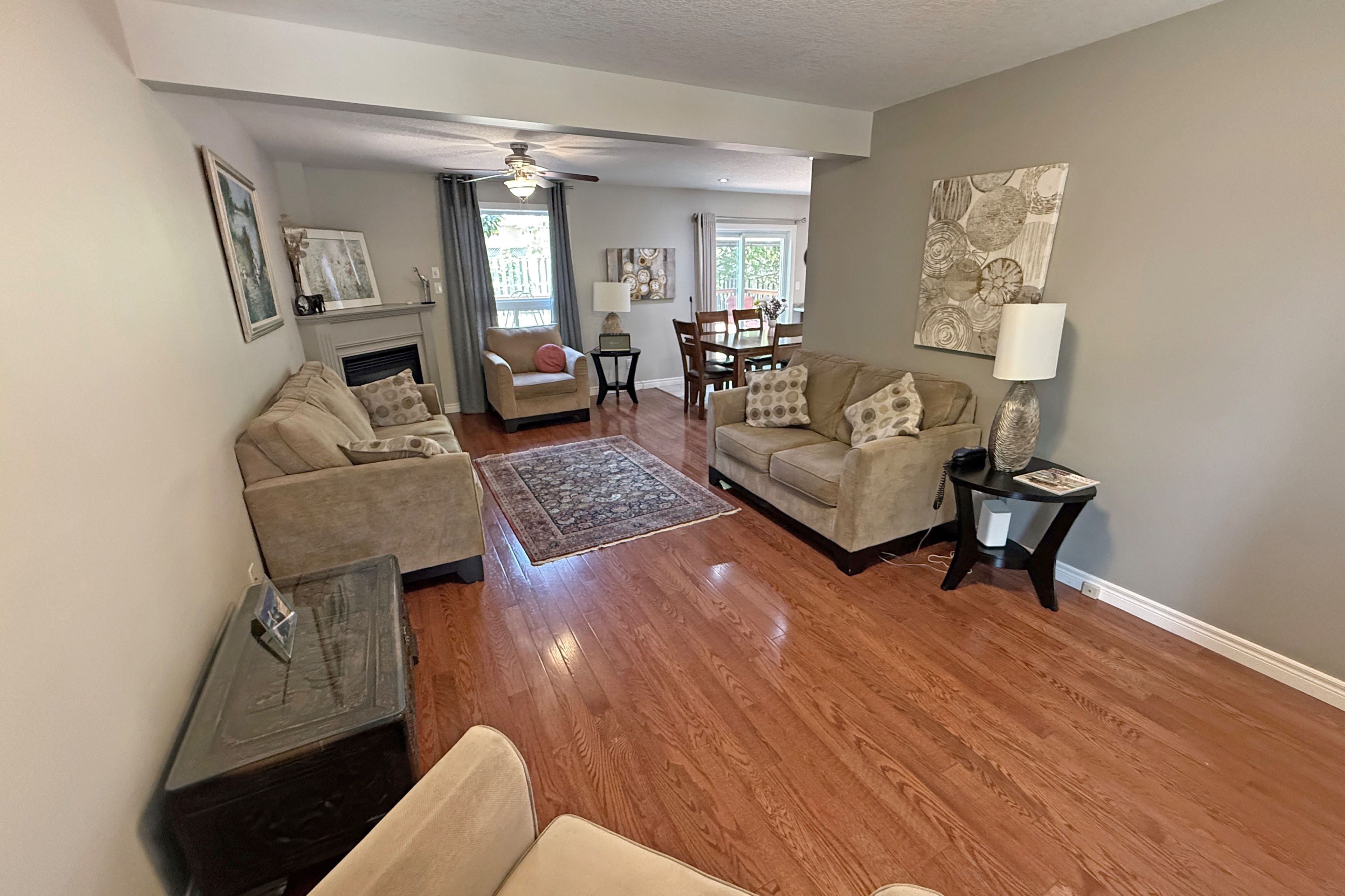 • Spacious living room with a cozy gas fireplace for relaxing.