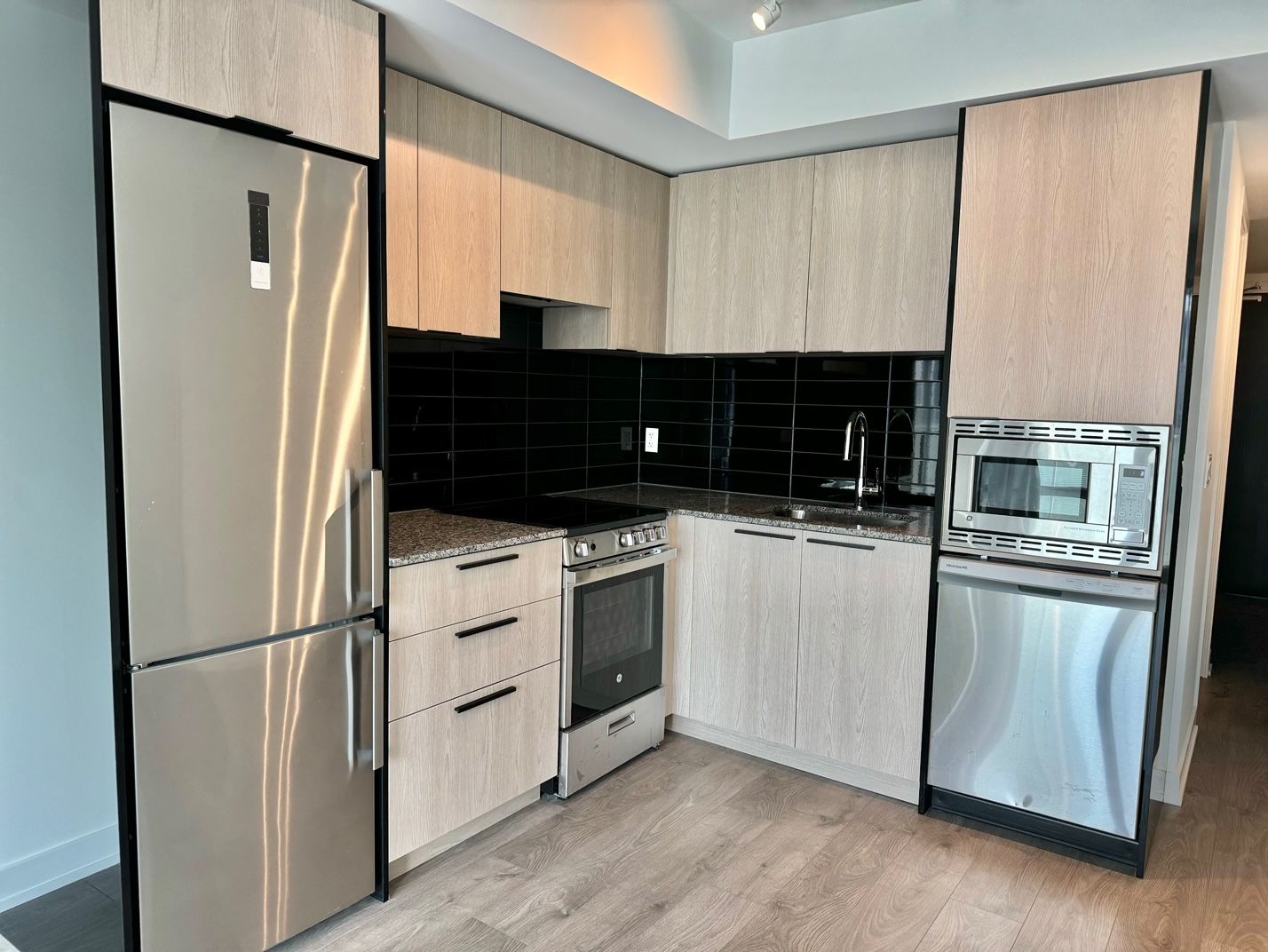 • Modern kitchen with stainless steel appliances for convenience.