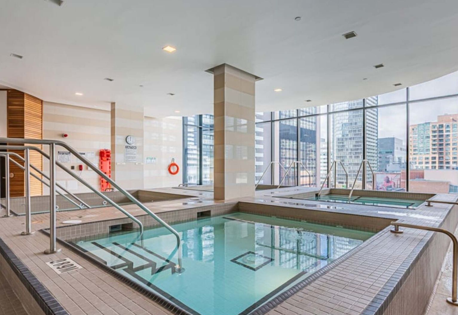 Luxury teahouse condo, located in downtown core area, bright prestigious 2 bed 2bath+ study corner unit with unobstructed south east view, 9ft ceiling, modern kitchen, s/s appliances, two w/o balconies in each sides, interior area over 800 sqft, one parking included. Walk score 99/100,steps to subway station, uoft, ryerson university, shops, restaurants, groceries, banks. Great amenities: fitness, lounge, yoga room, outdoor pool, 24hr concierge & more.