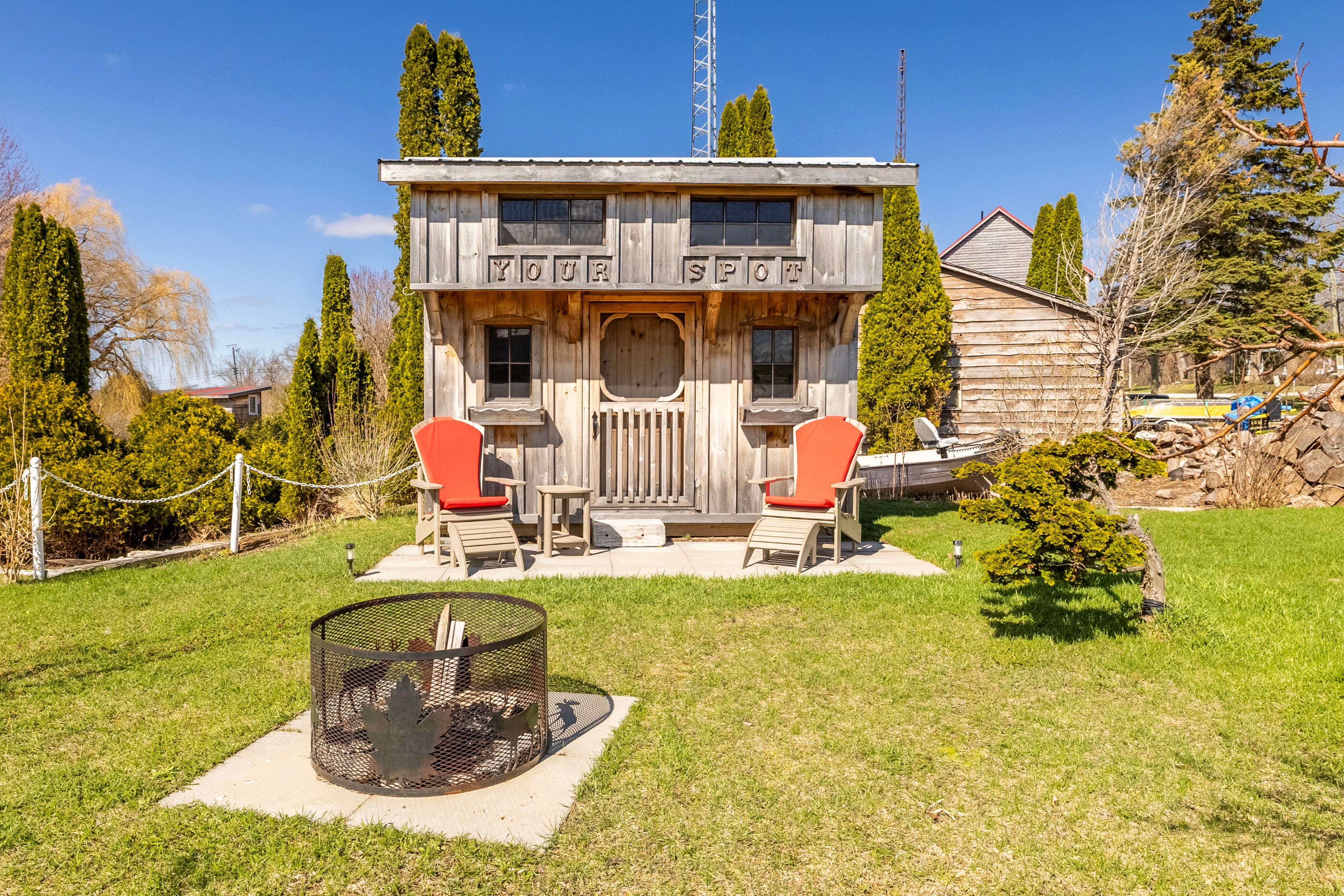 Steeped in history and re-imagined for modern living, this extraordinary 3-storey home in the charming village of oxenden offers a rare opportunity to own a truly one-of-a-kind property with breathtaking views of georgian bay. Originally constructed in 1874 as a church, later home to the women's institute, this remarkable building underwent a complete transformation between 2005 and 2015. Taken back to the studs and rebuilt with meticulous attention to detail, the overhaul included lifting the structure, pouring a new concrete foundation, and thoughtfully redesigning every inch from the ground up. The result is a stunning 5-bedroom, 5-bathroom residence that seamlessly blends historic character with modern comfort. The bright and spacious main floor features an abundance of oversized windows, filling the home with natural light, along with a convenient 4-piece bathroom and main floor laundry. Upstairs, the second level hosts an impressive primary suite complete with a luxurious 5-piece ensuite and captivating water views, along with two additional bedrooms and a 3-piece bath. The third floor continues to impress with two more bedrooms, a 4-piece bathroom, and a versatile sitting area or rec room, perfect for relaxing or entertaining. Adding even more flexibility, the lower level includes a self-contained bachelor granny suite with its own private side entrance, kitchen, 3-piece bathroom, separate laundry, and ample storage-ideal for extended family, guests, or potential rental income. Set on a beautiful lot, the property offers a peaceful outdoor setting with mature apple and pear trees, black currants, and a charming 8' x 12' bunkie. Municipal water and natural gas services are in place, and in-floor heating throughout the basement, main floor, and third level ensures year-round comfort. This is a truly special home where history, craftsmanship, and lifestyle come together-an absolute must-see to fully appreciate all it has to offer.