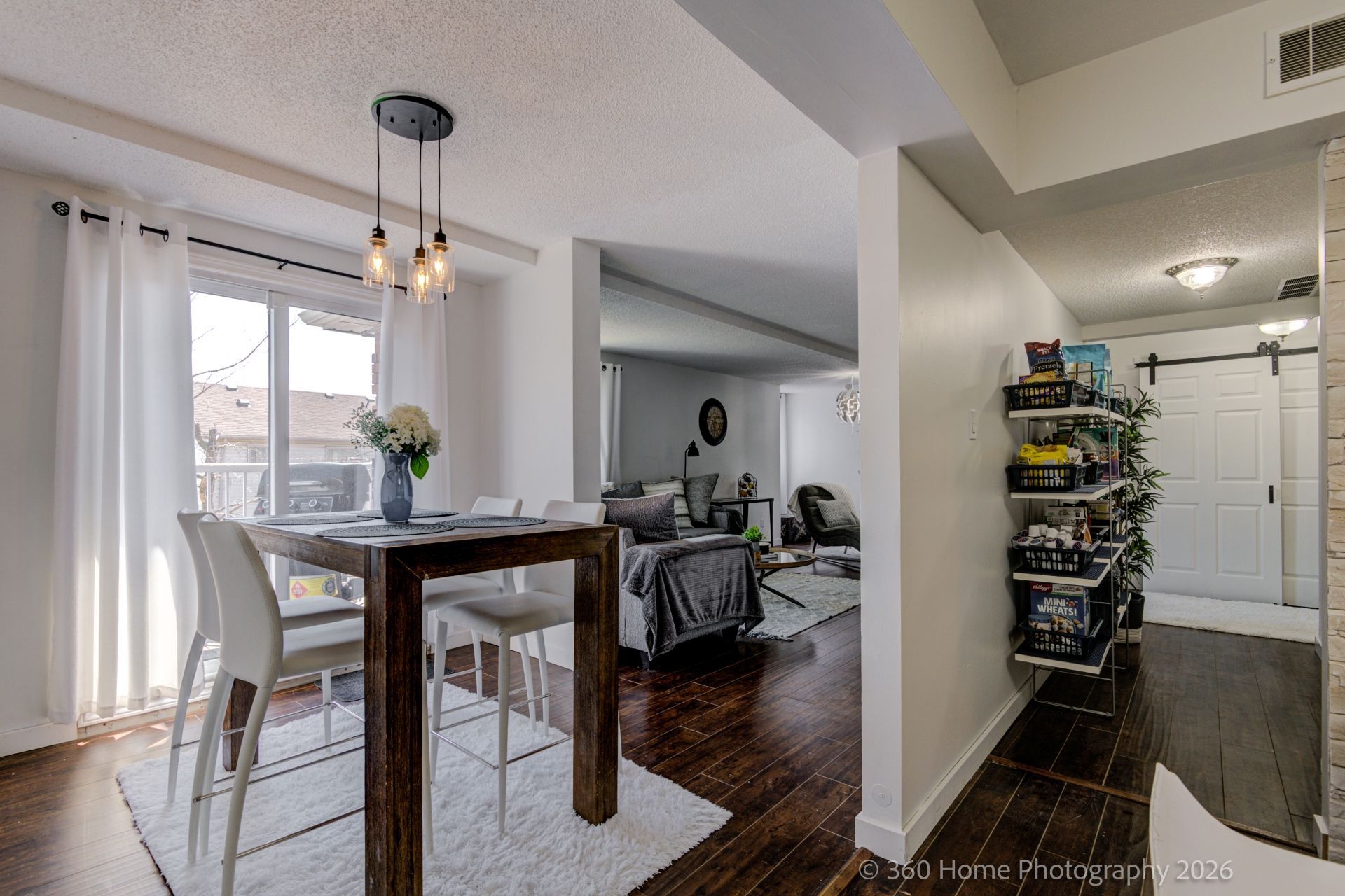 Attention first-time buyers, military moves & downsizers - ""this home can be purchased furnished "" quick closing possible this one's for you! From the moment you step inside this modern, bright, and freshly painted townhome, you'll feel right at home. The stunning kitchen is sure to impress with its granite countertops, centre island, and stainless steel appliances - a true wow factor that sets the tone for the rest of this beautifully maintained home. The kitchen flows seamlessly into the dining room, which opens through sliding doors to your private balcony - the perfect spot to fire up the bbq and enjoy warm evenings outdoors. The dining room leads into a spacious living room complete with a cozy electric fireplace, making it the ideal place to relax and unwind. Upstairs, you'll find three generously sized bedrooms, including a primary suite with two closets. All bedrooms feature laminate flooring, bright windows, and ample closet space. The main bathroom offers a luxurious jetted tub for those days when you just need to decompress. A dedicated laundry room with stackable washer and dryer, laundry tub, and extra storage rounds out the main level beautifully. Comfort is covered year-round with a gas furnace and central air conditioning, and there's plenty of space for your furry family members too. All appliances are included - just move in and enjoy! Your condo fees cover internet, cable, water, building insurance, common elements, snow removal, grass cutting, garbage disposal, and one parking spot - making this an exceptional value with true peace-of-mind living. Ideally located just minutes from hwy 400, shopping, restaurants, and barrie's beautiful waterfront, this home truly has it all. Don't miss your opportunity - homes like this don't last long!