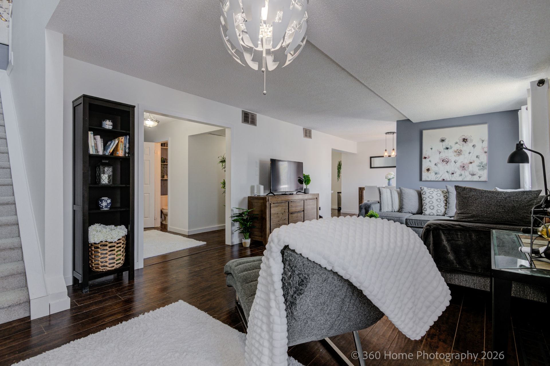 • Modern townhome with a bright and freshly painted interior.