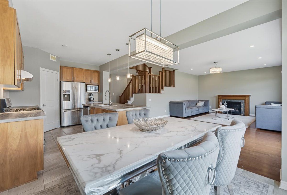 Welcome to 502 strasbourg street in orleans, a beautiful and spacious family home offering over 3,000 sq. Ft. Of living space, 4+1 bedrooms, 4. 5 bathrooms, and a main floor den, thoughtfully designed to combine comfort, functionality, and style. Step inside to a bright and open main floor where 9-foot ceilings, hardwood, and tile flooring set the tone. The formal living and dining rooms provide a welcoming space for entertaining, while the heart of the home is the gorgeous kitchen. With rich wood cabinetry, a large eat-in island, elegant backsplash, stainless steel appliances, and a corner pantry, its the perfect blend of style and practicality. The adjoining eating area is filled with natural light and overlooks the backyard, opening seamlessly to the family room with its cozy gas fireplace a true gathering place for family and friends. A private main floor den makes working from home a breeze, and a powder room plus a generous mudroom, with inside access to the double garage, add everyday convenience. Upstairs, the primary retreat offers a spacious walk-in closet and a luxurious 5-piece ensuite complete with a soaker tub, separate shower, and double vanity. Three additional bedrooms provide plenty of space for family, one featuring its own ensuite, while a full bathroom and a large, well-appointed laundry room ensure comfort and practicality. The fully finished lower level extends the living space with a spacious recreation room perfect for a home theatre, games area, or gym. An additional bedroom, a full bathroom, and abundant storage make this level as functional as it is versatile. Situated in a sought-after orleans neighbourhood, this home is just minutes from parks, schools, shopping, and public transit, making it an ideal choice for families who value space, style, and convenience. Some photos virtually staged.