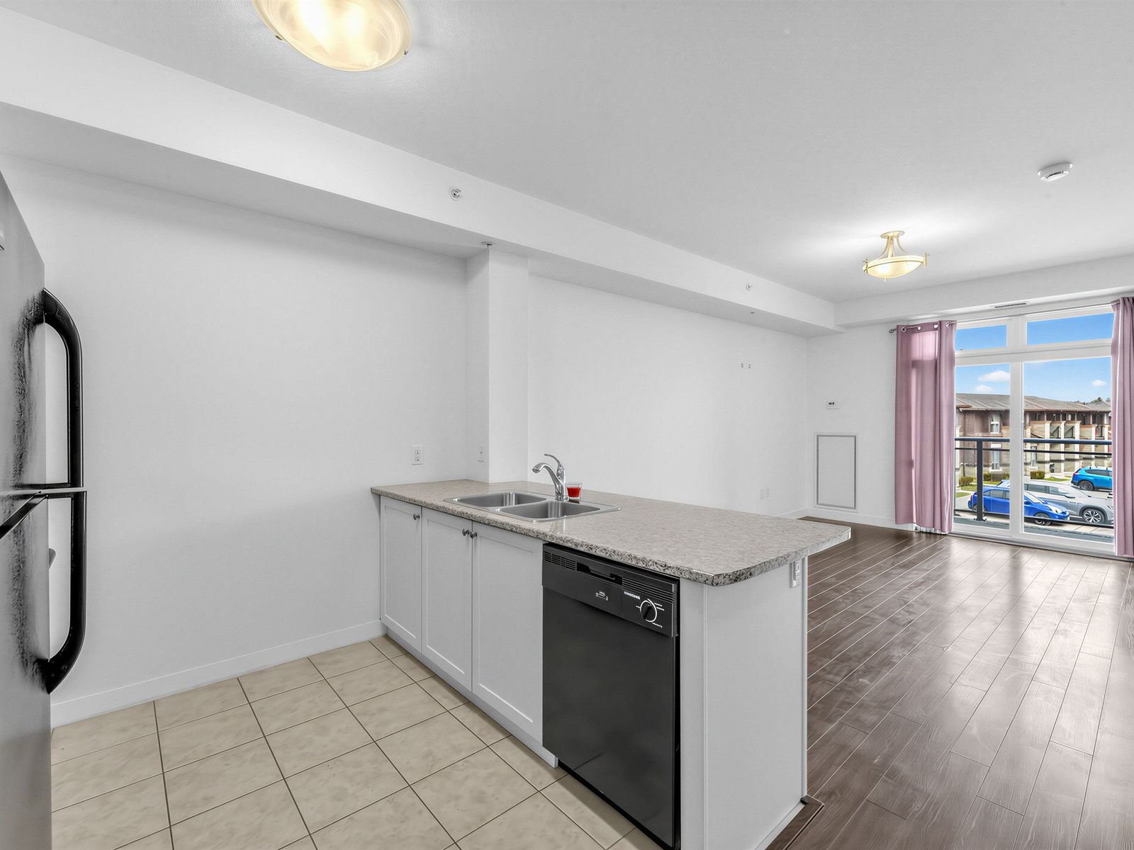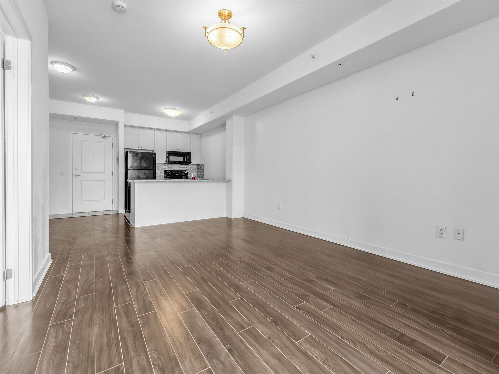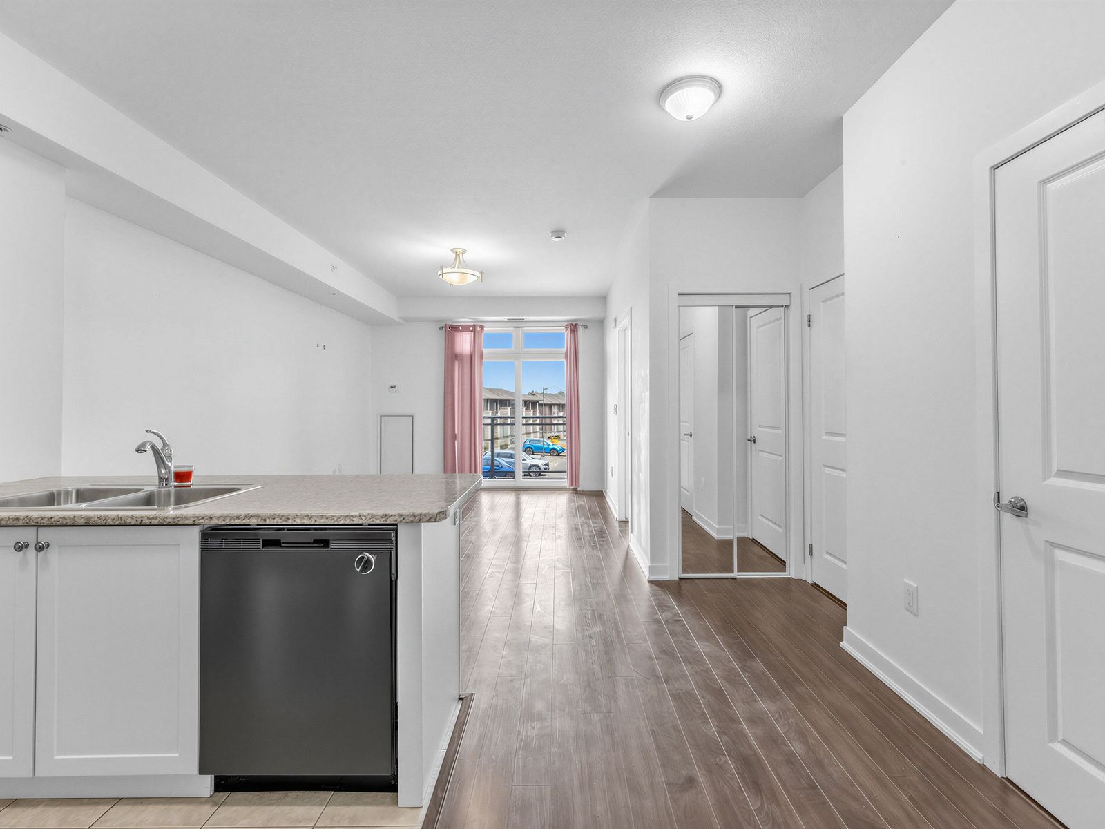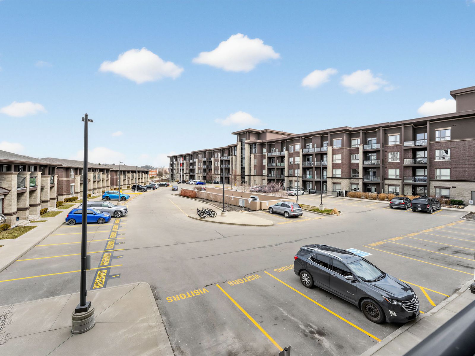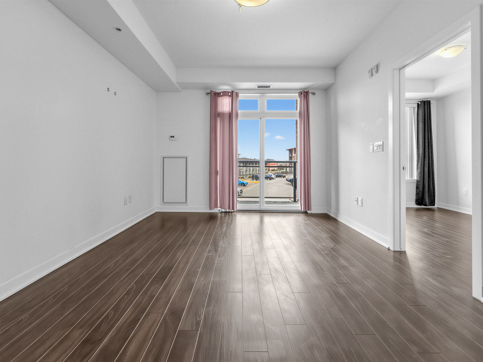 Sun-filled 1-bedroom, 1-bathroom suite at vibe condominium, ideally located at the desirable intersection of appleby line and corporate drive in burlington. This bright east-facing unit offers an open-concept layout with 9-foot ceilings and engineered hardwood flooring throughout. The modern kitchen overlooks the combined living and dining area, which extends to a spacious balcony-perfect for relaxing or entertaining. The suite features a generously sized 4-piece bathroom and convenient in-suite stacked washer and dryer. Included are one oversized parking space located close to the elevator and one locker. Situated in a prime burlington location close to shops, restaurants, schools, and all essential amenities, with easy access to the qew, 403, 407, and major routes-ideal for comfortable living and easy commuting. Enjoy premium building amenities including a rooftop patio with bbqs, fully equipped fitness centre, party room, and visitor parking.