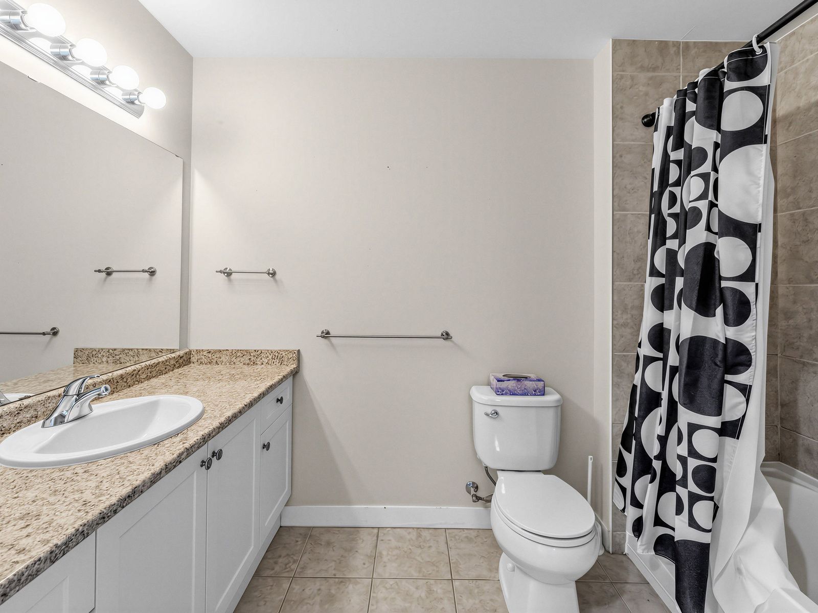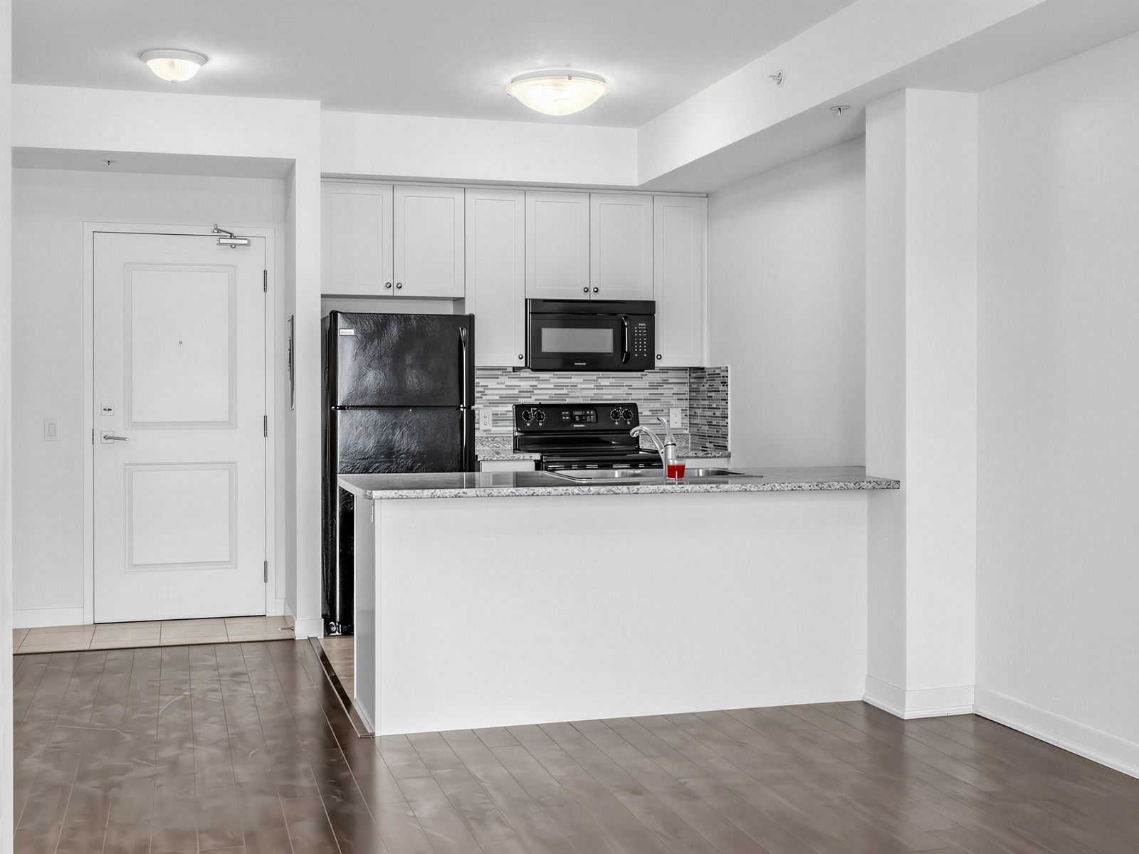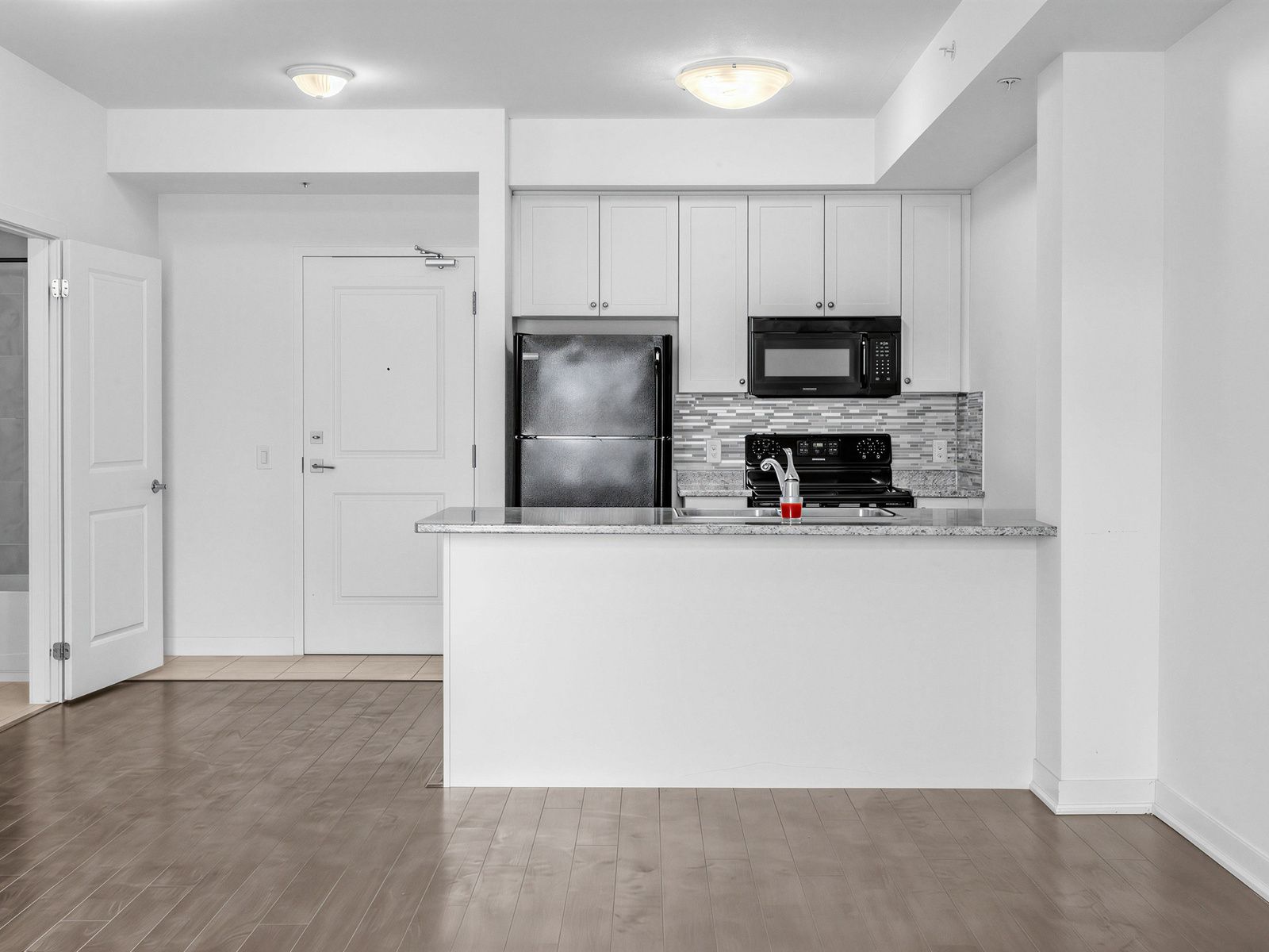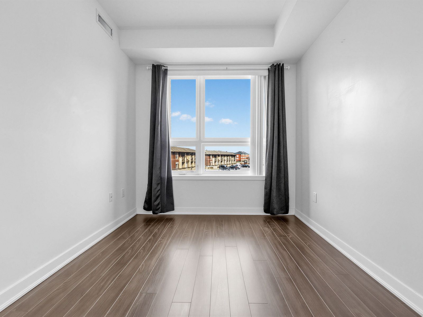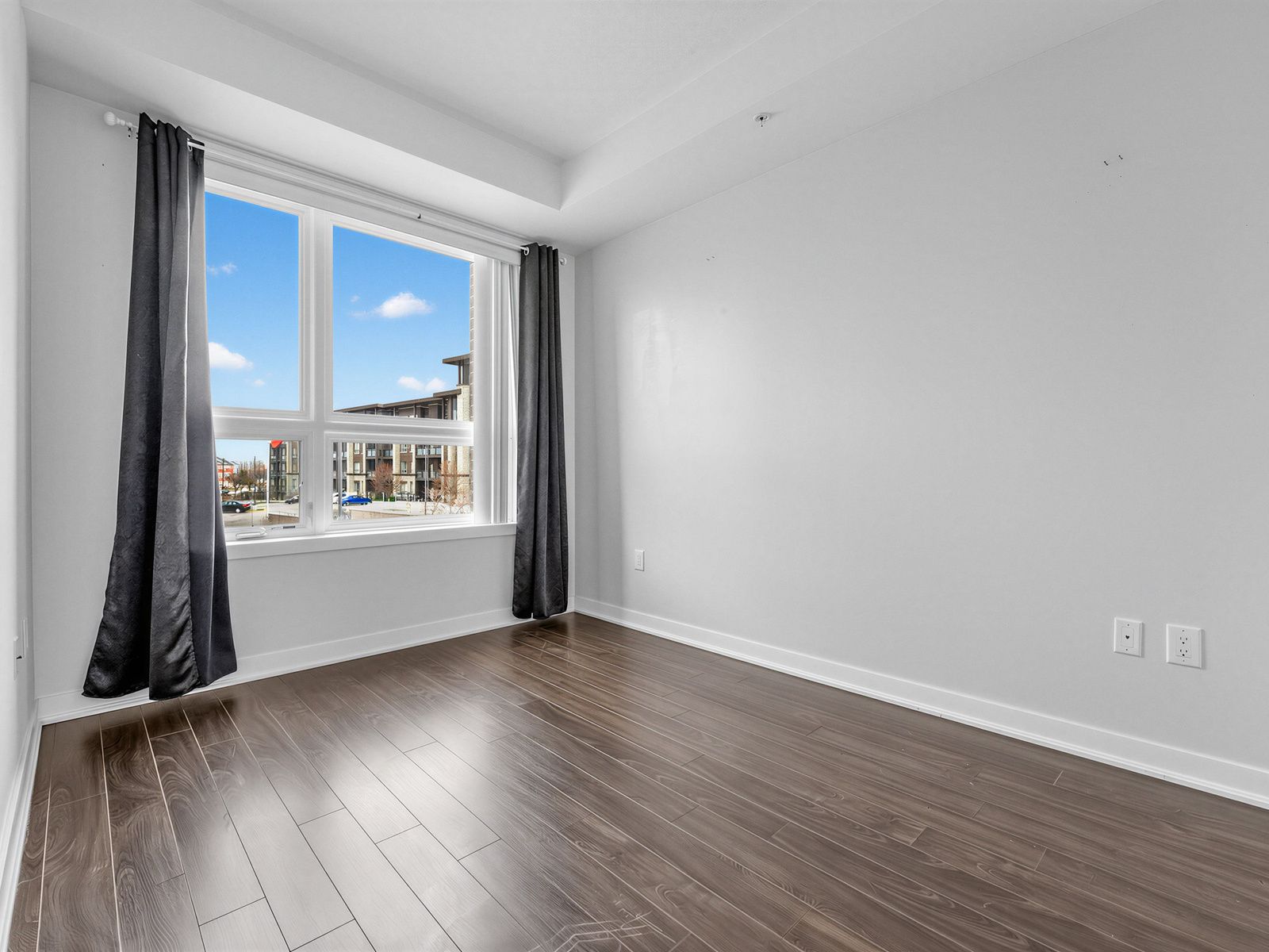 Sun-filled 1-bedroom, 1-bathroom suite at vibe condominium, ideally located at the desirable intersection of appleby line and corporate drive in burlington. This bright east-facing unit offers an open-concept layout with 9-foot ceilings and engineered hardwood flooring throughout. The modern kitchen overlooks the combined living and dining area, which extends to a spacious balcony-perfect for relaxing or entertaining. The suite features a generously sized 4-piece bathroom and convenient in-suite stacked washer and dryer. Included are one oversized parking space located close to the elevator and one locker. Situated in a prime burlington location close to shops, restaurants, schools, and all essential amenities, with easy access to the qew, 403, 407, and major routes-ideal for comfortable living and easy commuting. Enjoy premium building amenities including a rooftop patio with bbqs, fully equipped fitness centre, party room, and visitor parking.