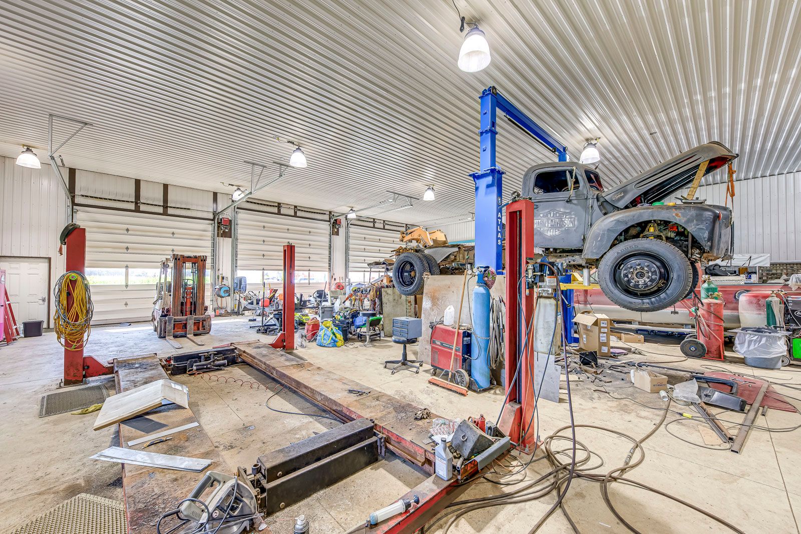 Spectacular custom home on expansive lot in erin! One of the most unique features of this property is the custom-built 3600 sqft, 60' x 60' automotive repair garage with 16' ceilings, bathroom and in-ground heating. Outfitted with car lifts, this is perfect for a professional mechanic, car enthusiast, or home-based business. Welcome to this exceptional 4,400 sqft property nestled on a stunning 135' x 400' lot surrounded by nature, offering breathtaking views from every window. This meticulously maintained home features 4 spacious bedrooms above grade and 2. 5 bathrooms, perfect for family living and entertaining. The heart of the home is the beautifully appointed eat-in kitchen, complete with ceramic floors, stylish backsplash, rich dark cabinetry, and 4 stainless steel appliances. A walkout leads to a 16' x 30' deck, ideal for enjoying the serene surroundings. Designed for comfort and functionality, the main level also includes a living/dining area, a welcoming family room with hardwood flooring, a bright eat-in kitchen, and a large foyer. The primary bedroom features a 3pc ensuite and a walk in closet. Fireplace is available but currently capped. The lower level offers a fully equipped nanny or in-law suite featuring its own kitchen with 4 stainless steel appliances and 3 additional bedrooms, 5pc spa-like bathroom, powder room, laminate flooring and pot lights, an excellent option for extended family. The driveway offers ample parking and the potential to add an attached garage if desired. This rare offering combines rural tranquility with exceptional amenities. Don't miss your opportunity to own a one-of-a-kind property in the heart of erin. See mls # x12339609 for garage photos