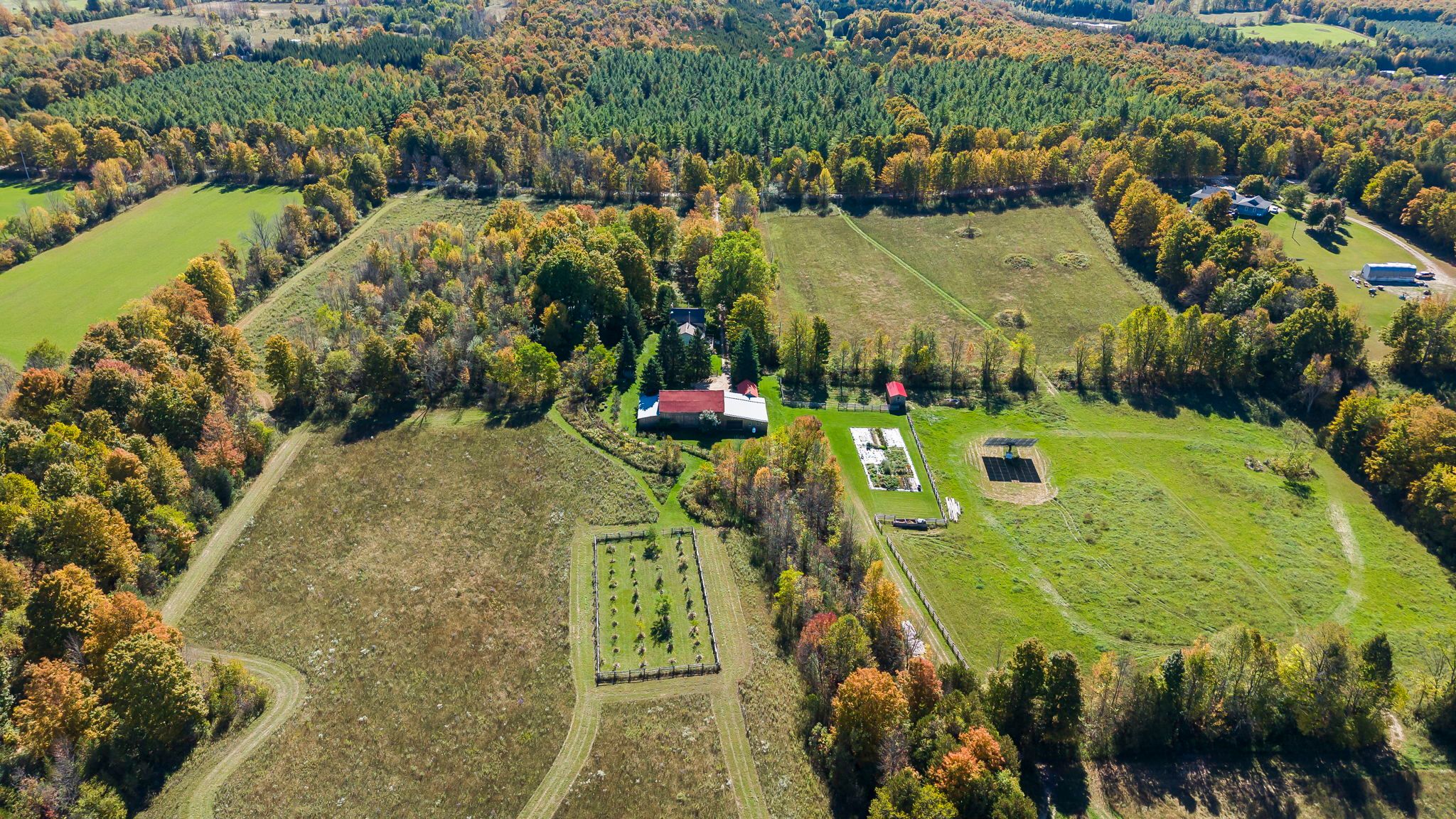 It's rare to find such a well cared for property, with these many amenities, and at this price. No details have been overlooked with this lovingly restored 1888 original farmhouse. All of the original character of the 1750 sq ft house has been preserved and seamlessly integrated with the highest contemporary standards. For the growing family, the 4 bedrooms and 2 bathrooms provide plenty of space for everyone. For the entertaining types, you will enjoy the large chef's kitchen with wolf induction range. For those working from home, starlink high speed internet is installed as well as fibre optic internet hookup is now available. With just over **96 acres**, this homestead has been operating organic (no spray) for over 20 years. Unique 1830s english - style barn, completely renovated in 2020 with cement floor. 2 car heated garage, large workshop and bonus shop. Horse shelter with power and water, fenced paddocks with electric fencing installed. All outbuildings have power and running water. Solar array system generates approx **$1200 per month** with hydro one contract which is assignable to new owner. Small private cabin at the pond is a 5 star rated airbnb rental. Permaculture - style orchard and garden planted 5 years ago. Garden has irrigation installed. Sawmill building can be used for a variety of purposes. Many walking and atv trails run throughout the property. 2600 trees planted in 2018. Country dreams do come true, and it happens in a rural paradise like this. Windows/doors (2020), ac (2021), downspouts/eavestroughs (2025) **for more info** https://www. 502349concession10. Com/branded
