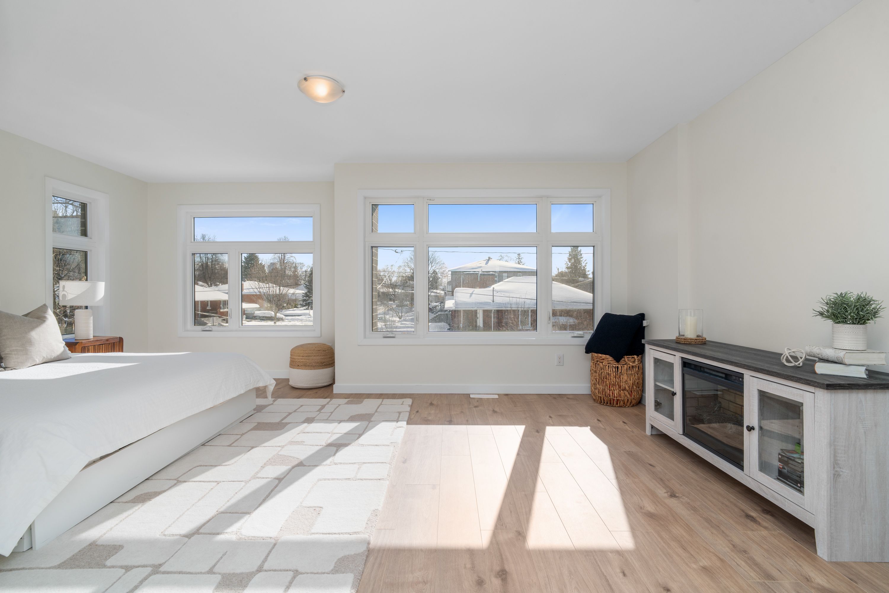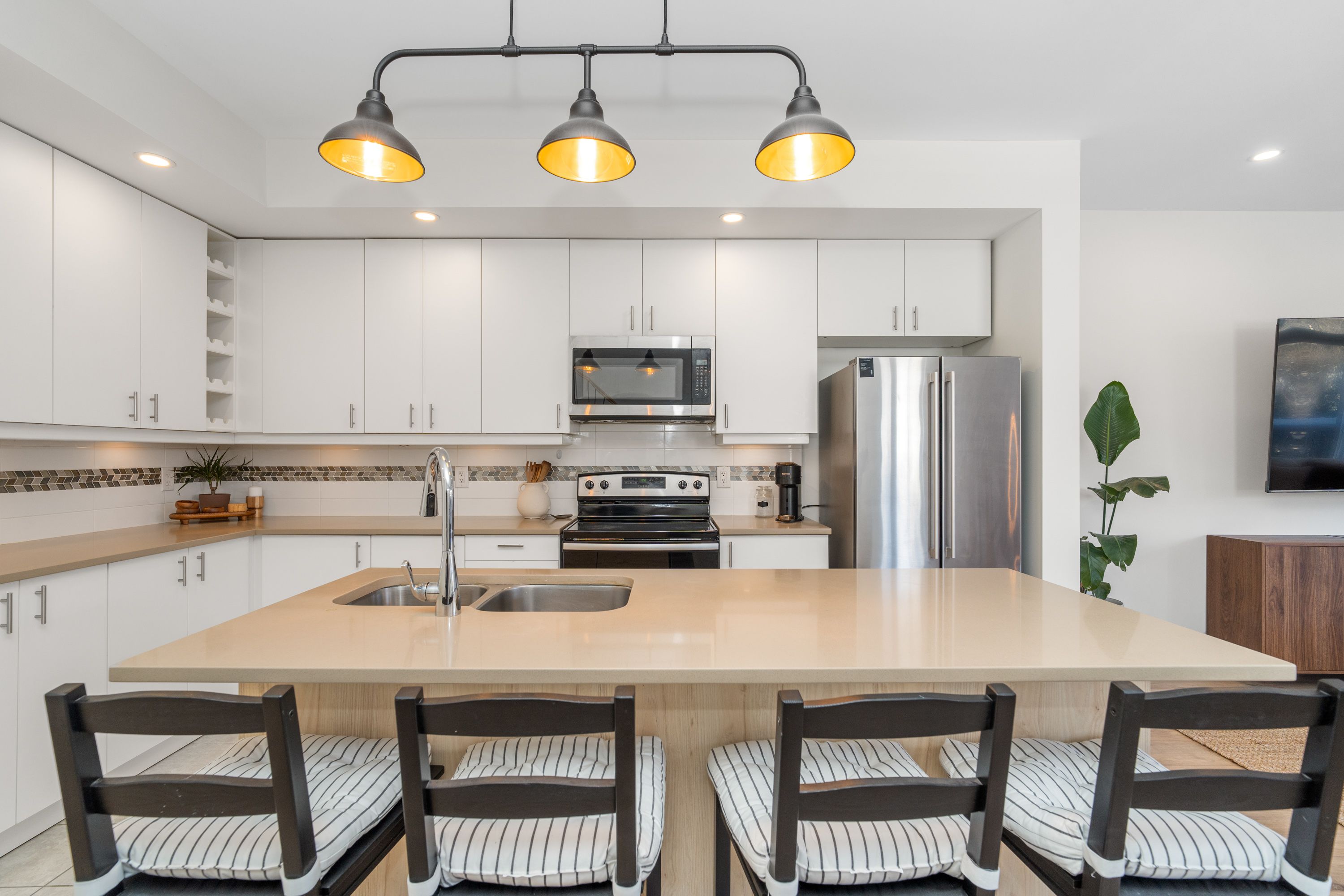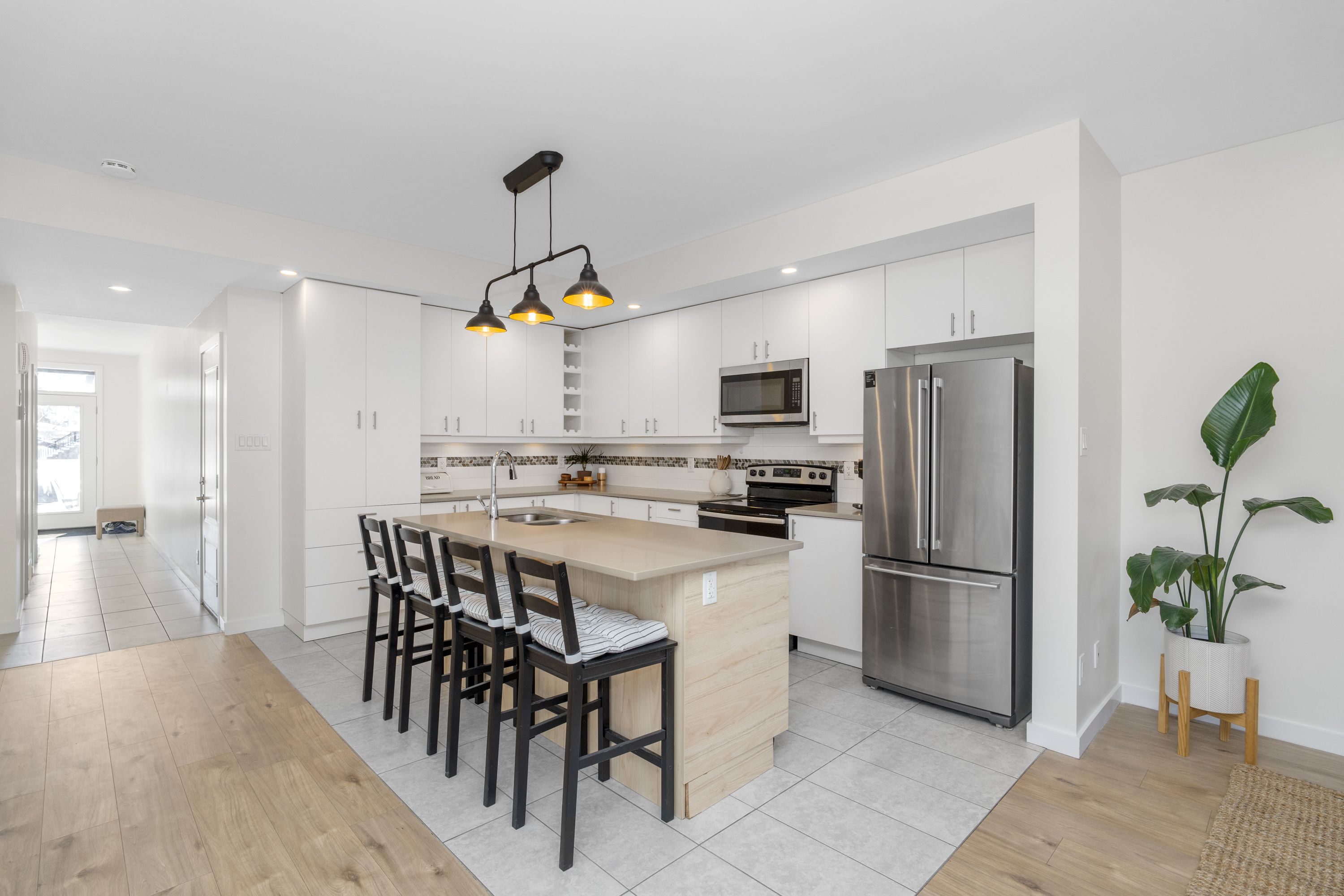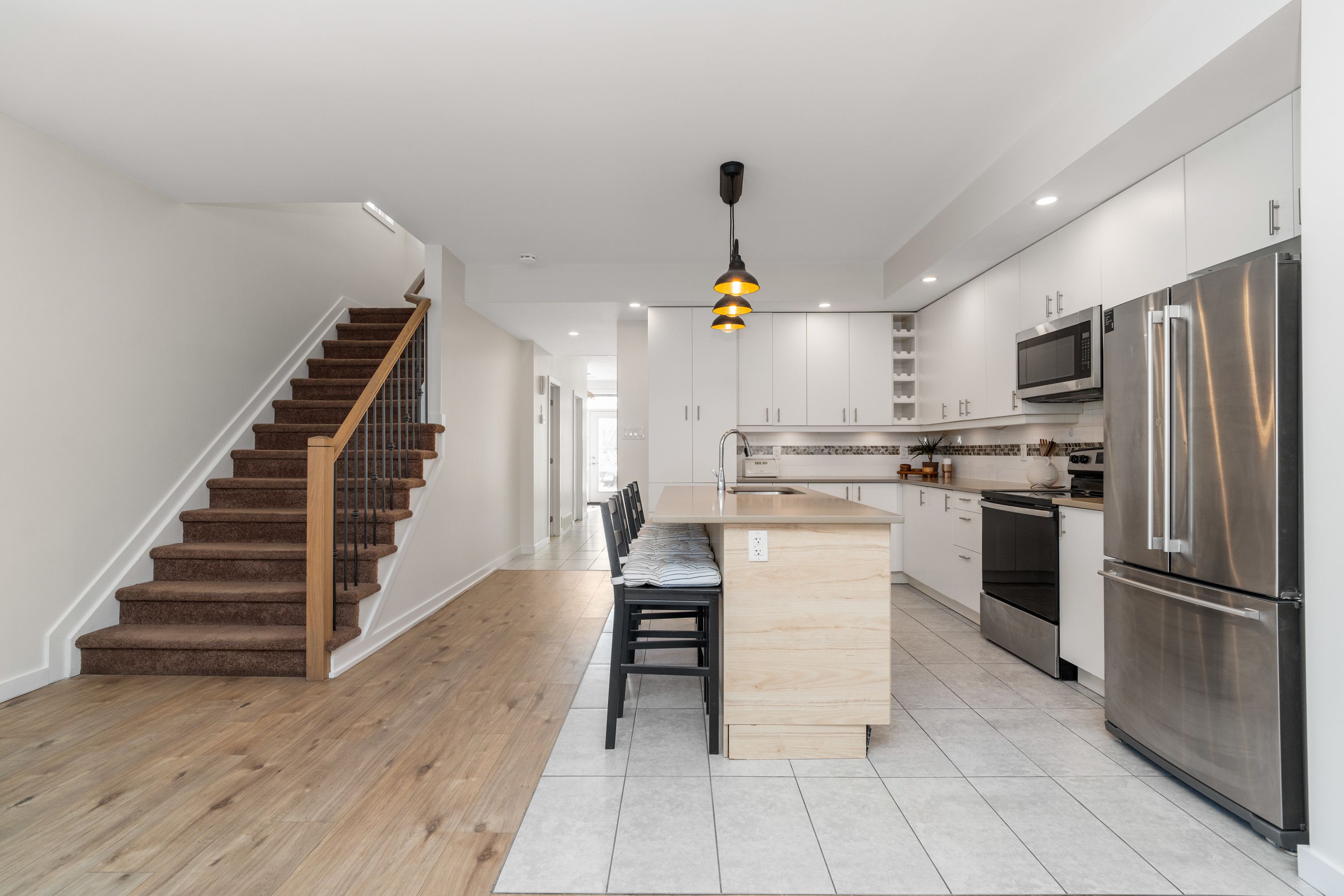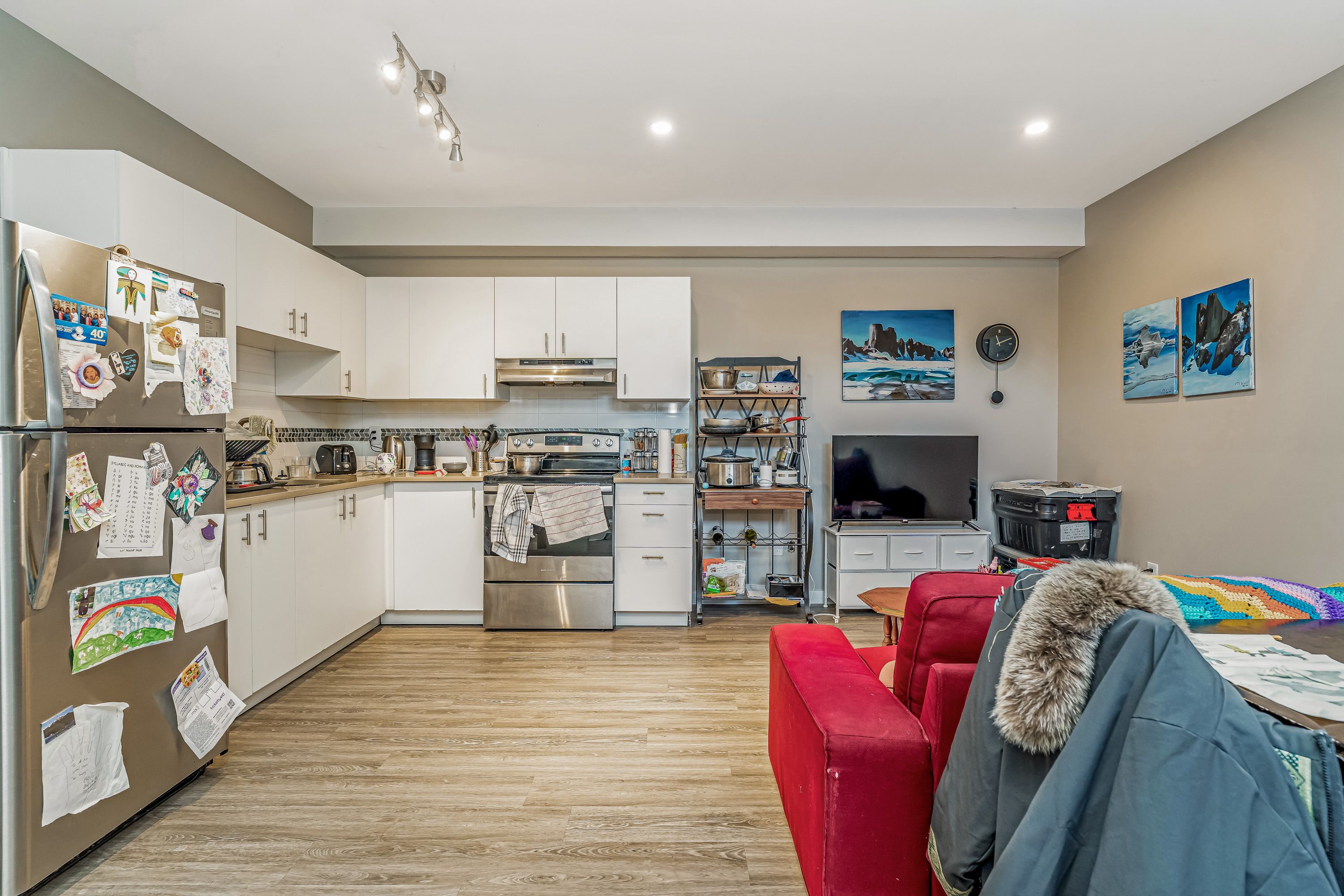 • Upper unit features bright layout, contemporary kitchen, and spacious living areas.