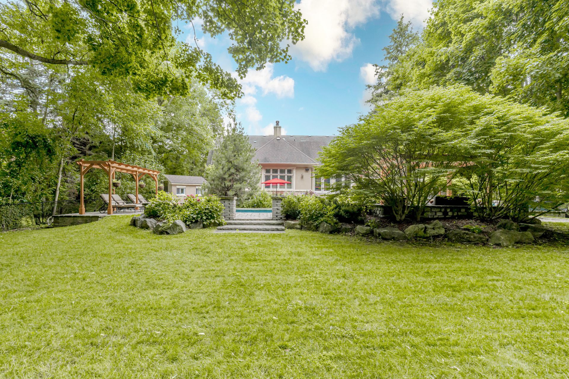 Sensational home designed by david small and built by venchiarutti builders. This magnificent home is steps from lake ontario, rattray marsh walking trails, meadow wood tennis club and meadow wood lakefront park mississauga. Uniquely designed inclusive of optimal areas for family living and entertaining. Should you require a "main floor primary bedroom" for a family or guests along with ensuite, sitting room and walkout to private deck you have found home. If desired, this space can be easily transformed into a "formal living room and dining room". The gourmet kitchen features quartz counters, oversized centre island, appliances feature a gas wolf cooktop, miele dishwasher, kitchenaid refrigerator & ovens, built-in bar fridge and wall to wall glass windows inclusive of walkout to yard. Stunning open concept family room with built-ins, wood burning fireplace and picture views of mature setting. Private yet welcoming main floor study/office with built-ins to suit all ones needs. Upper level of residence is most impressive with high ceilings, secluded main primary bedroom along with oversized ensuite. Picture windows throughout the entire upper level share views of the rising sun, sunsets and when they are open the simmering sound of the waves touching the shore. Lower level welcomes the activity area of lower family room with gas fireplace, gym area with glass for loads of light, wet bar and a separate nanny's suite. One may consider this entire level for a family member or simply a house guest to enjoy. Attention to detail is evident throughout from the impeccably maintained interior to breathtaking private treed backyard oasis inclusive of pool, waterfall, hot tub, pergola, shed, covered outdoor kitchen area and underground irrigation system.