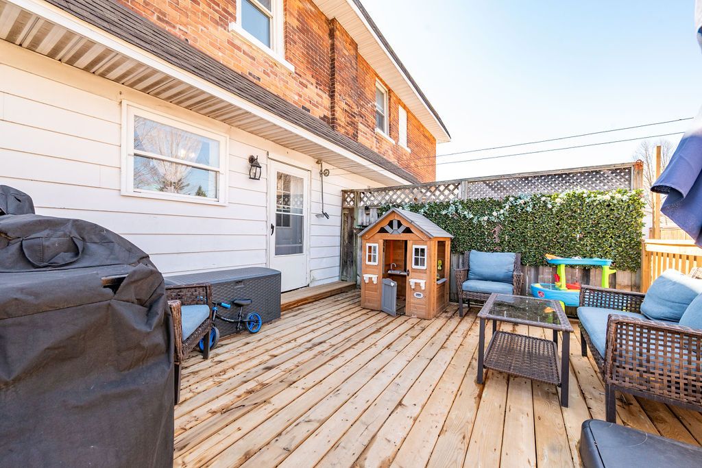 • New oversized deck overlooks a small, fenced yard for privacy.
