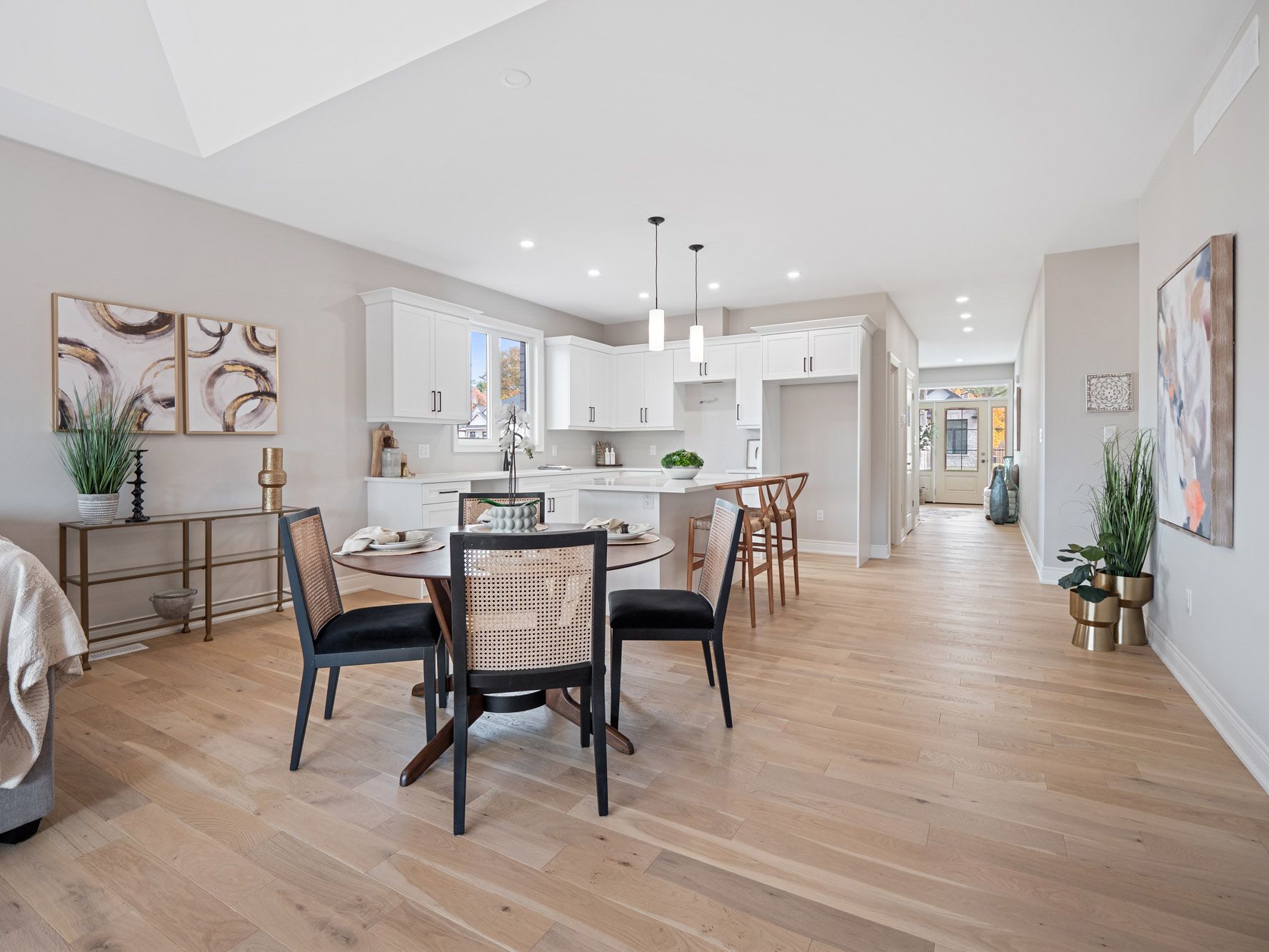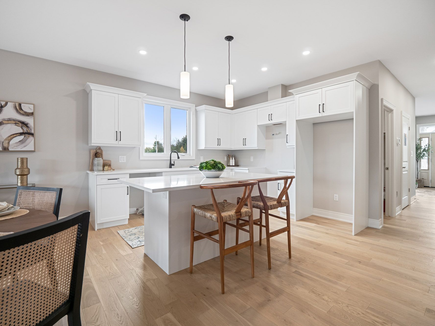 • Homes feature high-quality finishes like hardwood and stone countertops.