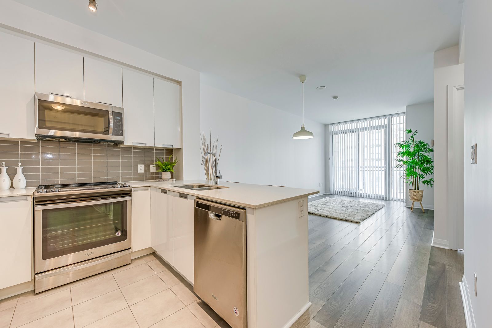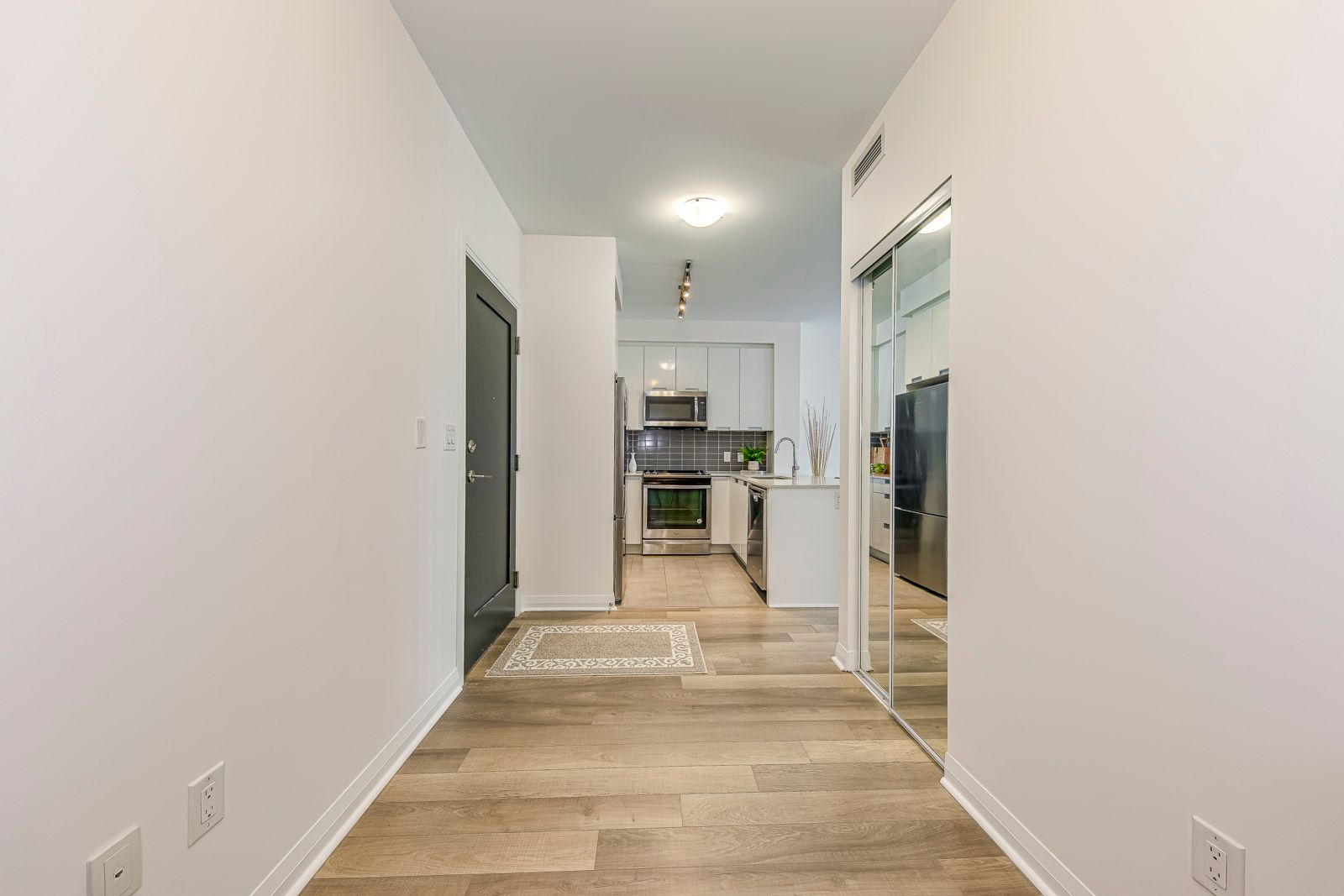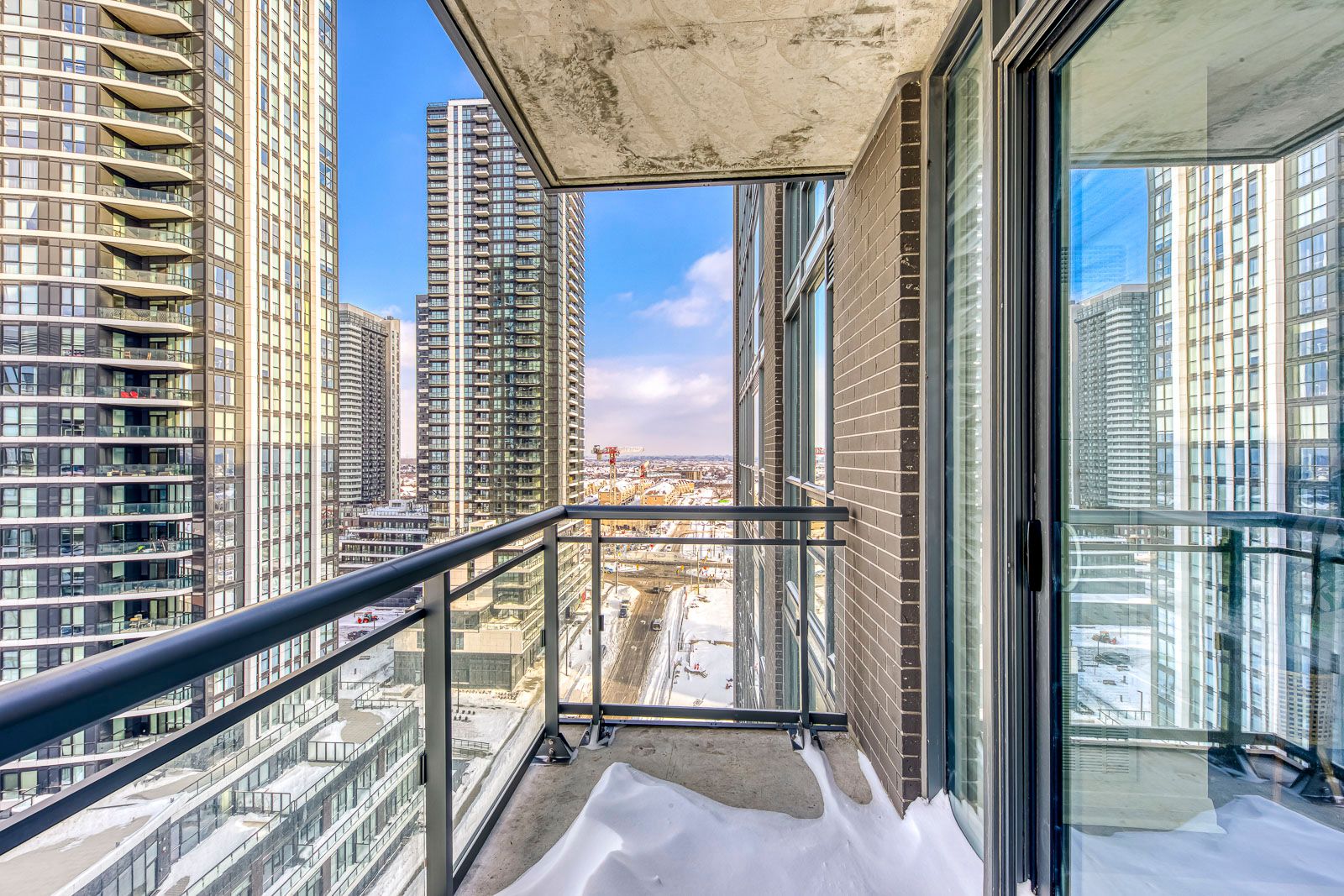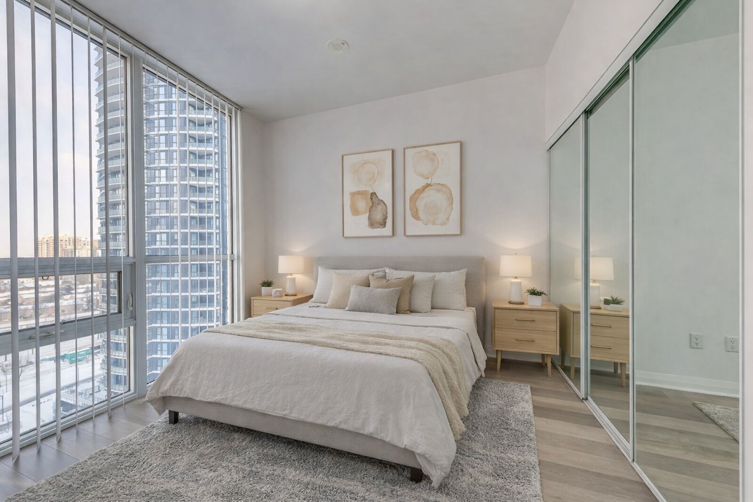 Experience luxury urban living in the heart of mississauga! This bright and spacious suite offers a seamless blend of style and comfort, featuring modern laminate flooring throughout and floor-to-ceiling windows that flood the space with natural light. Freshly painted throughout, including all walls, ceilings, doors, and trim-recently patched and refinished-this unit is truly move-in ready. The contemporary white kitchen showcases sleek quartz countertops, designer cabinetry with integrated pull handles, and premium stainless steel appliances. Step out onto your private balcony to enjoy stunning sunset views. Perfectly located just minutes to the city centre transit hub, go station, square one, top-rated schools, shops, parks, and restaurants, with quick access to highways 403, 401, and the qew. This is a must-see property you won't want to miss!