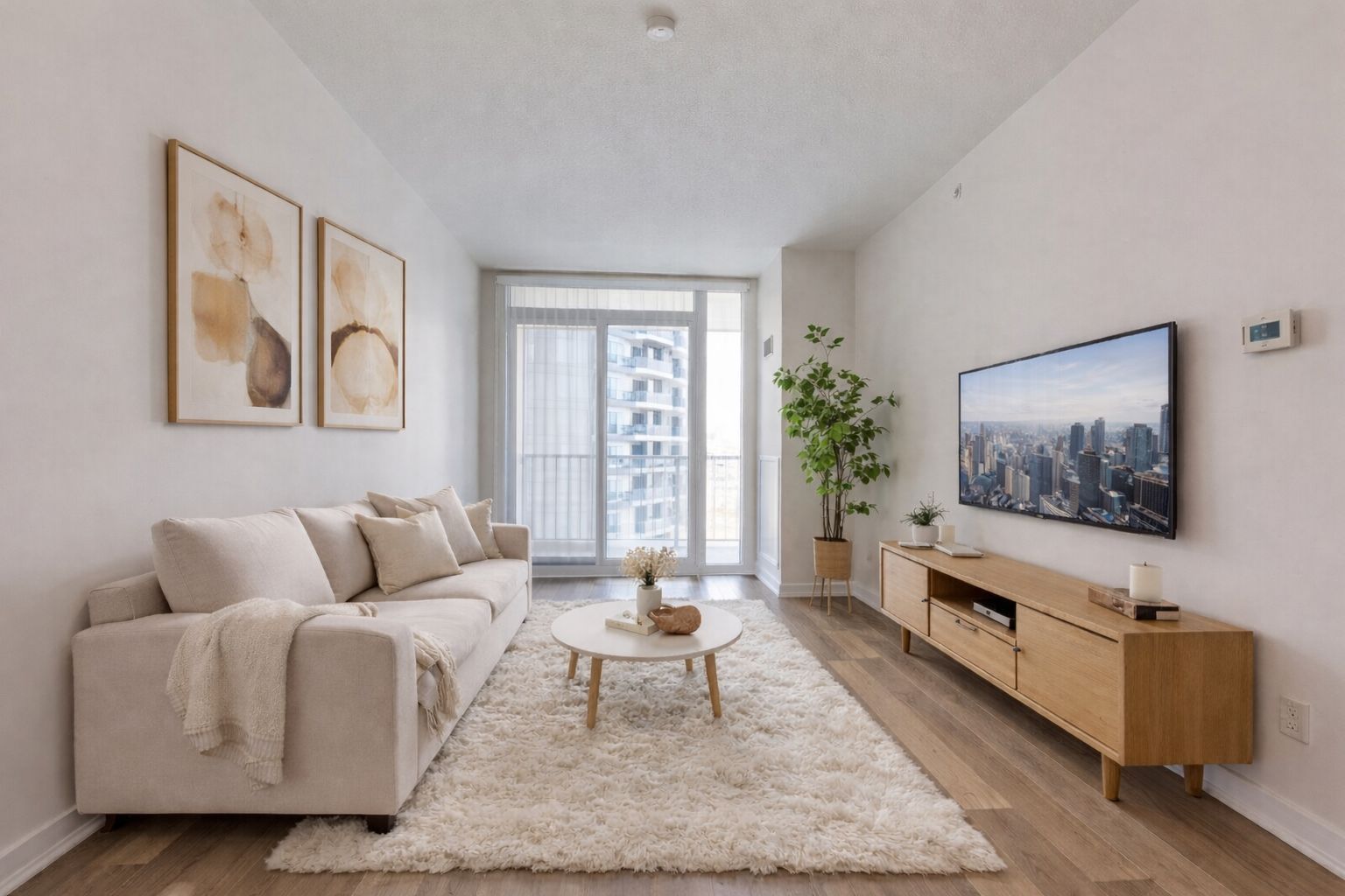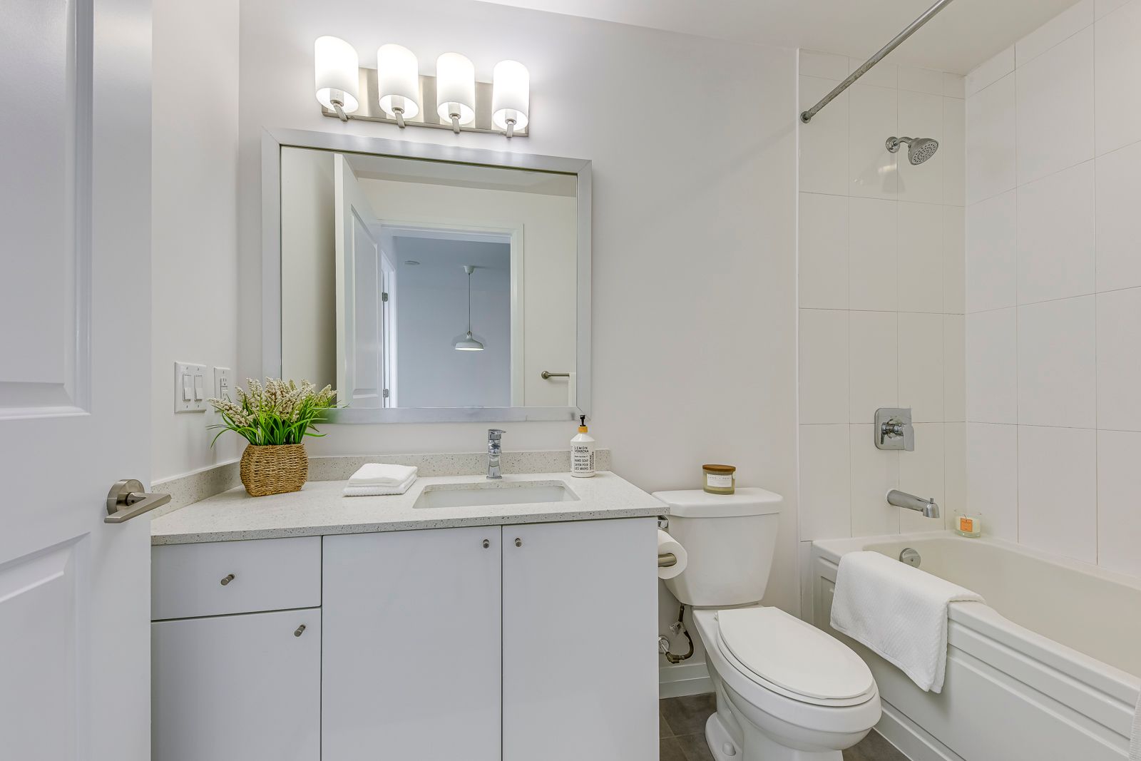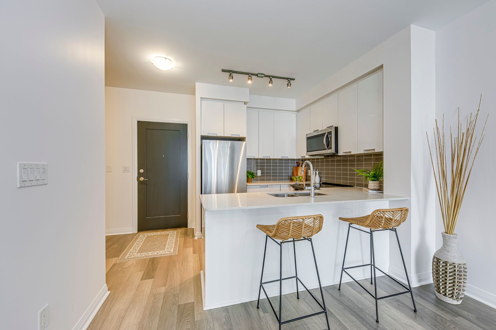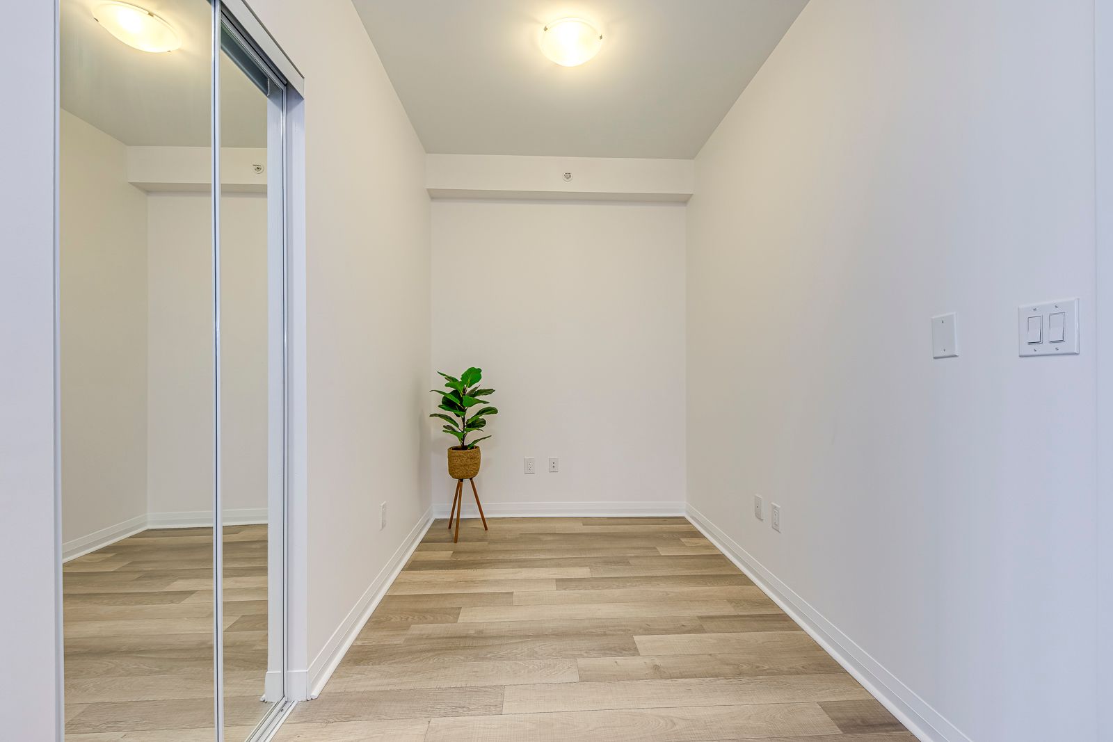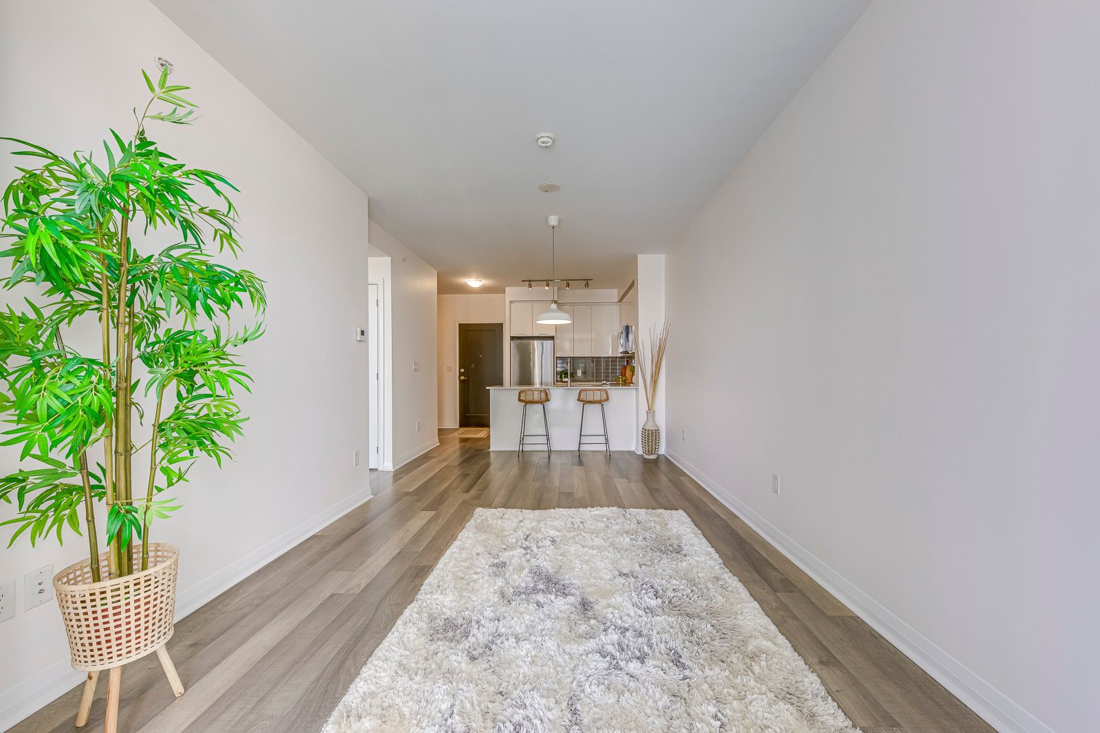 Experience luxury urban living in the heart of mississauga! This bright and spacious suite offers a seamless blend of style and comfort, featuring modern laminate flooring throughout and floor-to-ceiling windows that flood the space with natural light. Freshly painted throughout, including all walls, ceilings, doors, and trim-recently patched and refinished-this unit is truly move-in ready. The contemporary white kitchen showcases sleek quartz countertops, designer cabinetry with integrated pull handles, and premium stainless steel appliances. Step out onto your private balcony to enjoy stunning sunset views. Perfectly located just minutes to the city centre transit hub, go station, square one, top-rated schools, shops, parks, and restaurants, with quick access to highways 403, 401, and the qew. This is a must-see property you won't want to miss!