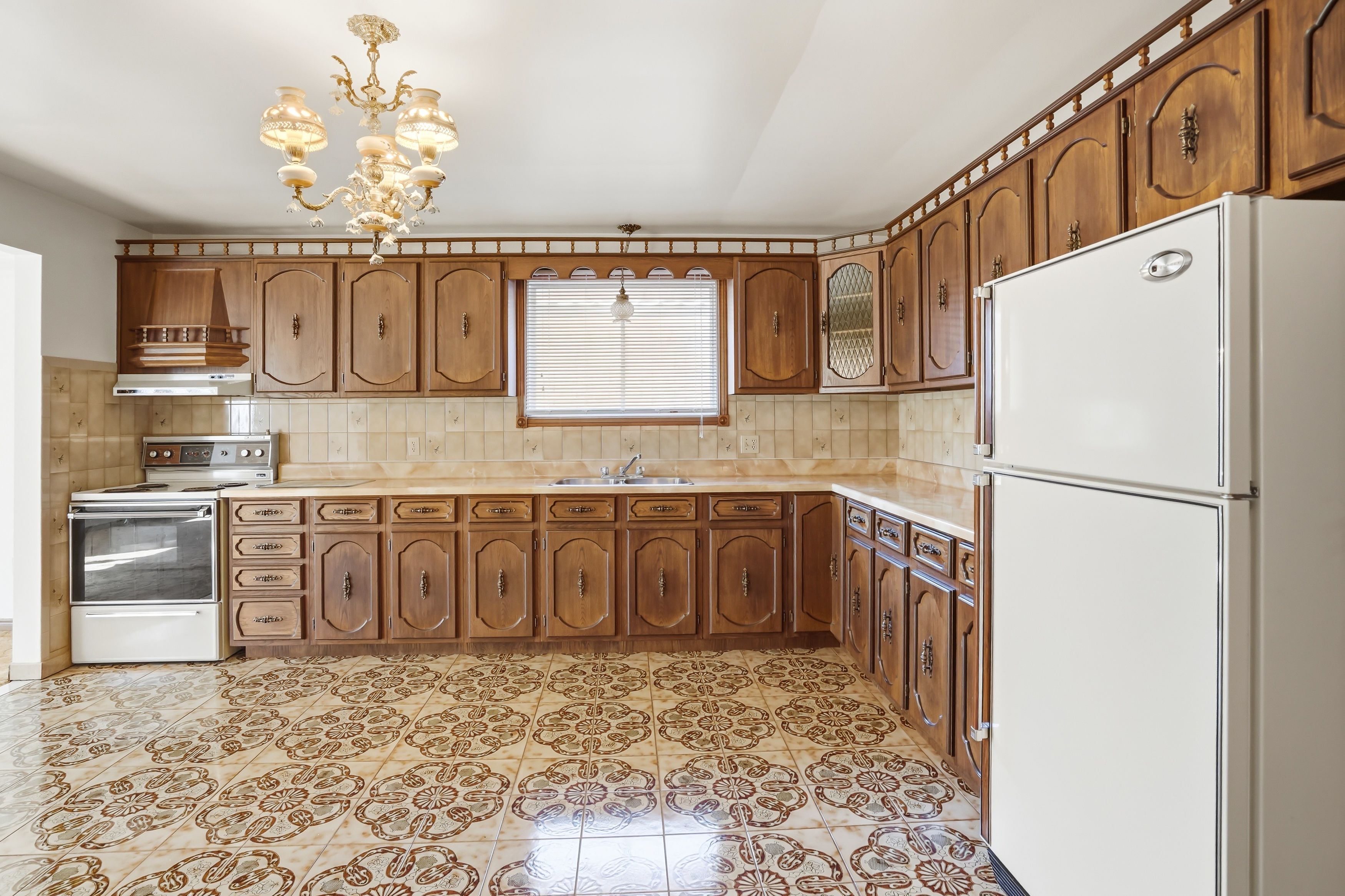 Welcome to this custom-built, one-owner, and over 1,600 sqft raised bungalow. This incredibly well-maintained home offering timeless character, exceptional space, and endless potential. The main level features a spacious and thoughtfully designed layout with a large kitchen, living, and dining area ready to be transformed into something truly special. Unique custom plaster detailing adds a touch of craftsmanship and character rarely found today-perfect for those looking to blend classic design with modern updates. The main floor is complete with three generously sized bedrooms and a well-appointed 5-piece bathroom. The fully finished lower level offers incredible additional living space, featuring an expansive rec room ideal for entertaining, oversized windows that bring in natural light, a second kitchen, and a 3-piece bathroom. With direct access to the attached double car garage, this level is perfectly suited for multigenerational living or in-law potential. A standout feature of this home is the main floor breezeway connecting the house to the garage and lower level also includes a cantina, perfect for storage or hobby use. Enjoy 2 wood burning fireplaces and a fully enclosed sunroom at the back of the home-an ideal space for relaxing or entertaining across three seasons. The beautifully maintained, fully fenced backyard offers privacy and space for family enjoyment, complete with a powered workshop/shed for added versatility. Situated in a desirable, family-friendly neighbourhood close to excellent schools, parks, convenient highway access, grocery stores, and everyday amenities-this home offers both comfort and convenience. Other notable updates include owned hot water tank (2022), furnace (approx. 10 years), and flat roof over the sunroom (under 10 years).