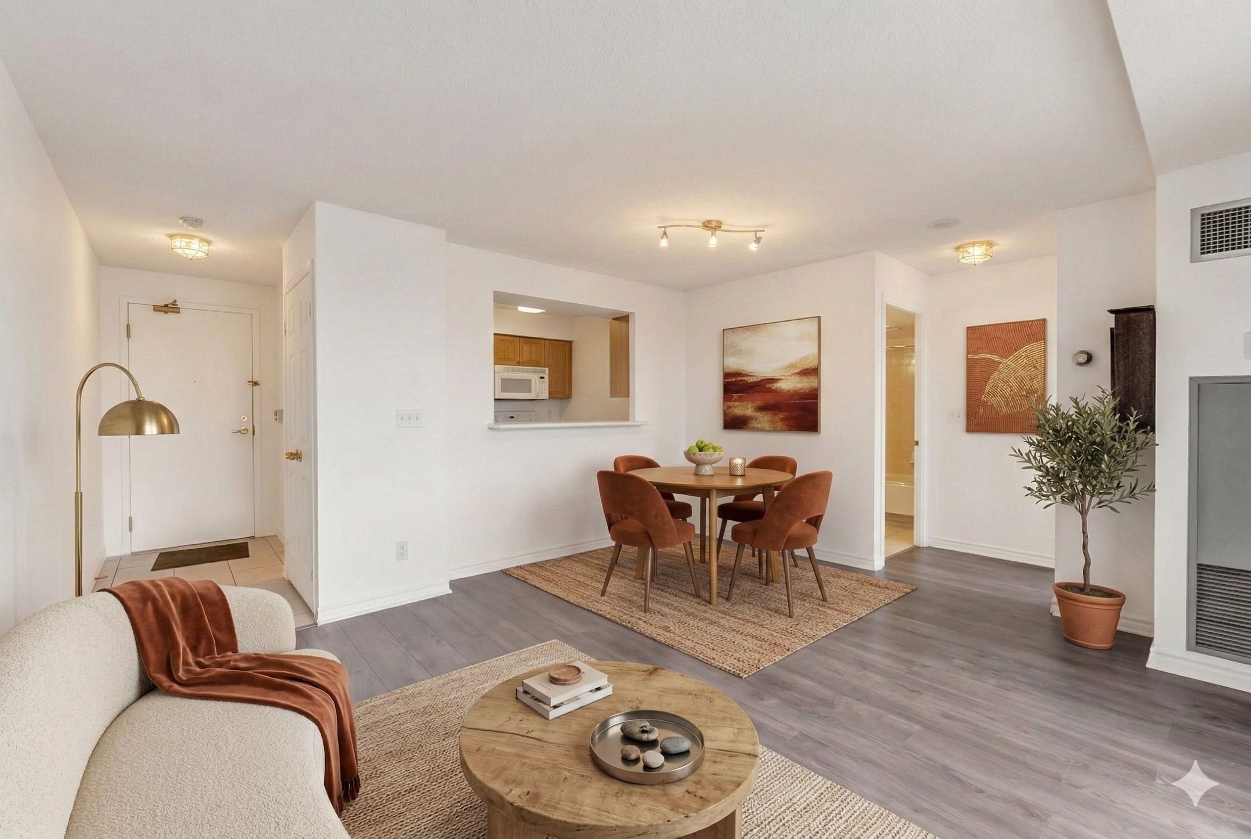 Welcome to the windsor condos by monarch, a well-managed residence known for its exceptional amenities and convenient location. This bright south-facing one-bedroom suite offers unobstructed views, abundant natural light, and a functional layout designed for comfortable everyday living. Enjoy your morning coffee or evening unwind on the private balcony, where open views and sunshine create a relaxing outdoor extension of the living space. The thoughtfully designed floor plan maximizes both space and flow, making this an ideal opportunity for first-time buyers, investors, or those seeking a low-maintenance lifestyle. Residents enjoy access to a full range of amenities including 24-hour concierge service, indoor swimming pool, tennis court, fitness centre, sauna, party room, car wash, and ample visitor parking. As an added bonus, basic bell tv and internet are included in the maintenance fees. Ideally located with easy access to hwy 401, and close to woodside square, grocery stores, restaurants, parks, and schools, with 24-hour bus service along finch avenue east providing convenient transit connectivity. An excellent opportunity in a desirable building - move-in ready and not to be missed.